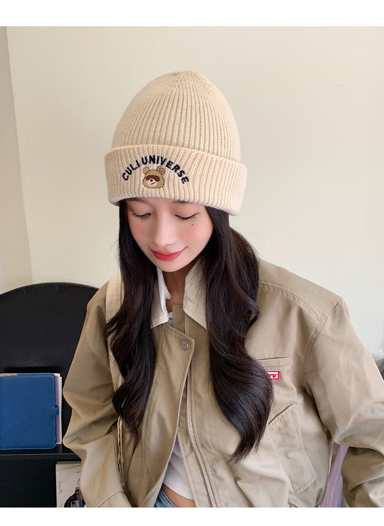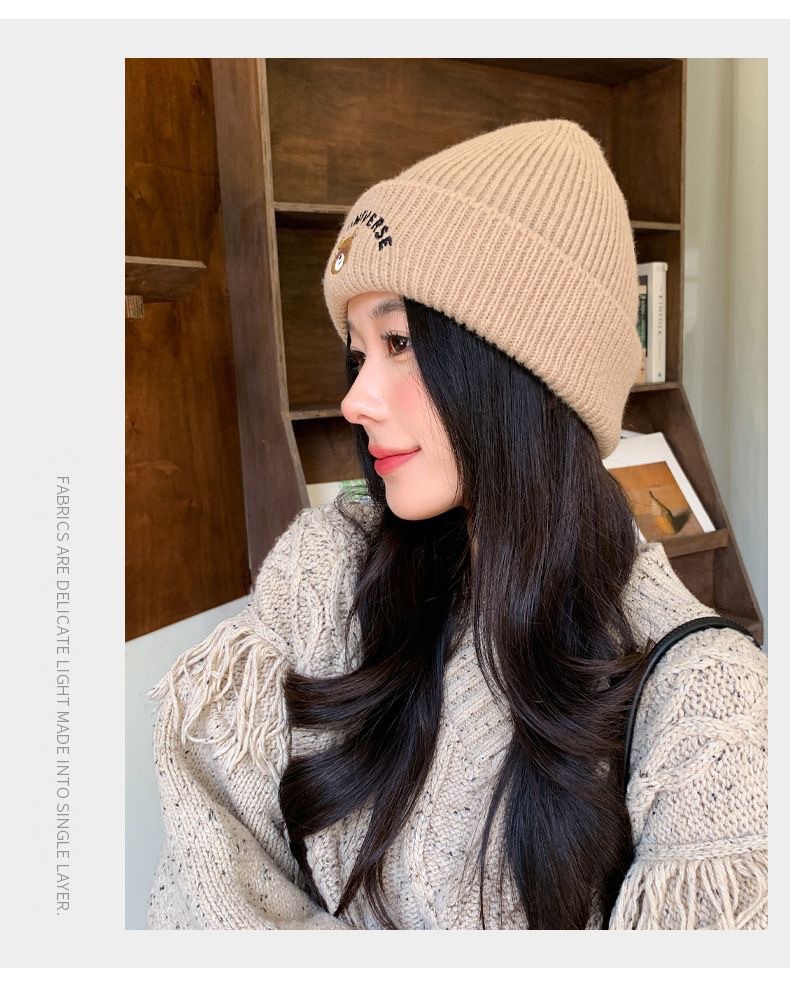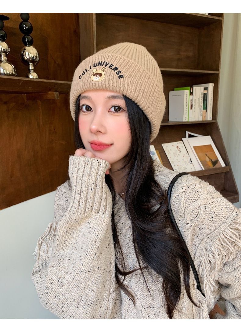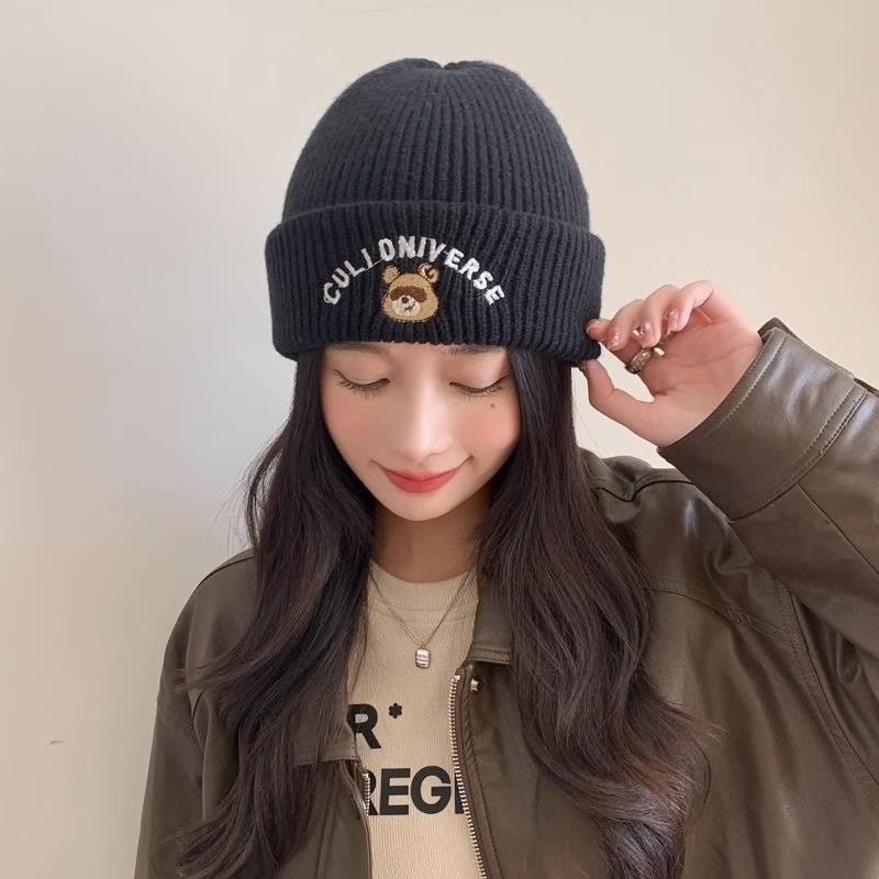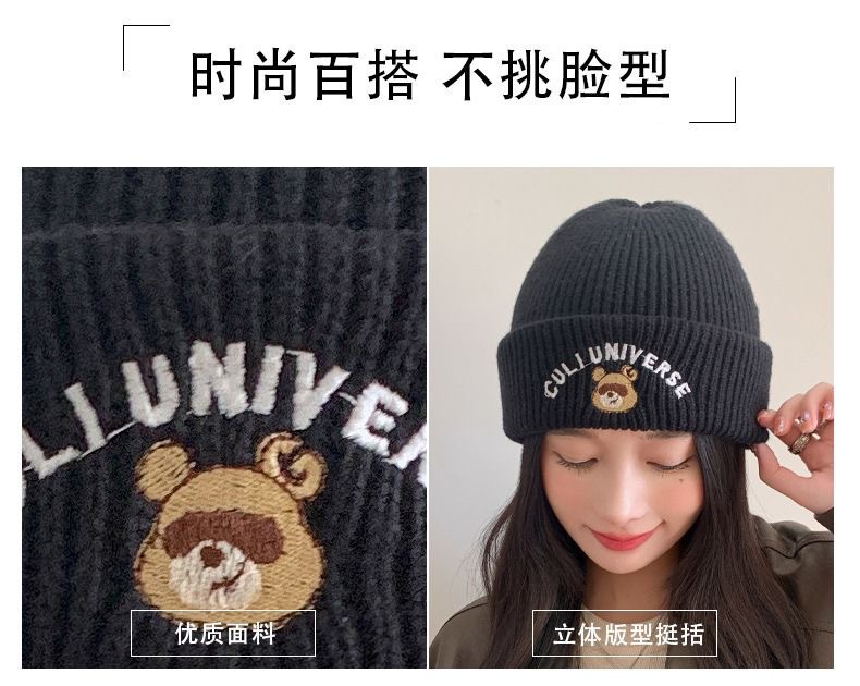新款冬季可爱小狗刺绣保暖针织冷帽毛线帽女显脸小百搭大头围帽子