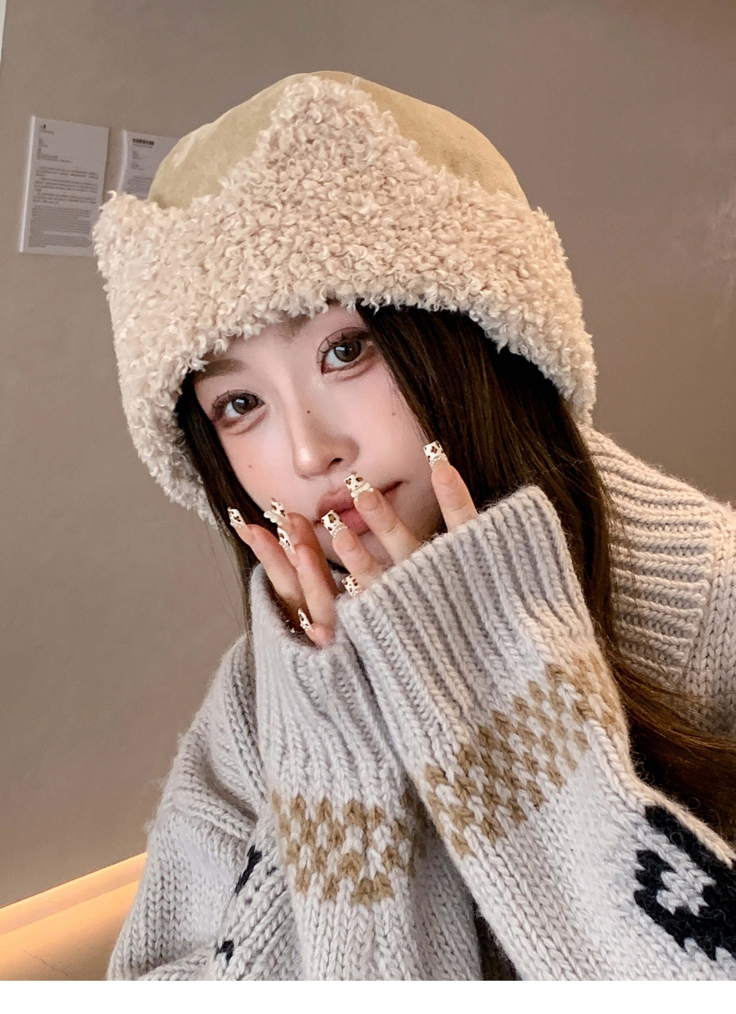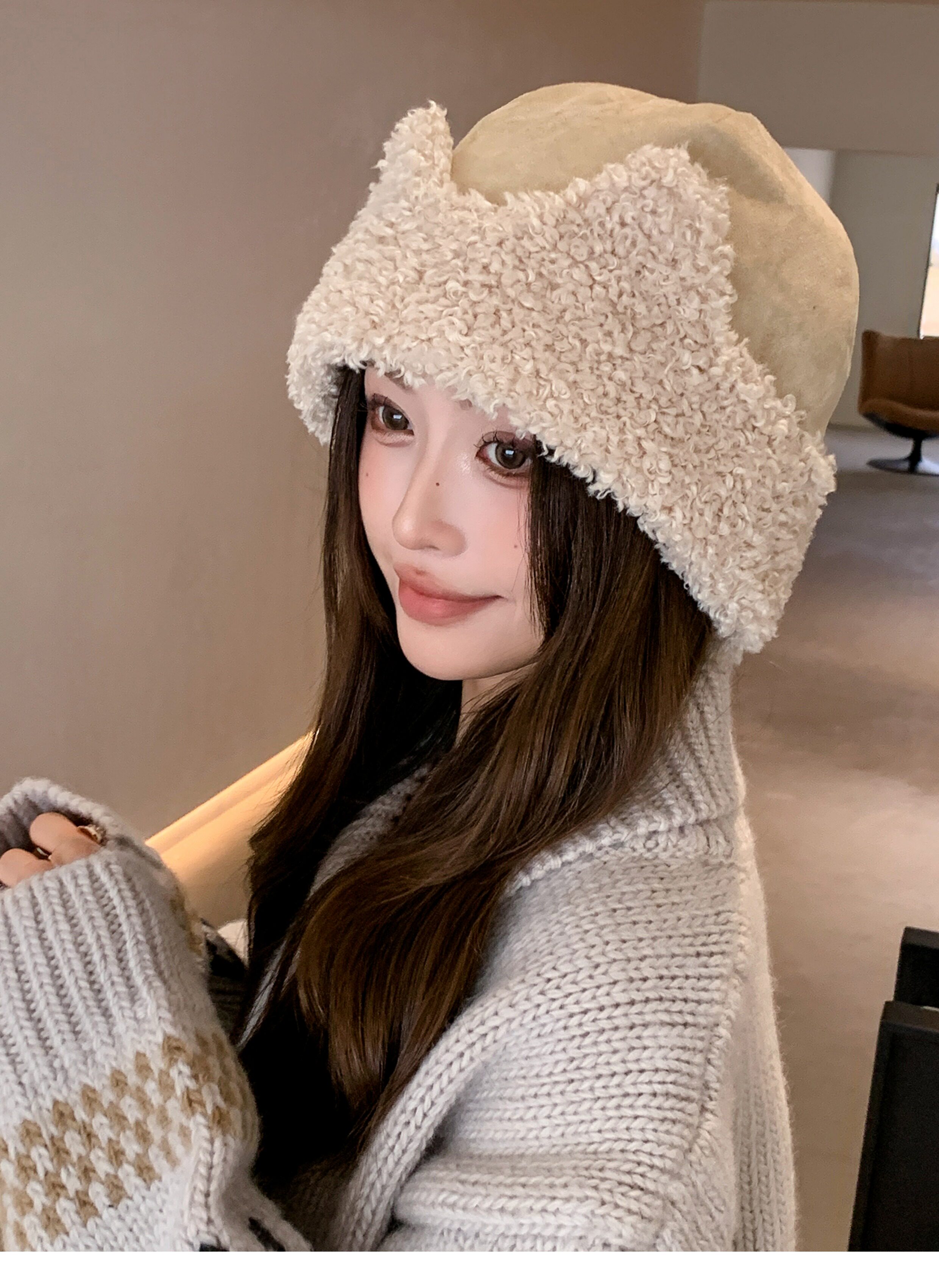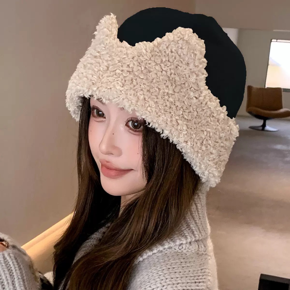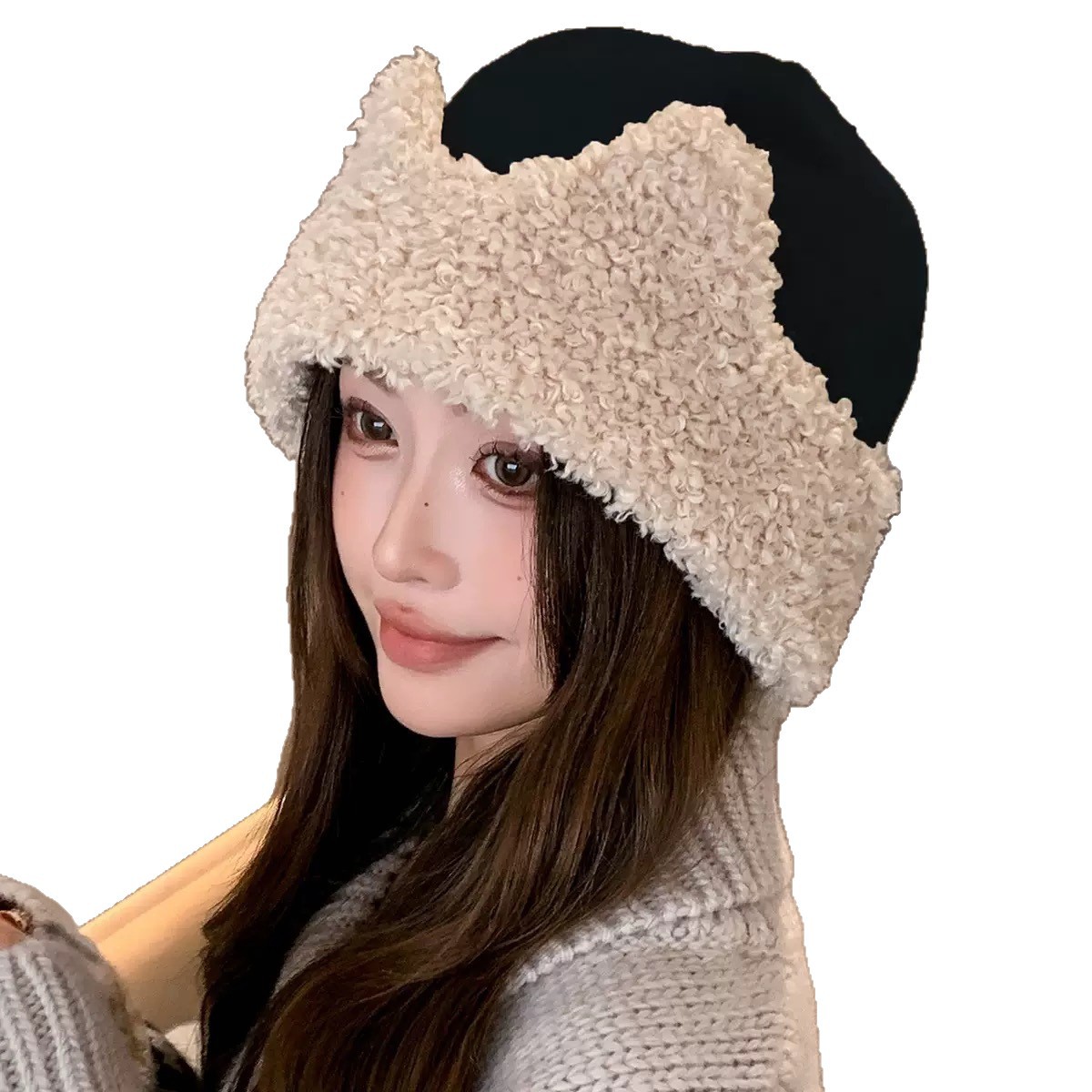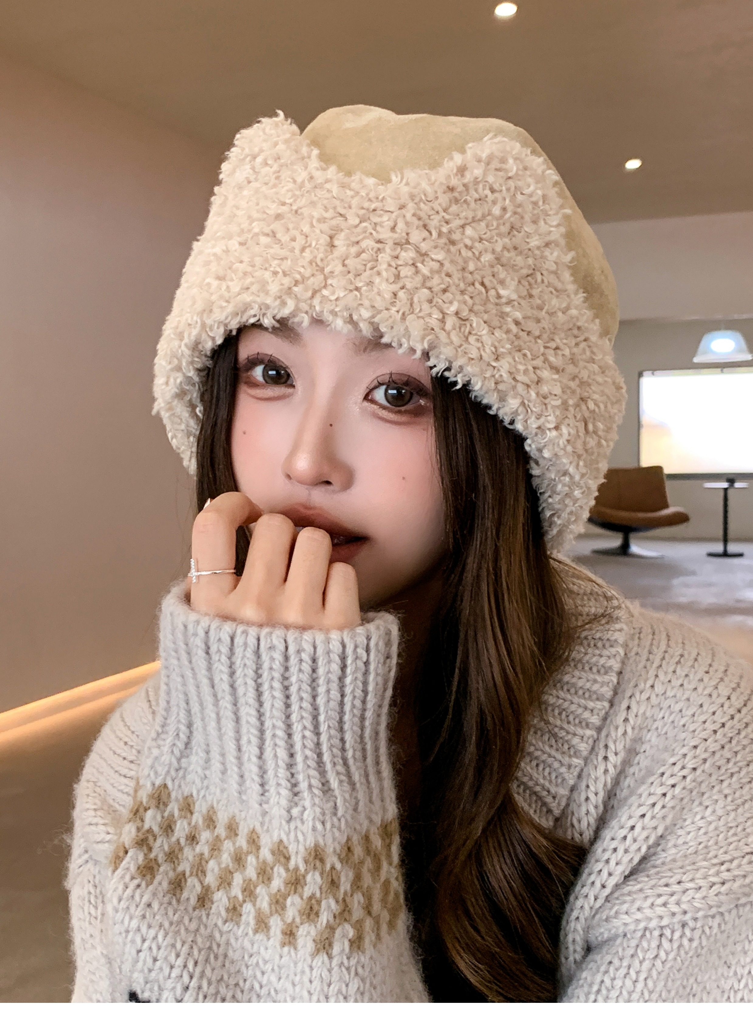 5冬季新可爱猫耳毛绒雷锋帽子女大头围显脸小保暖护耳套头帽