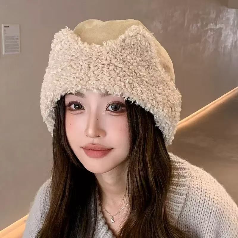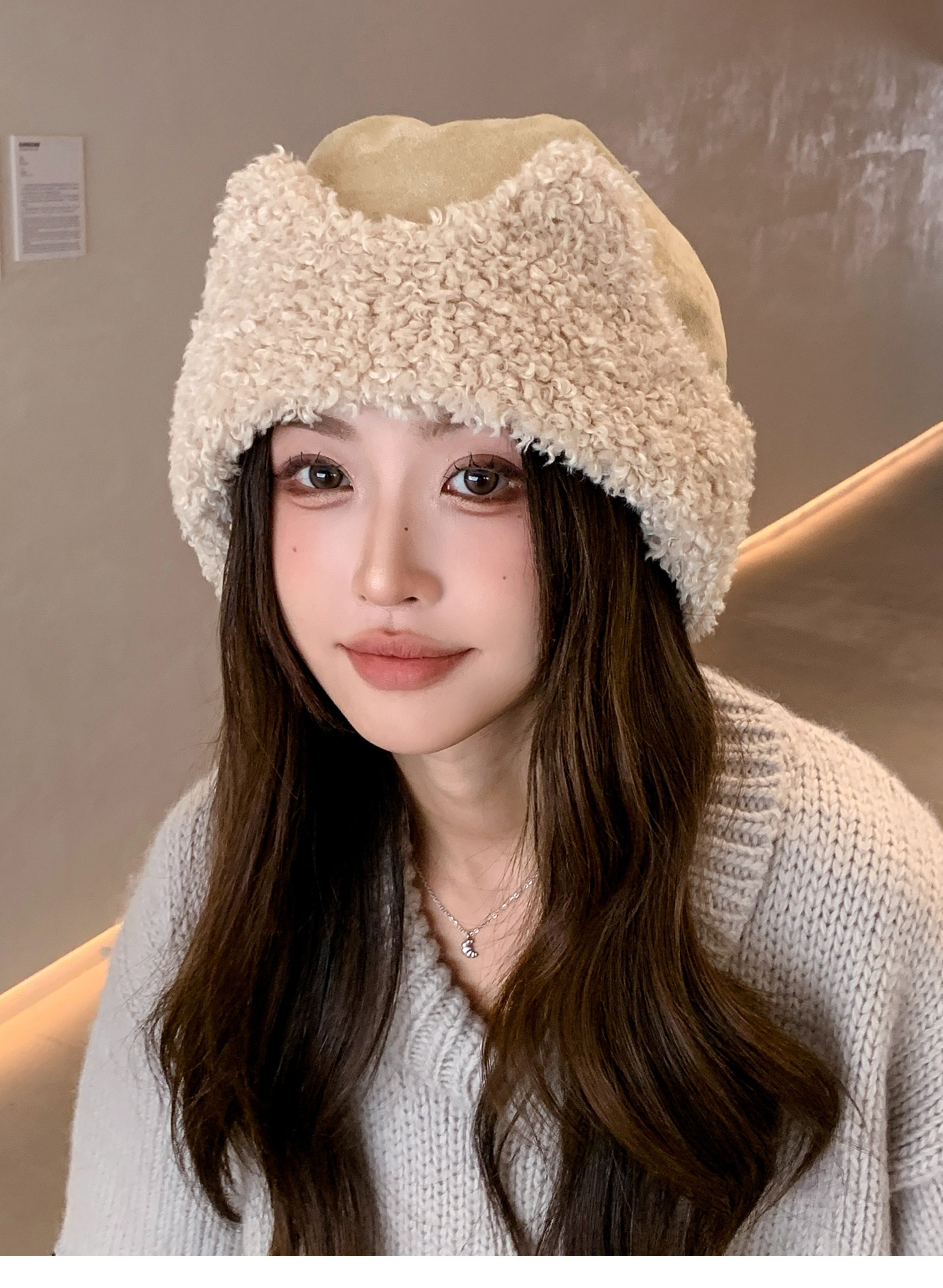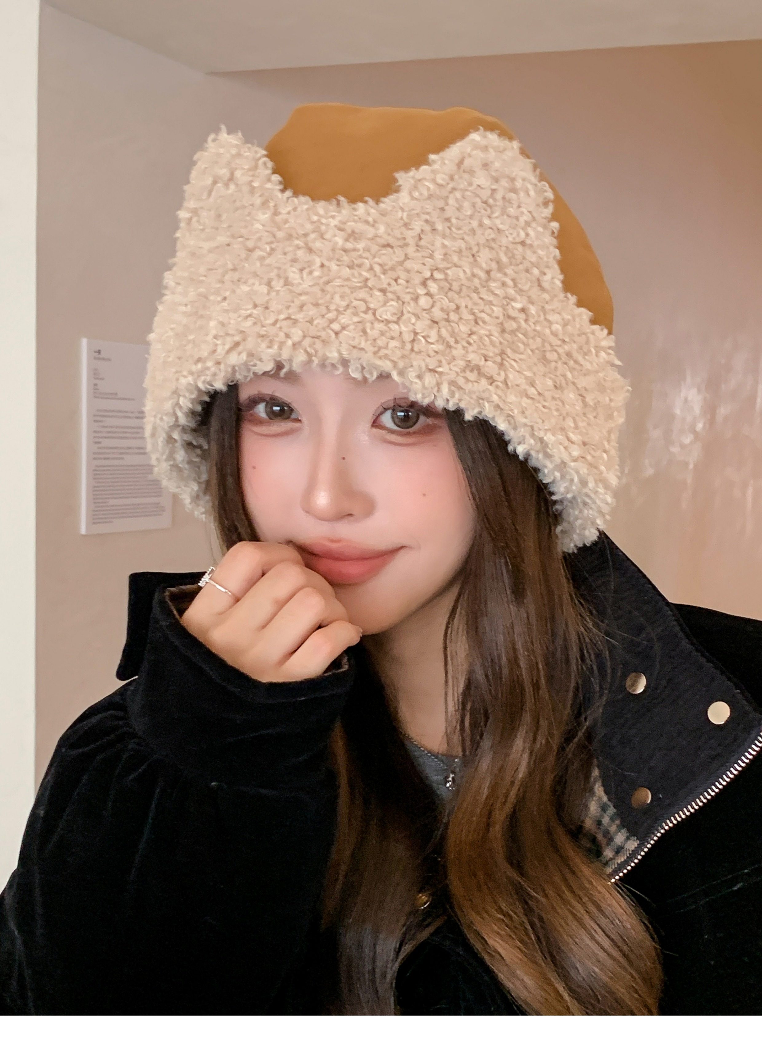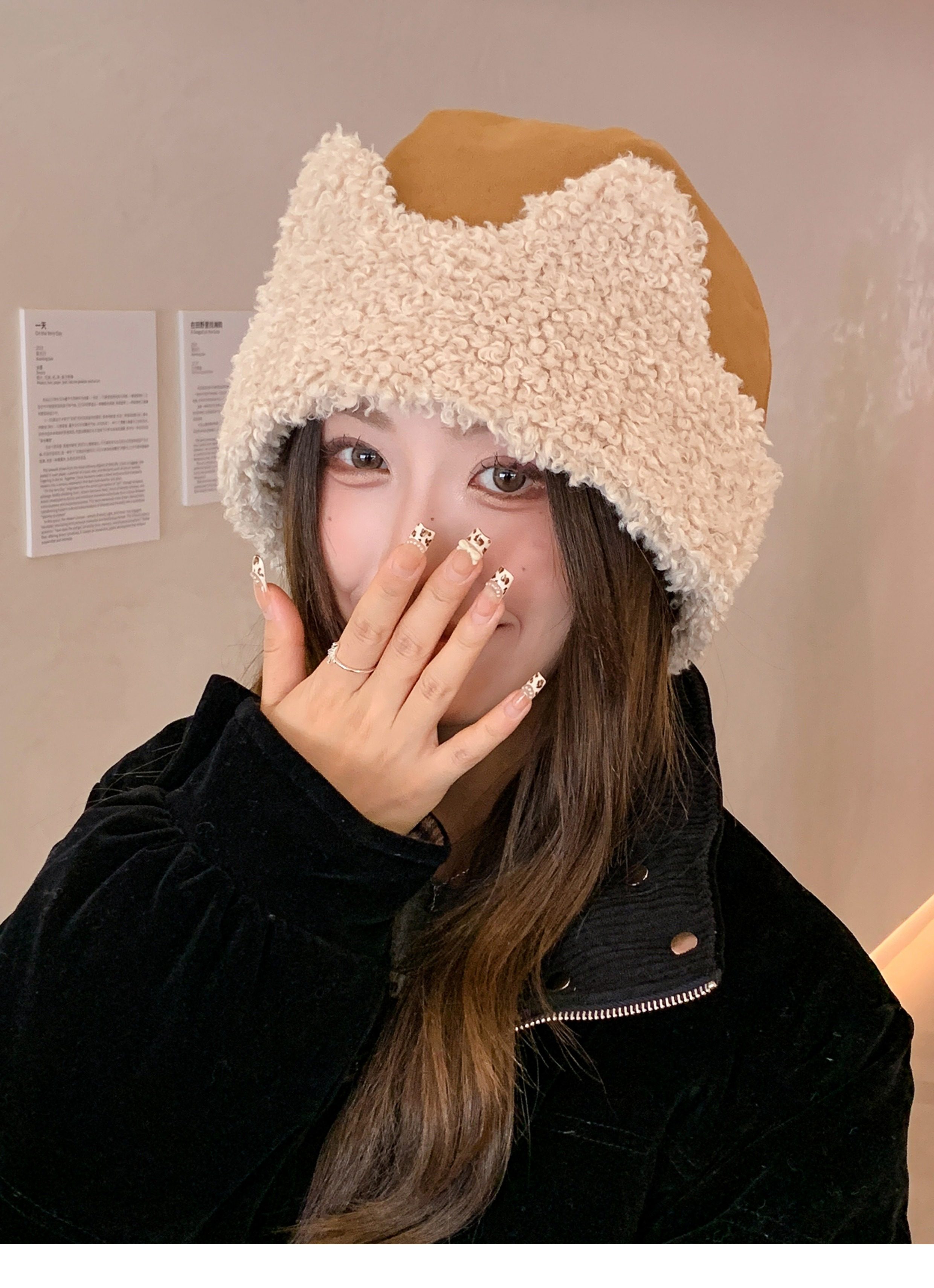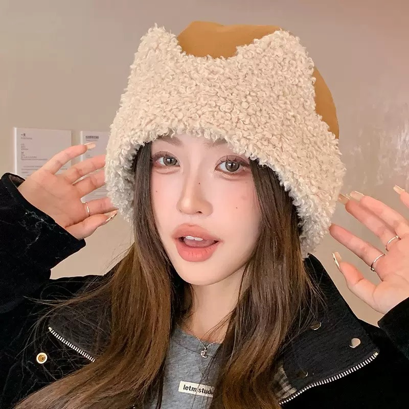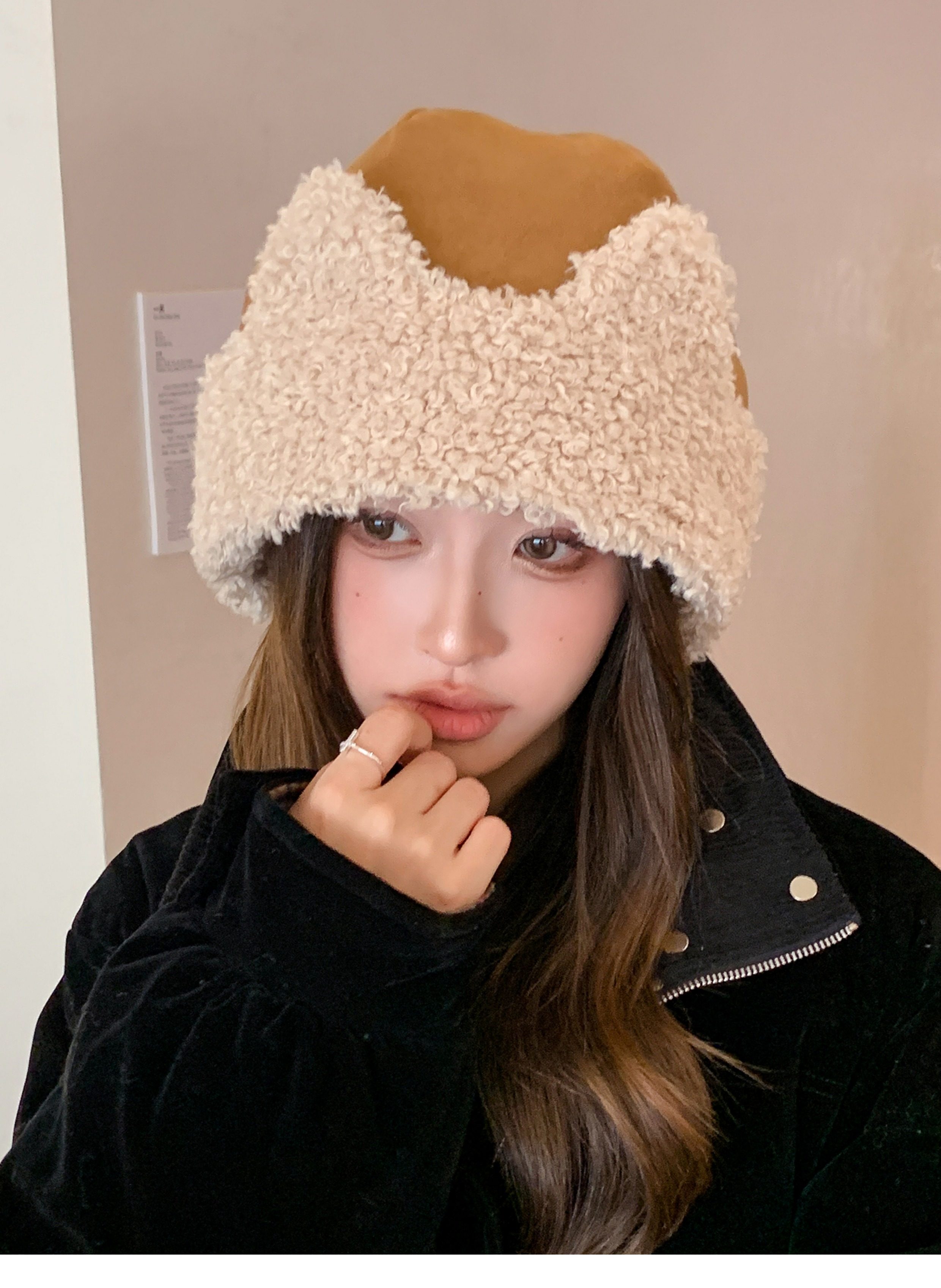 5冬季新可爱猫耳毛绒雷锋帽子女大头围显脸小保暖护耳套头帽