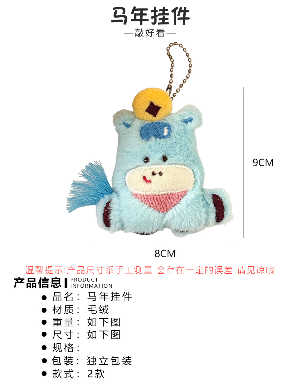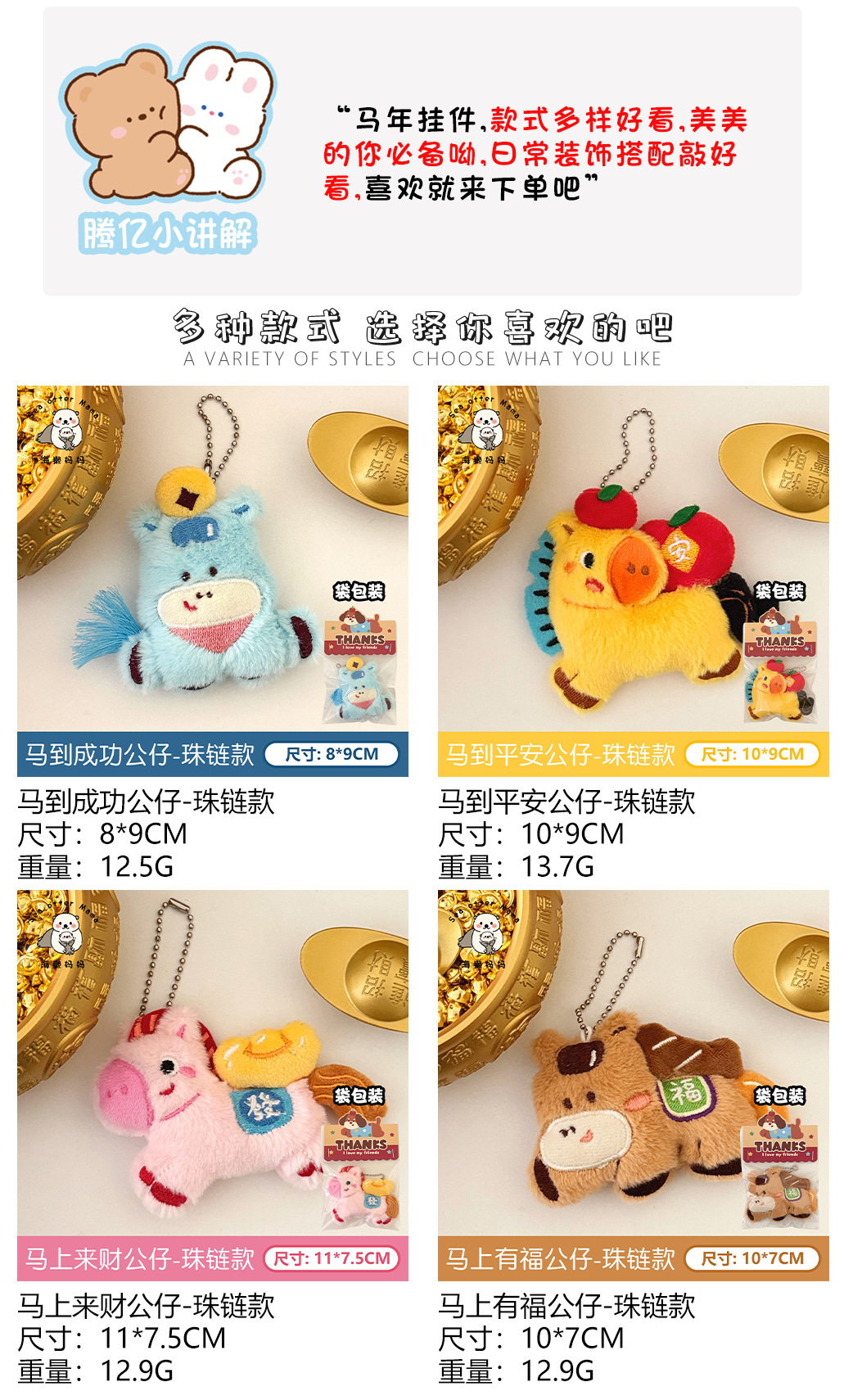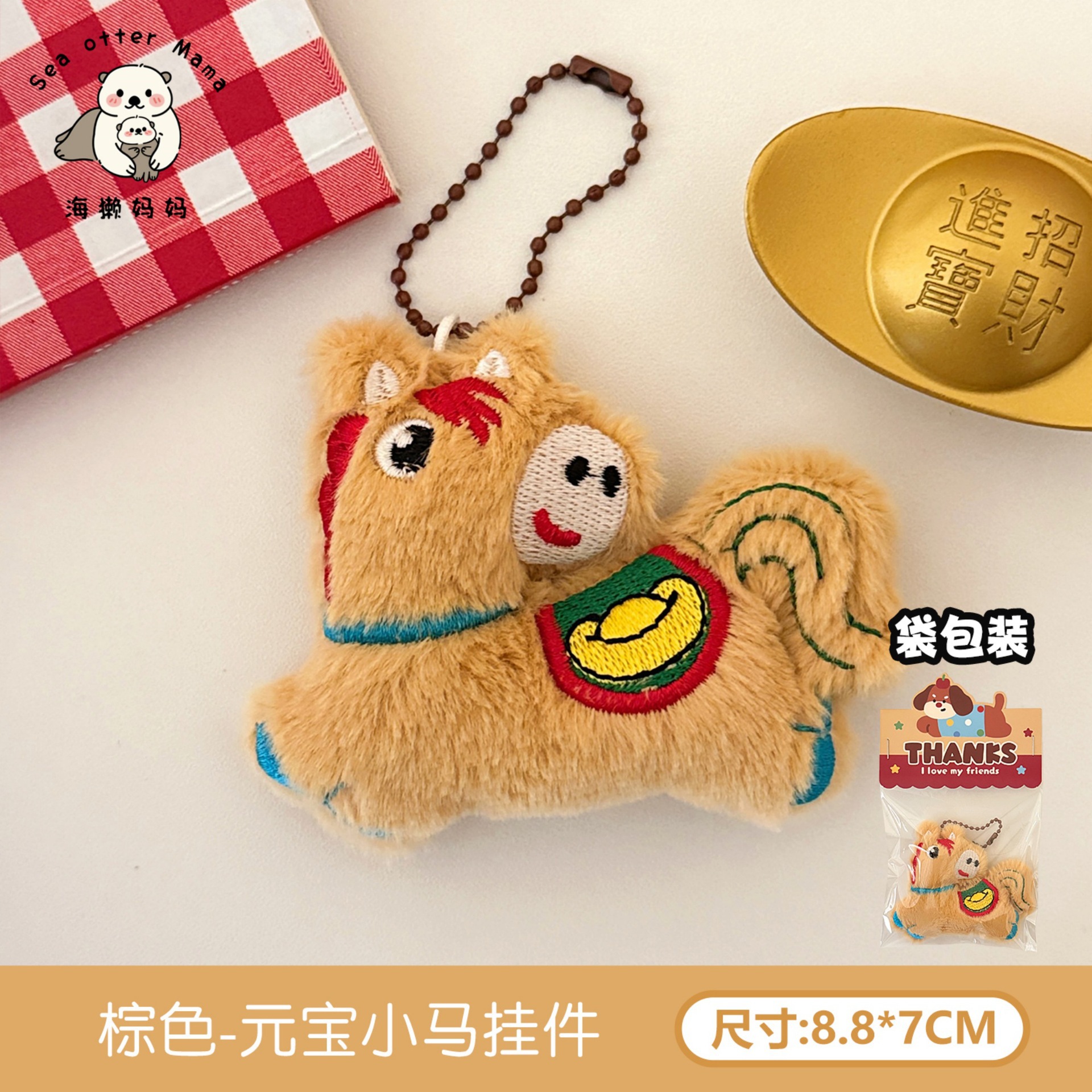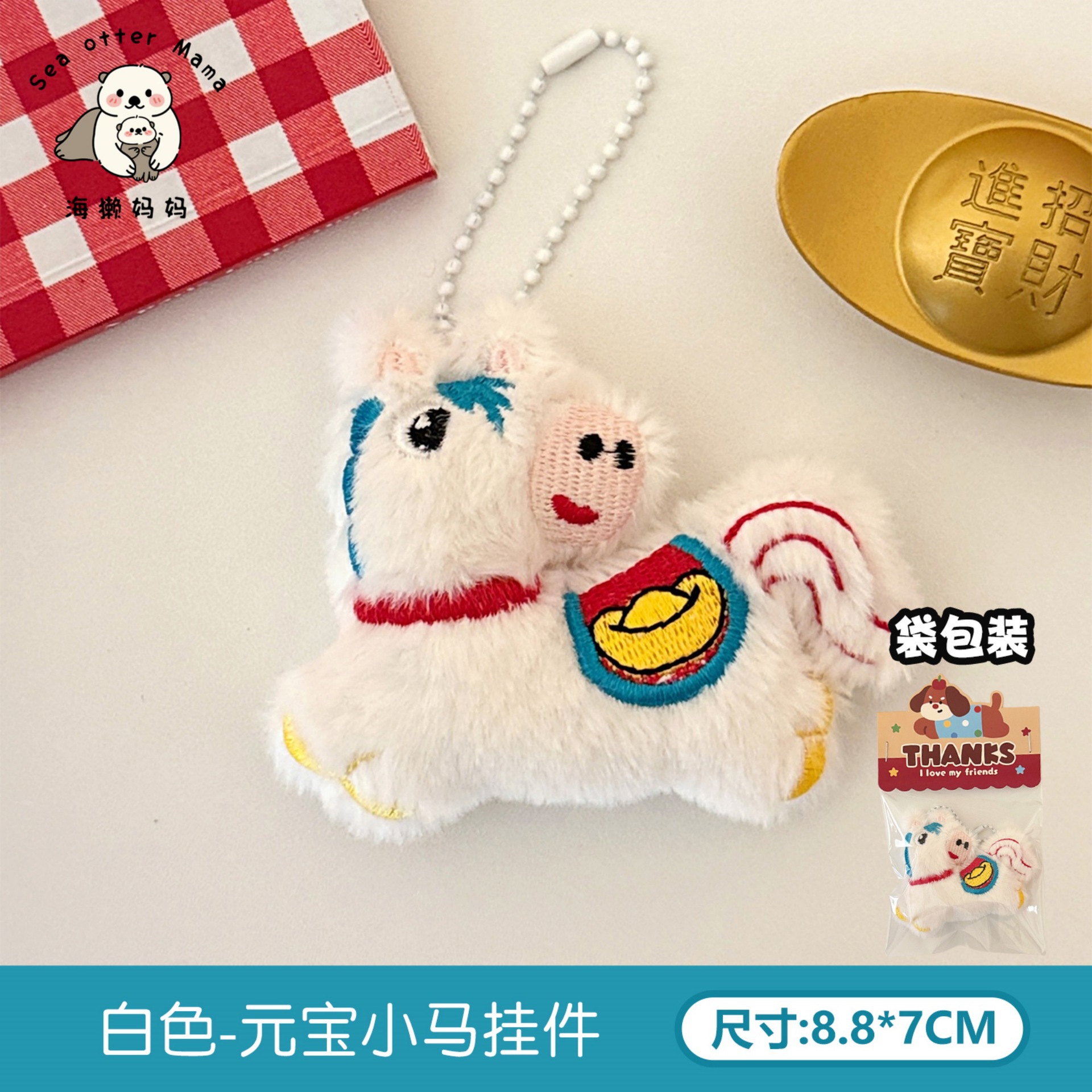腾亿原创马年公仔挂件珠链款时尚百搭背包挂饰来财小马钥匙扣挂坠