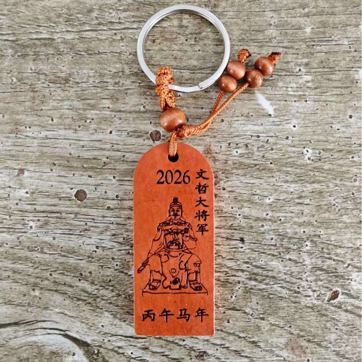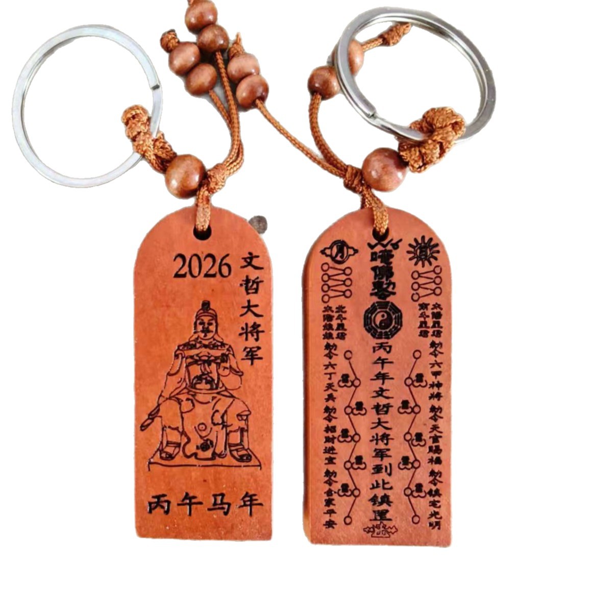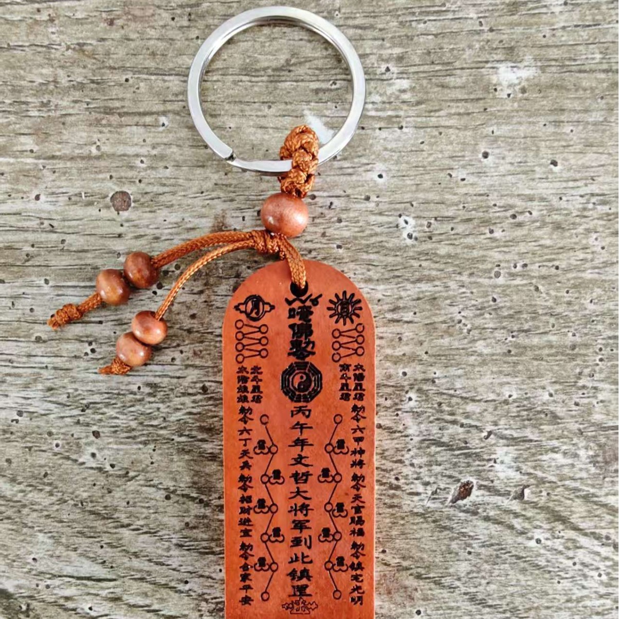 精品桃木太岁符钥匙扣丙午马年文哲大将军太岁符钥匙扣工艺品礼品