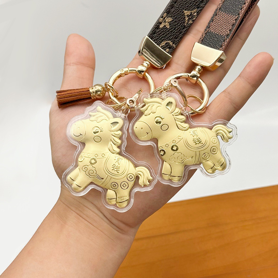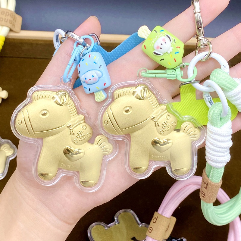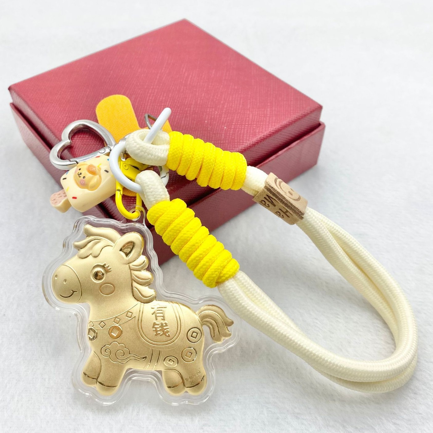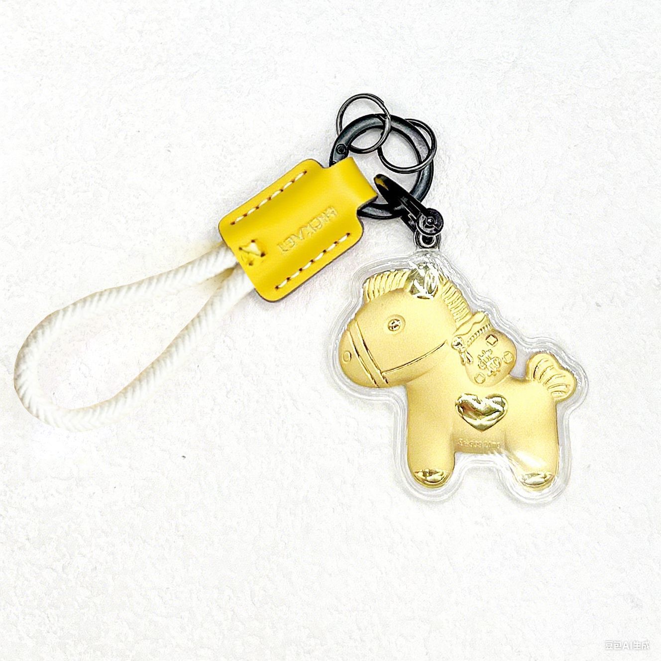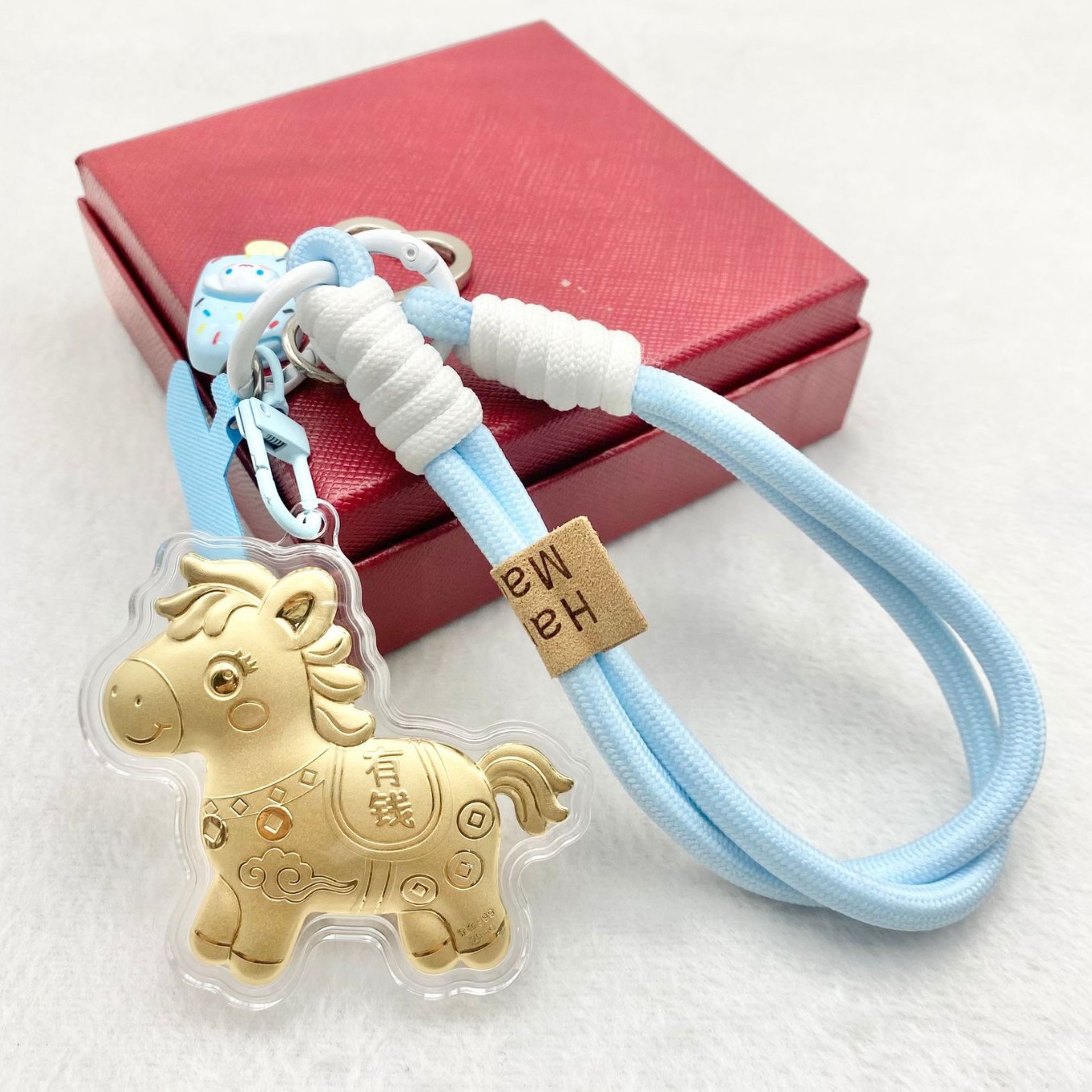 马上有钱足金钥匙扣卡通生肖车黄金小马挂件情侣百搭可爱玉器