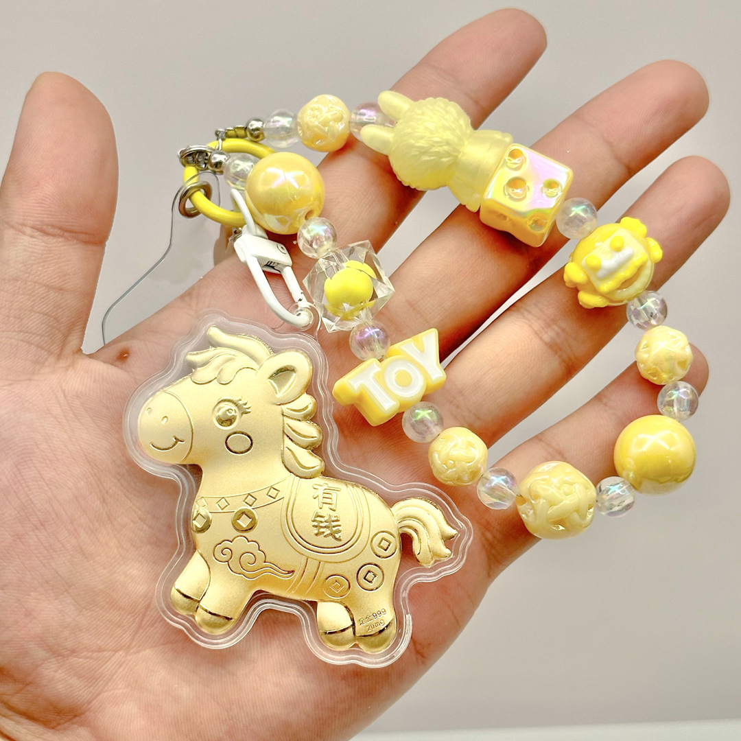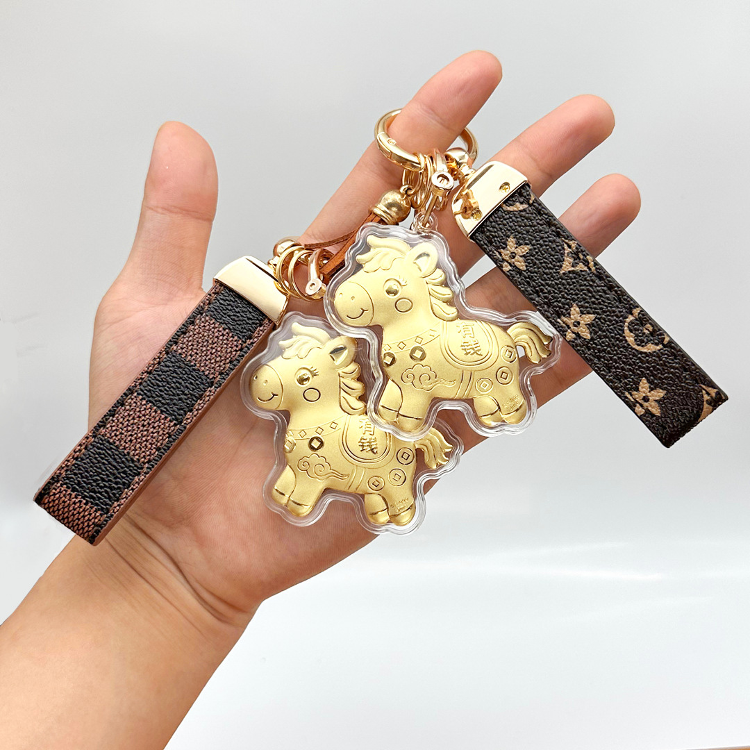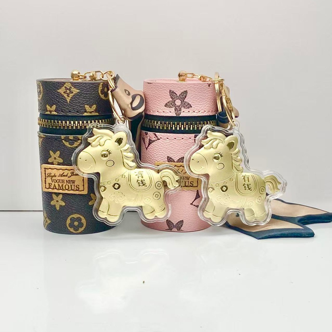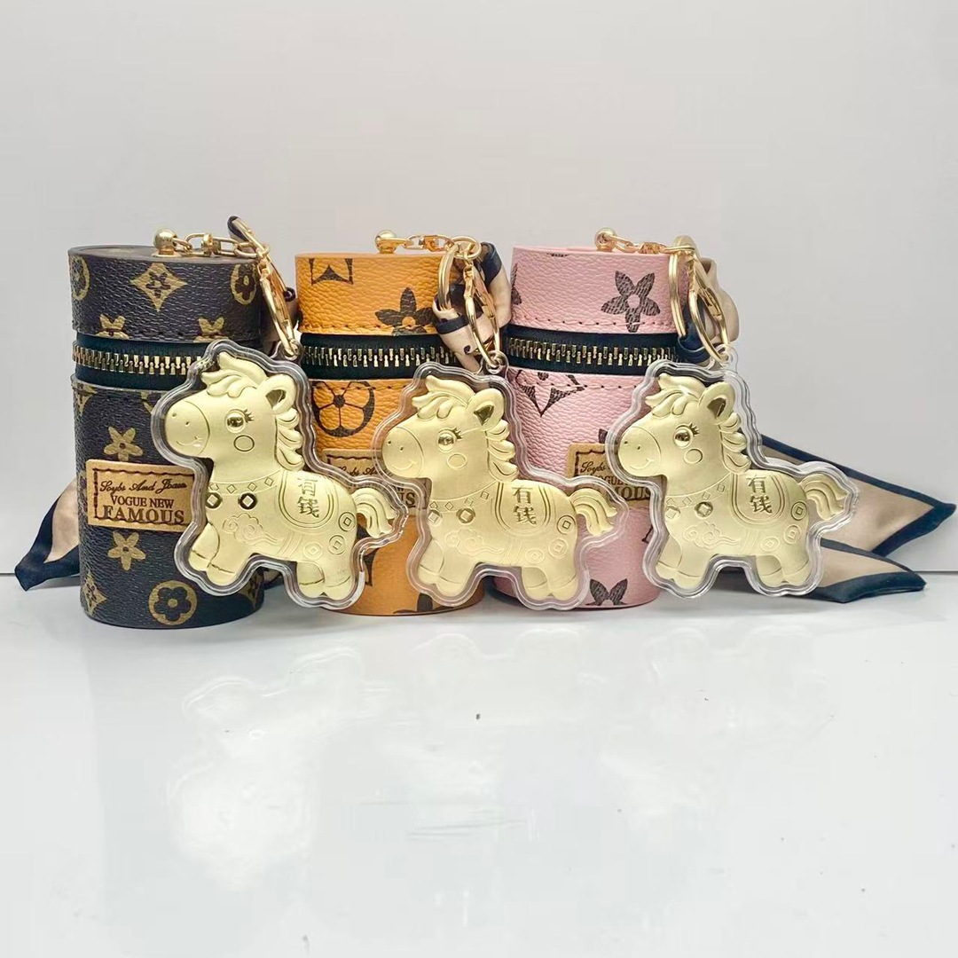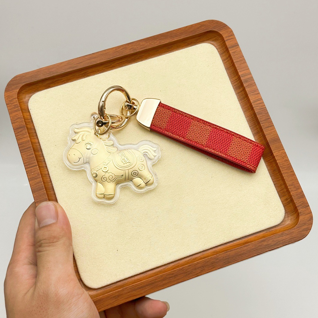 马上有钱足金钥匙扣卡通生肖车黄金小马挂件情侣百搭可爱玉器