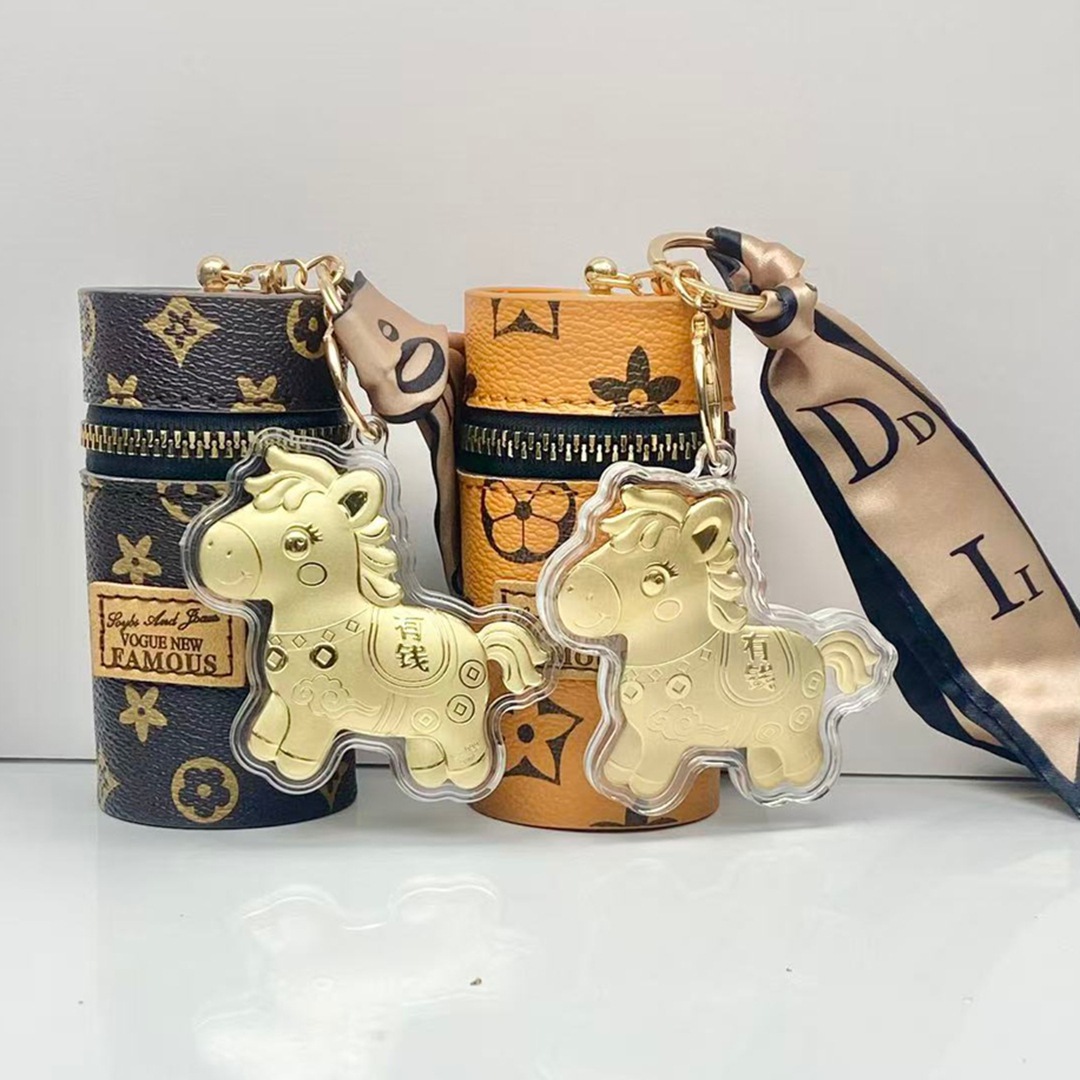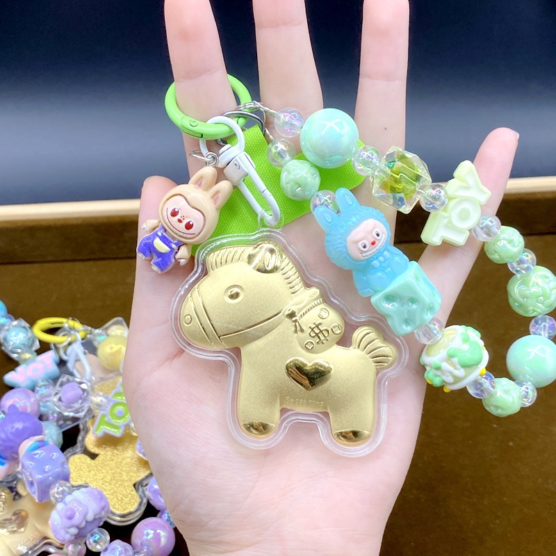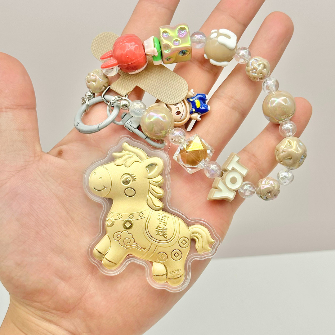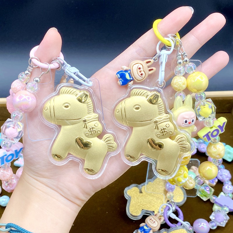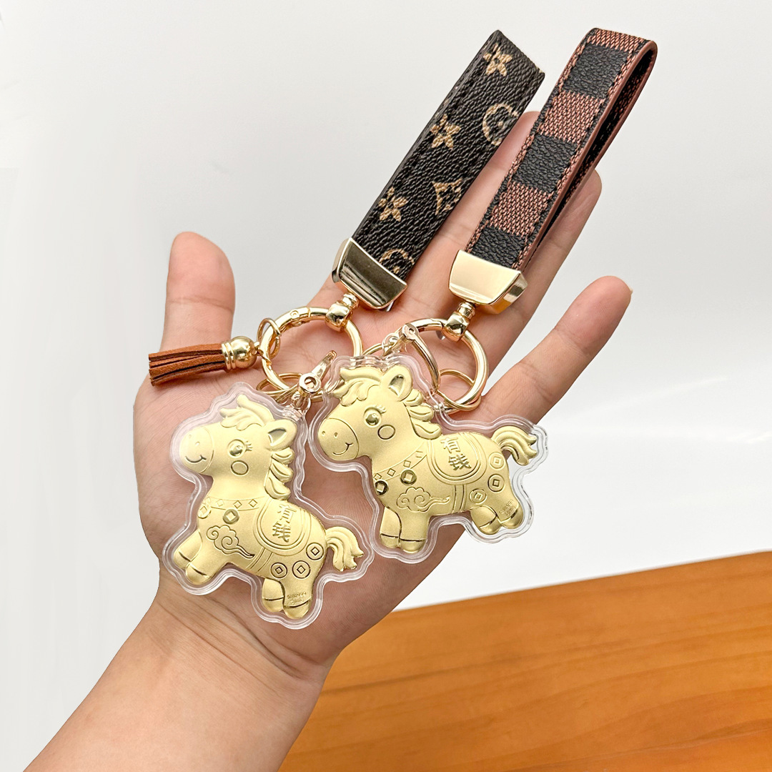 马上有钱足金钥匙扣卡通生肖车黄金小马挂件情侣百搭可爱玉器