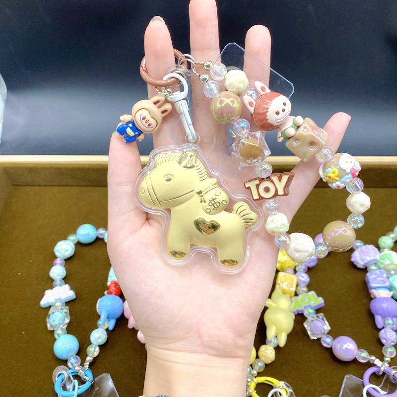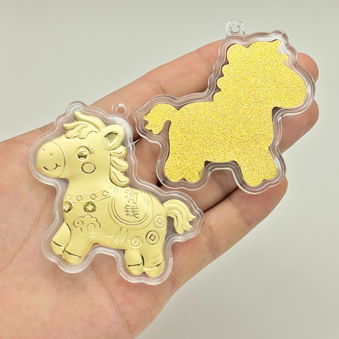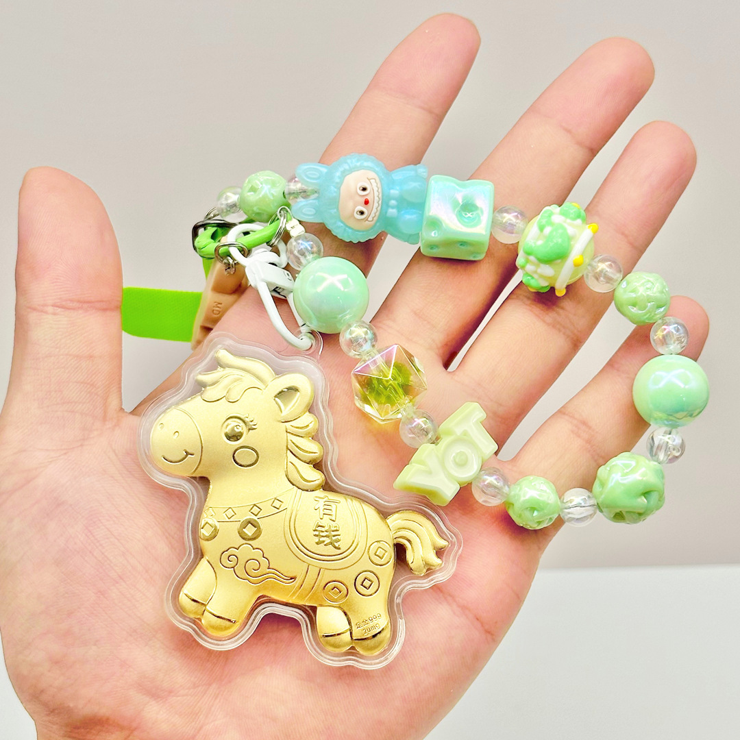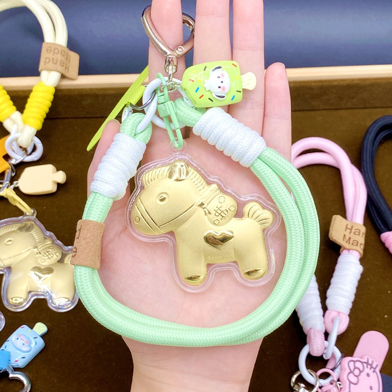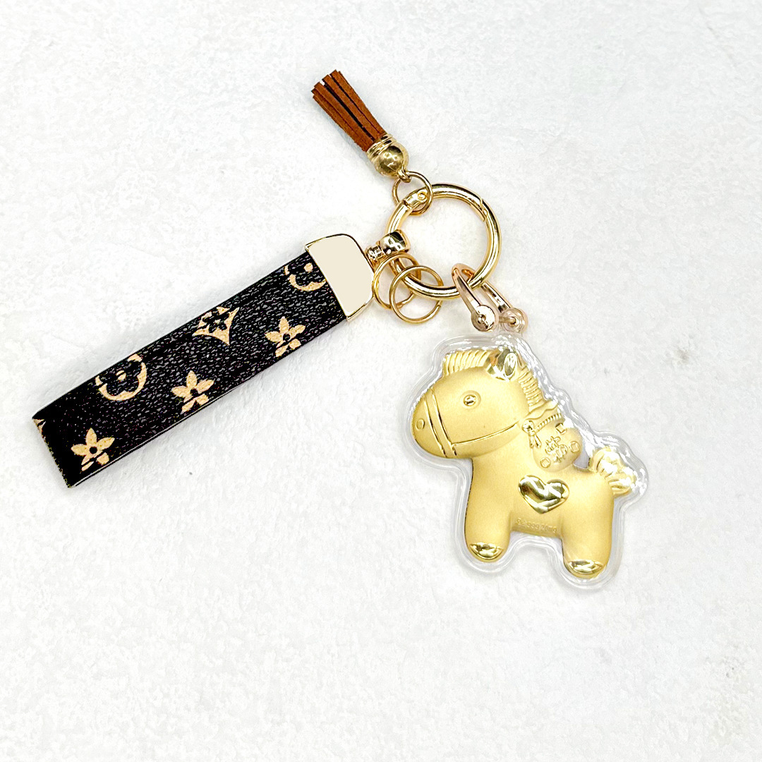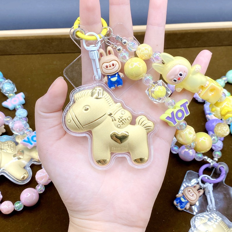 马上有钱足金钥匙扣卡通生肖车黄金小马挂件情侣百搭可爱玉器