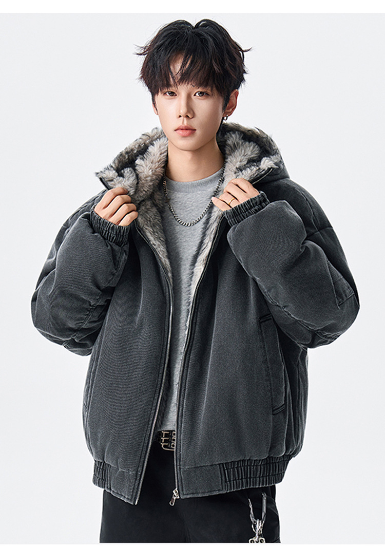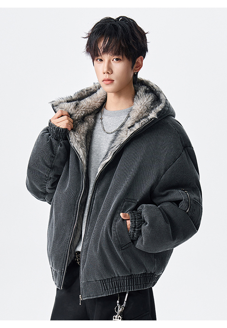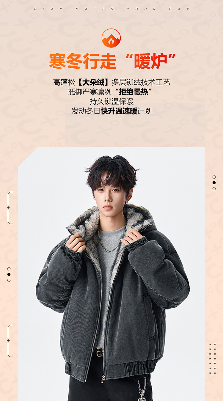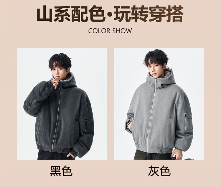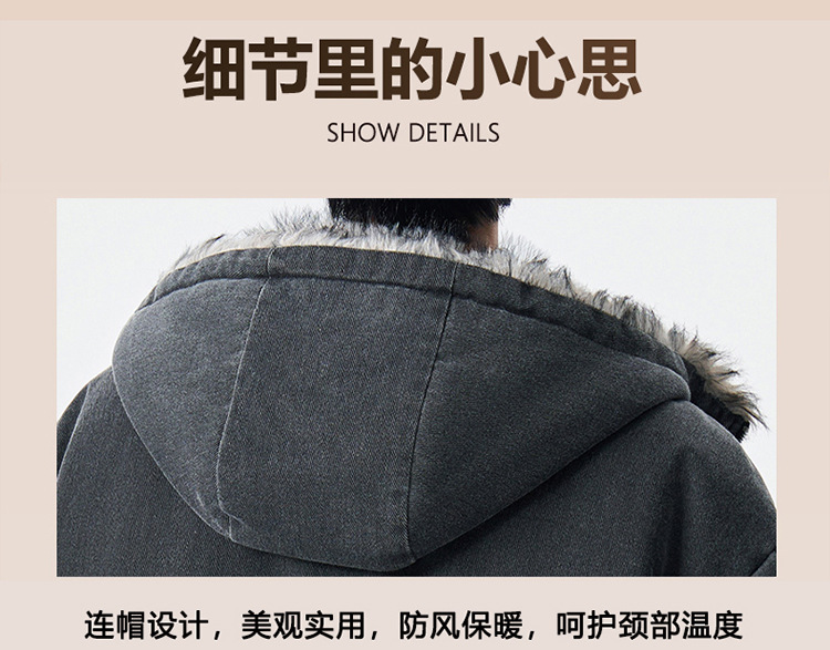 跨境冬季羽绒服男新款座山雕连帽一体绒保暖加厚牛仔休闲男士外套