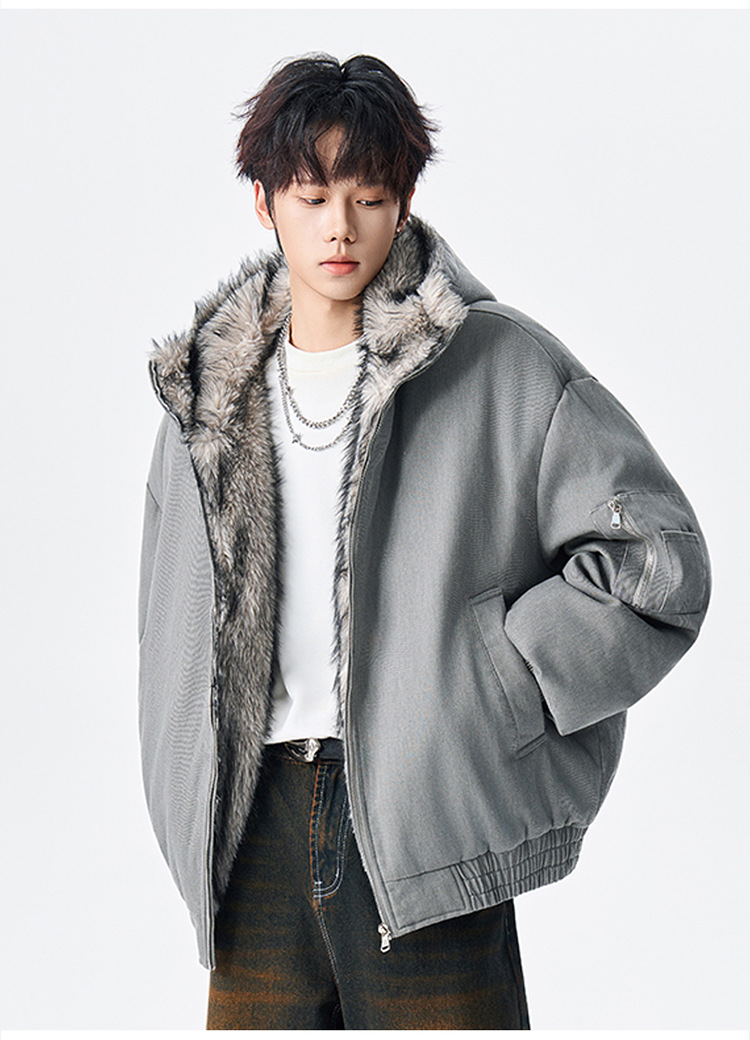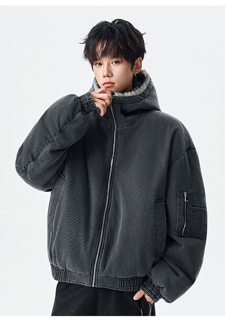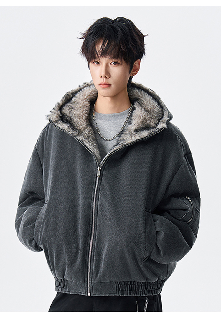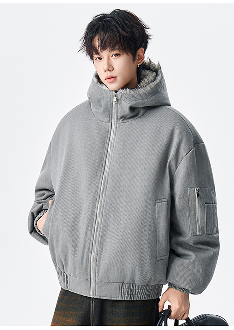 跨境冬季羽绒服男新款座山雕连帽一体绒保暖加厚牛仔休闲男士外套