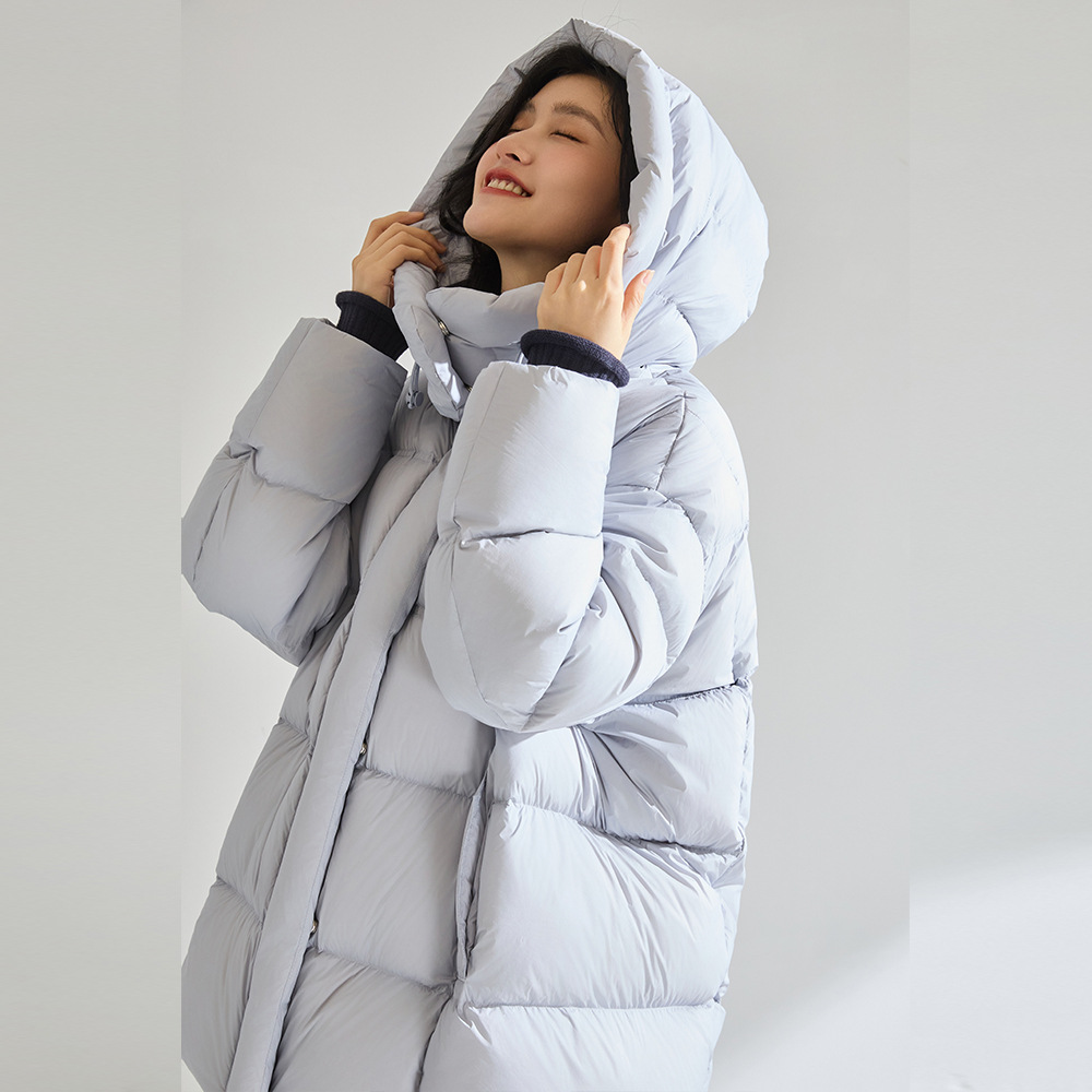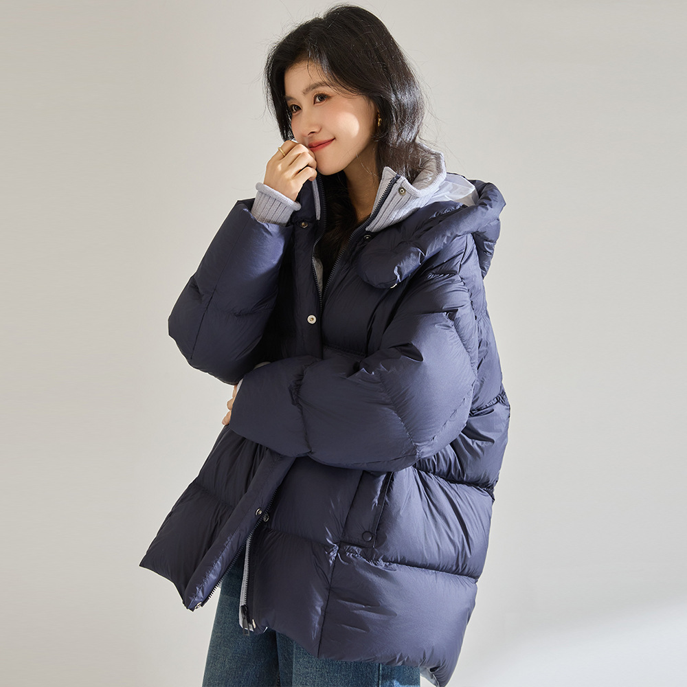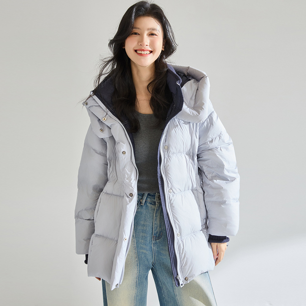 25冬季新款加厚撞色白鸭绒云朵羽绒服连帽拼接针织面包服29033