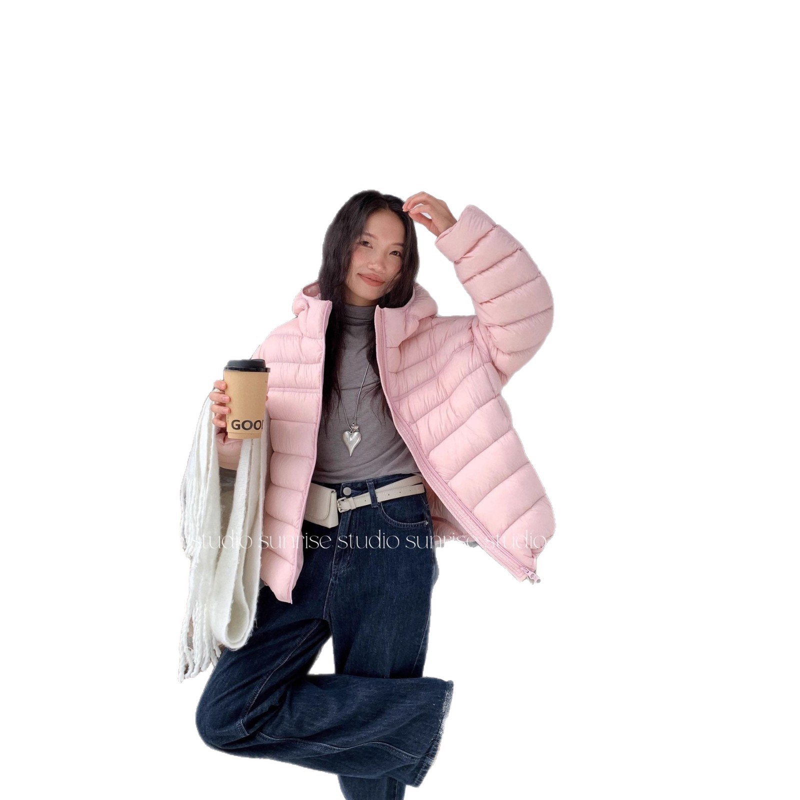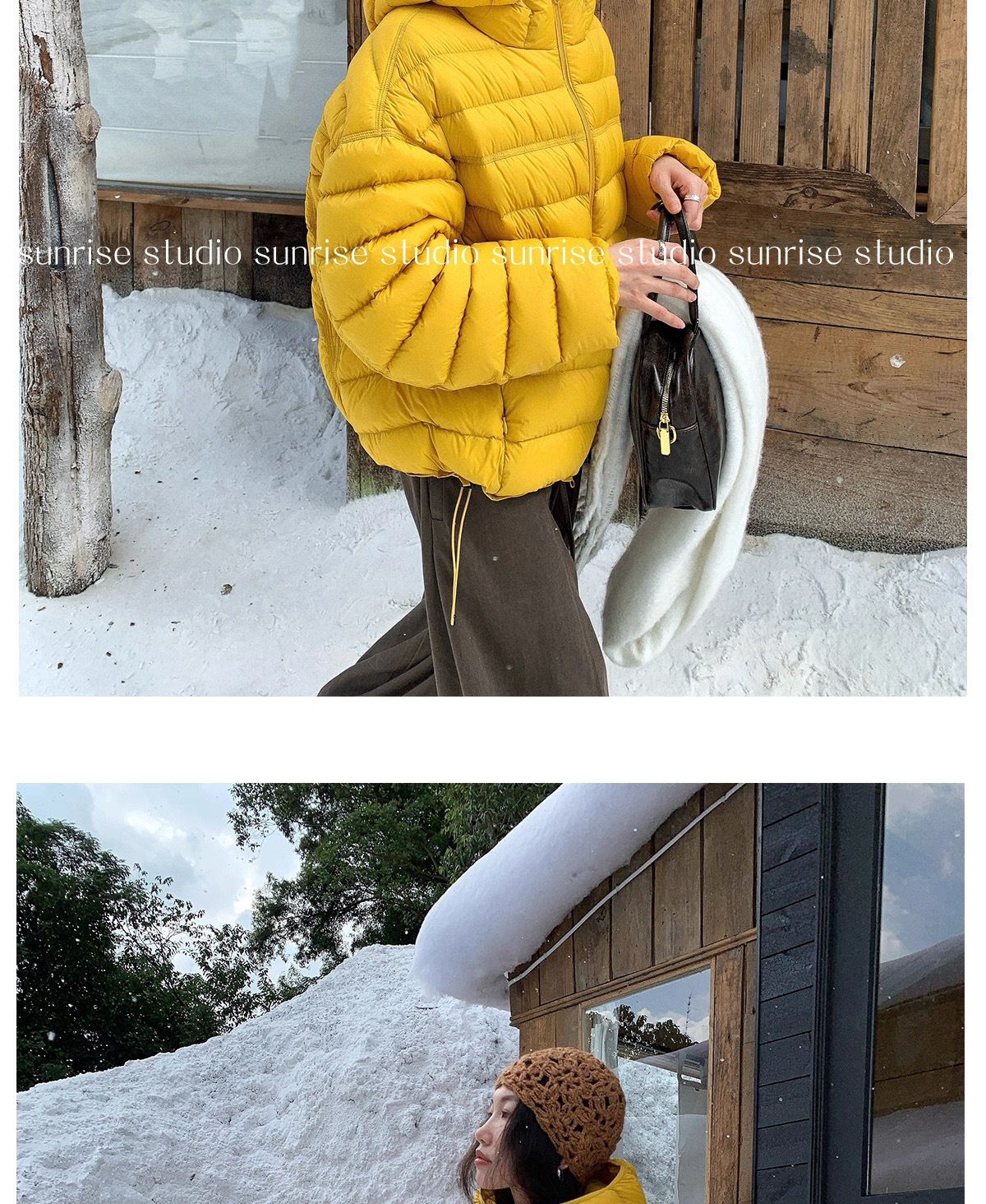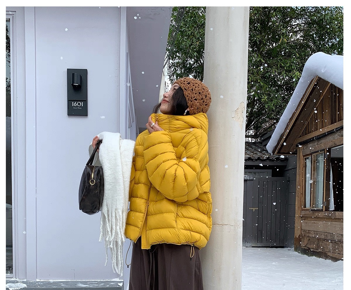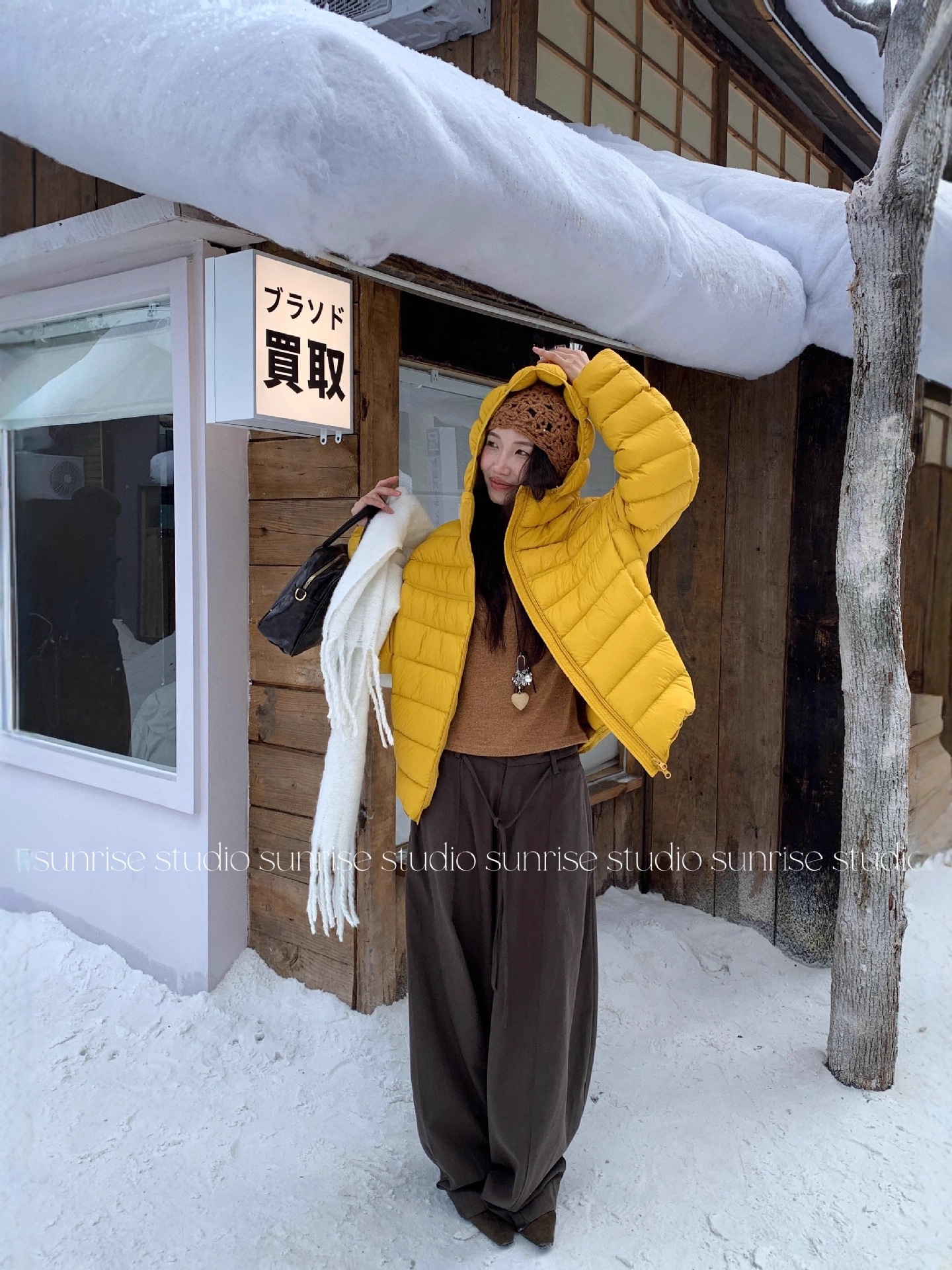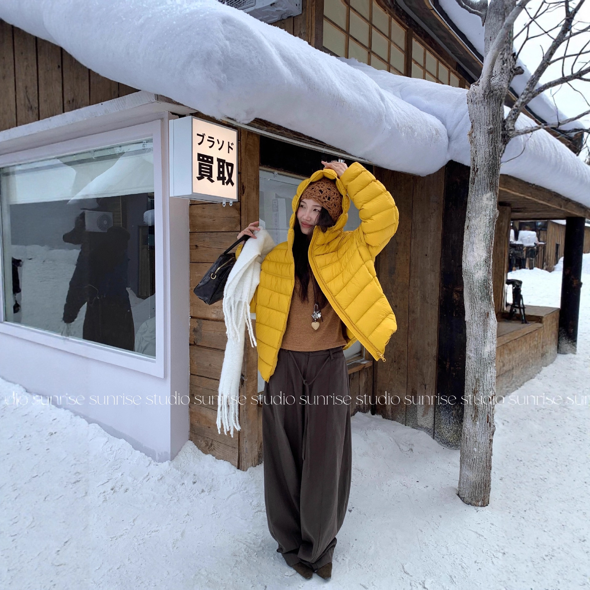 平湖羽绒服2025新款黄色排骨羽绒服外套女90白鸭绒连帽轻薄保暖