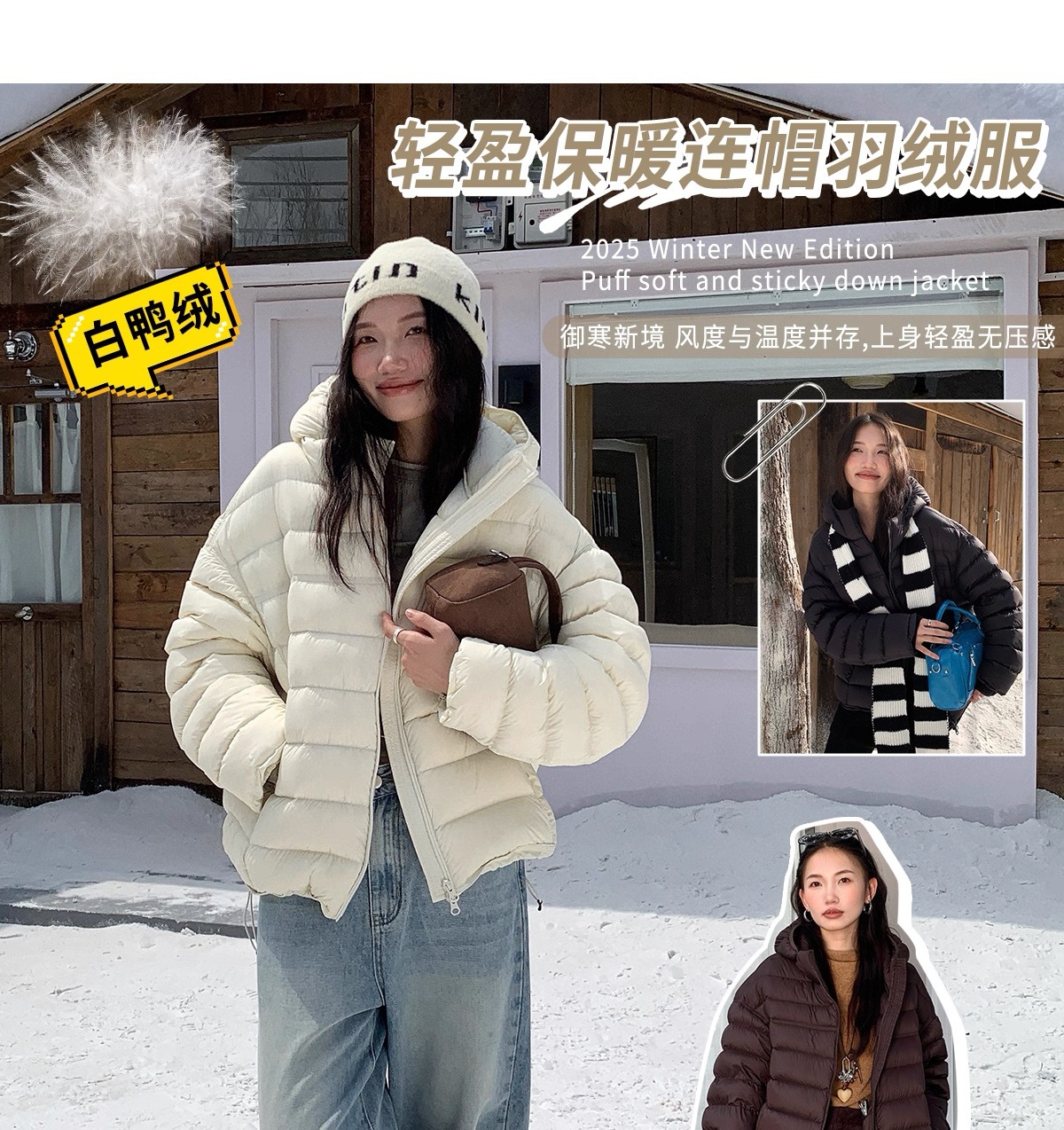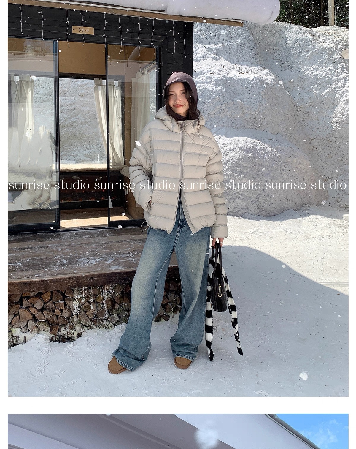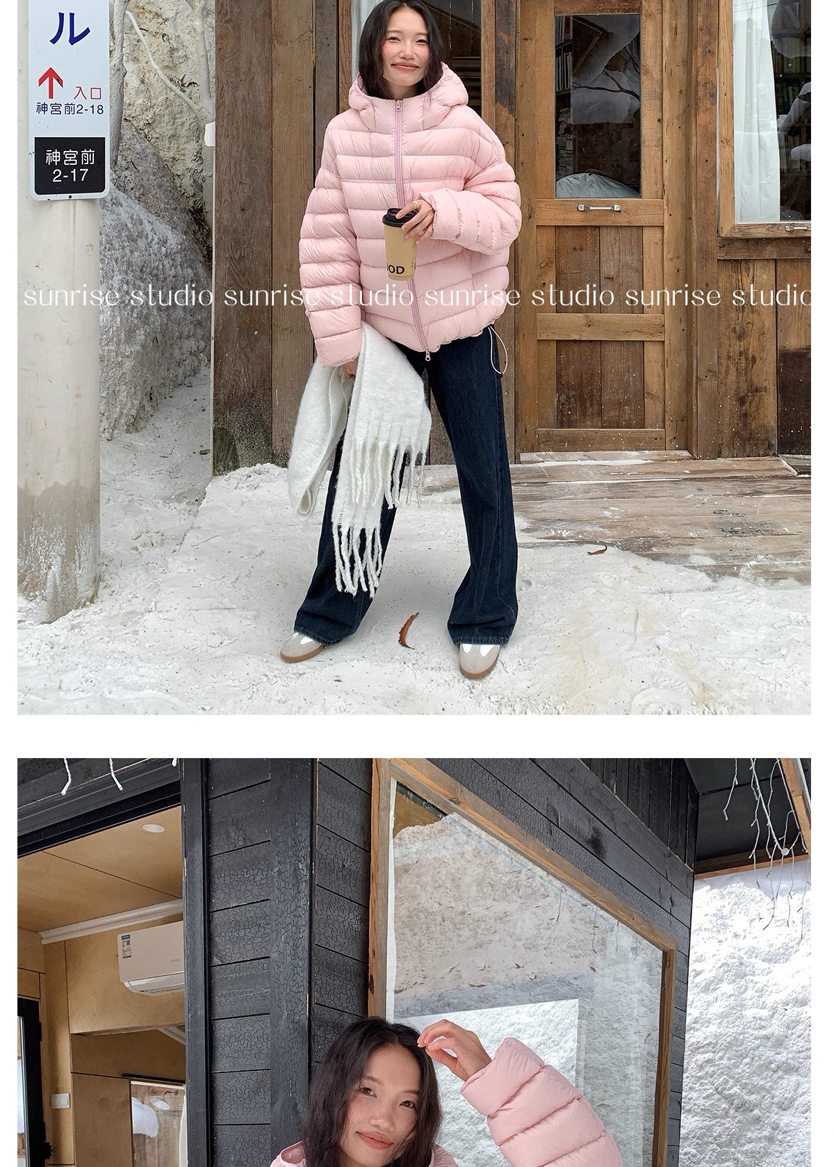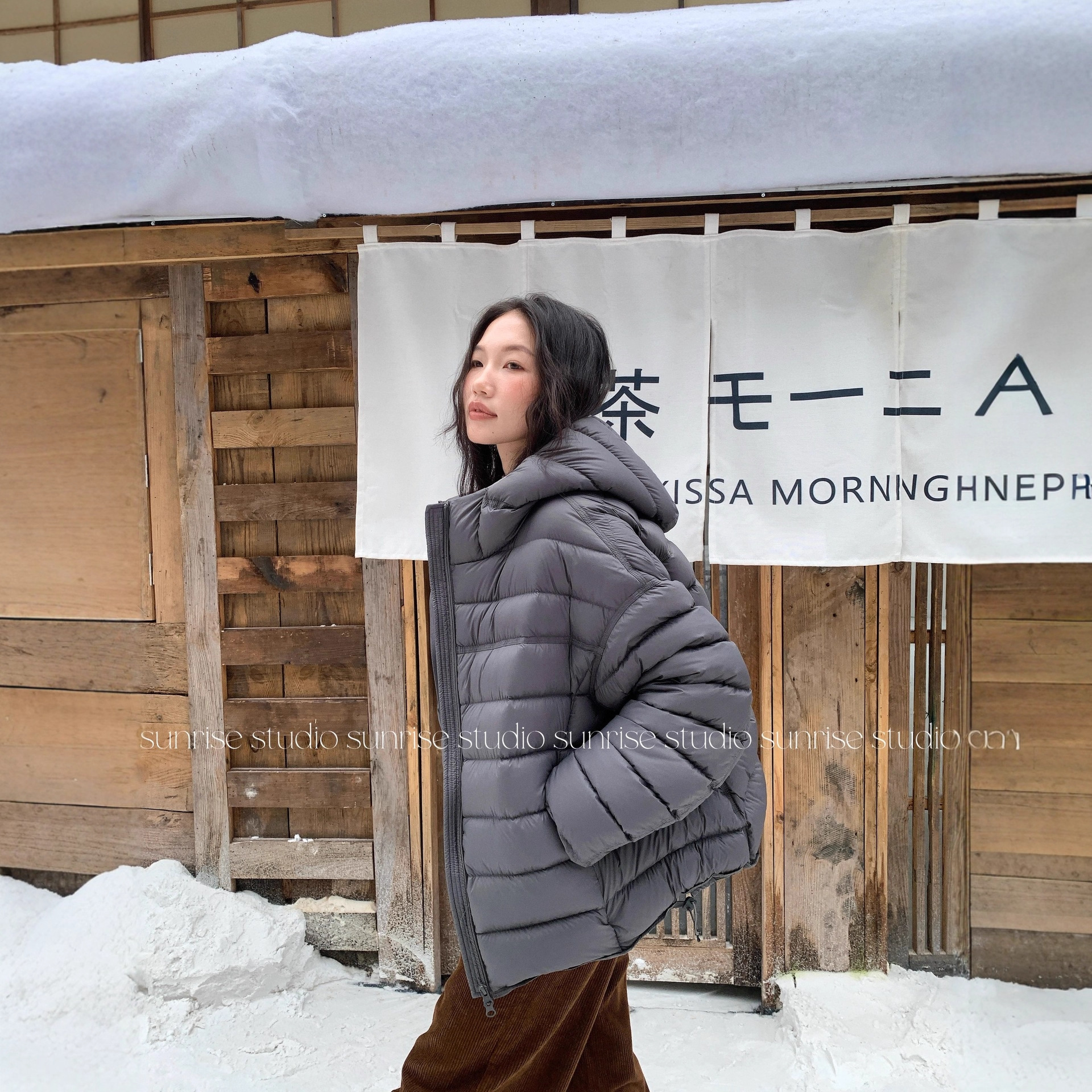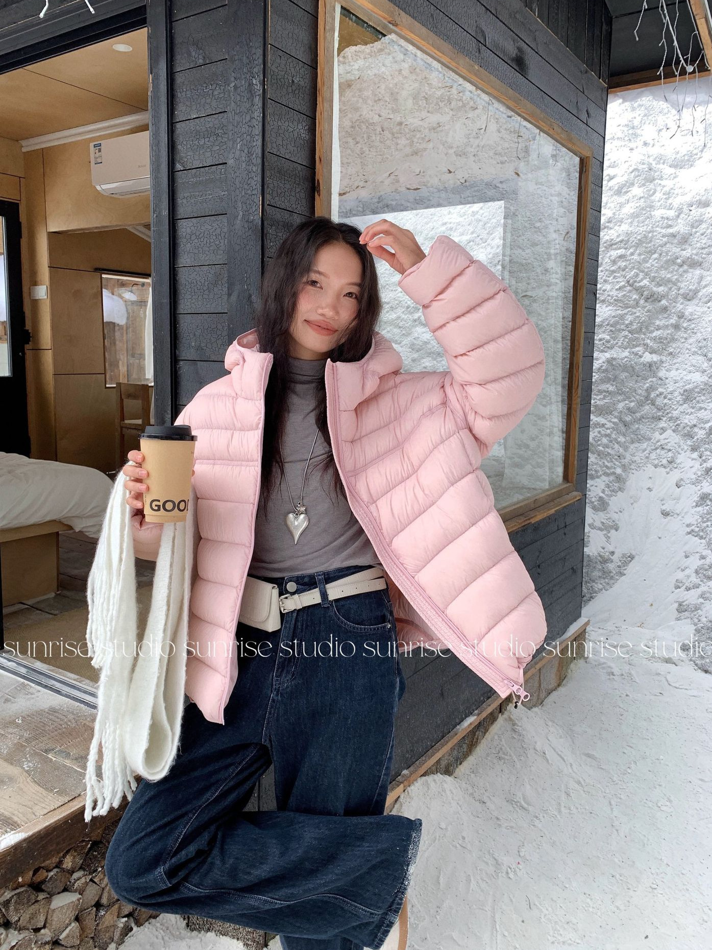 平湖羽绒服2025新款黄色排骨羽绒服外套女90白鸭绒连帽轻薄保暖