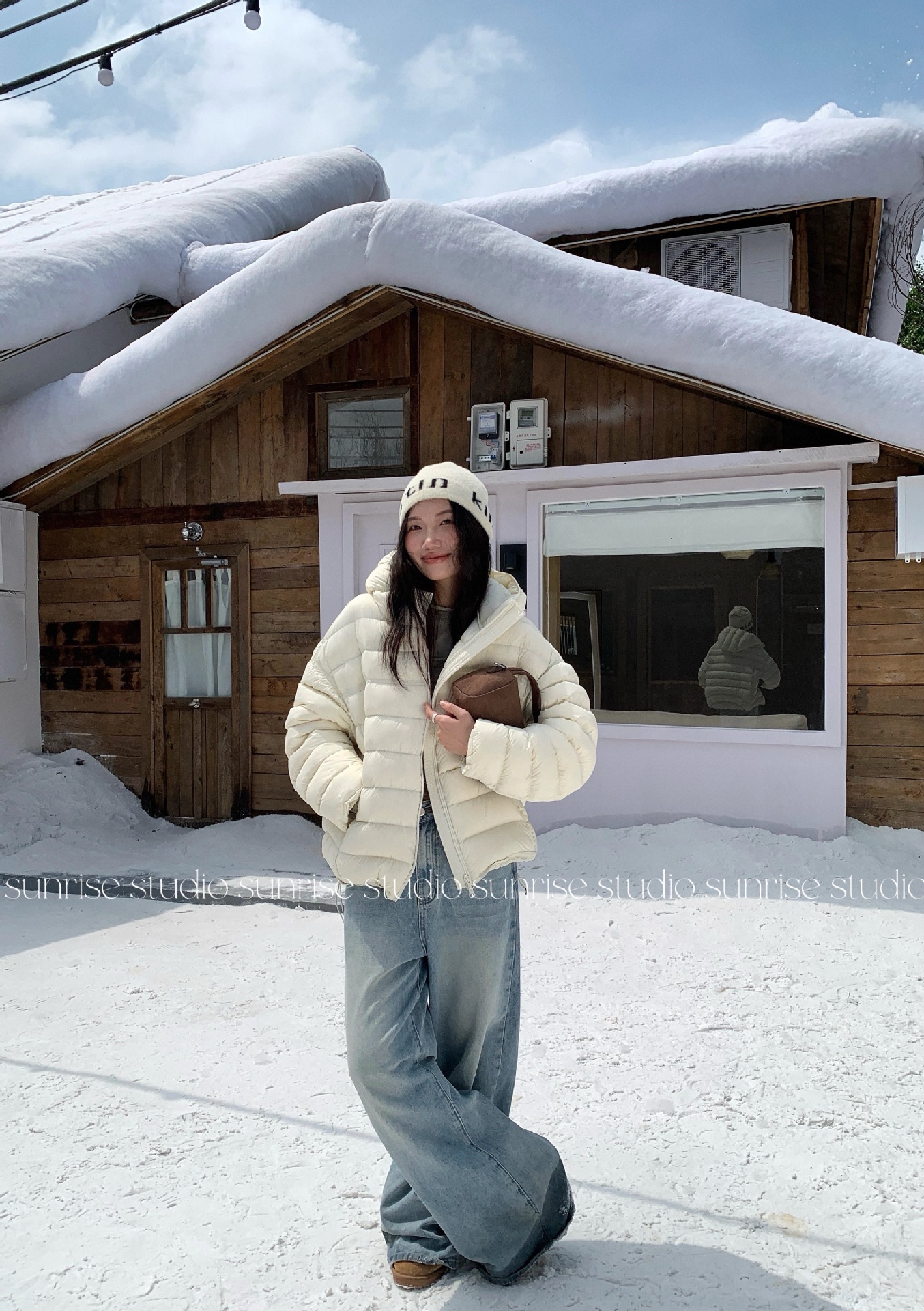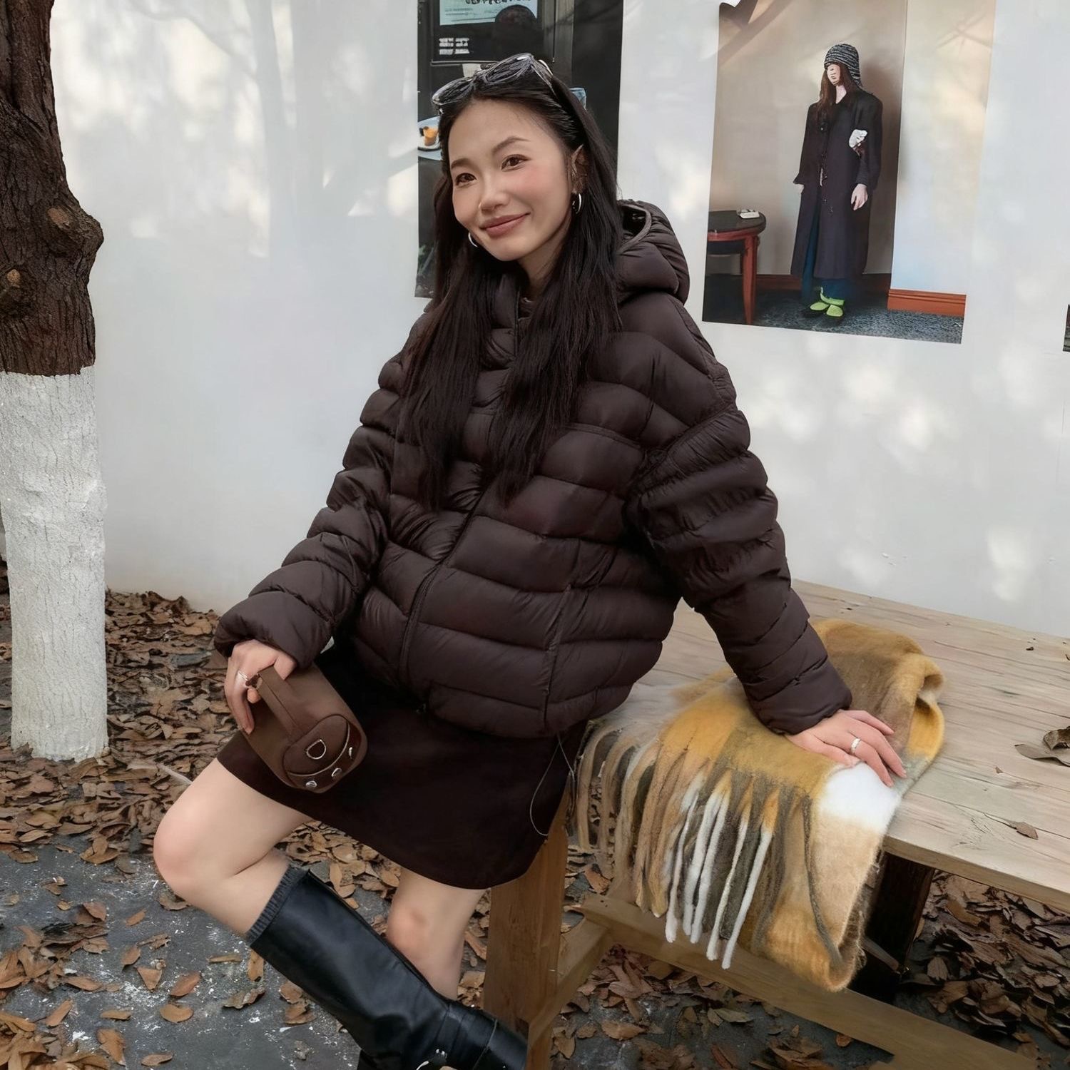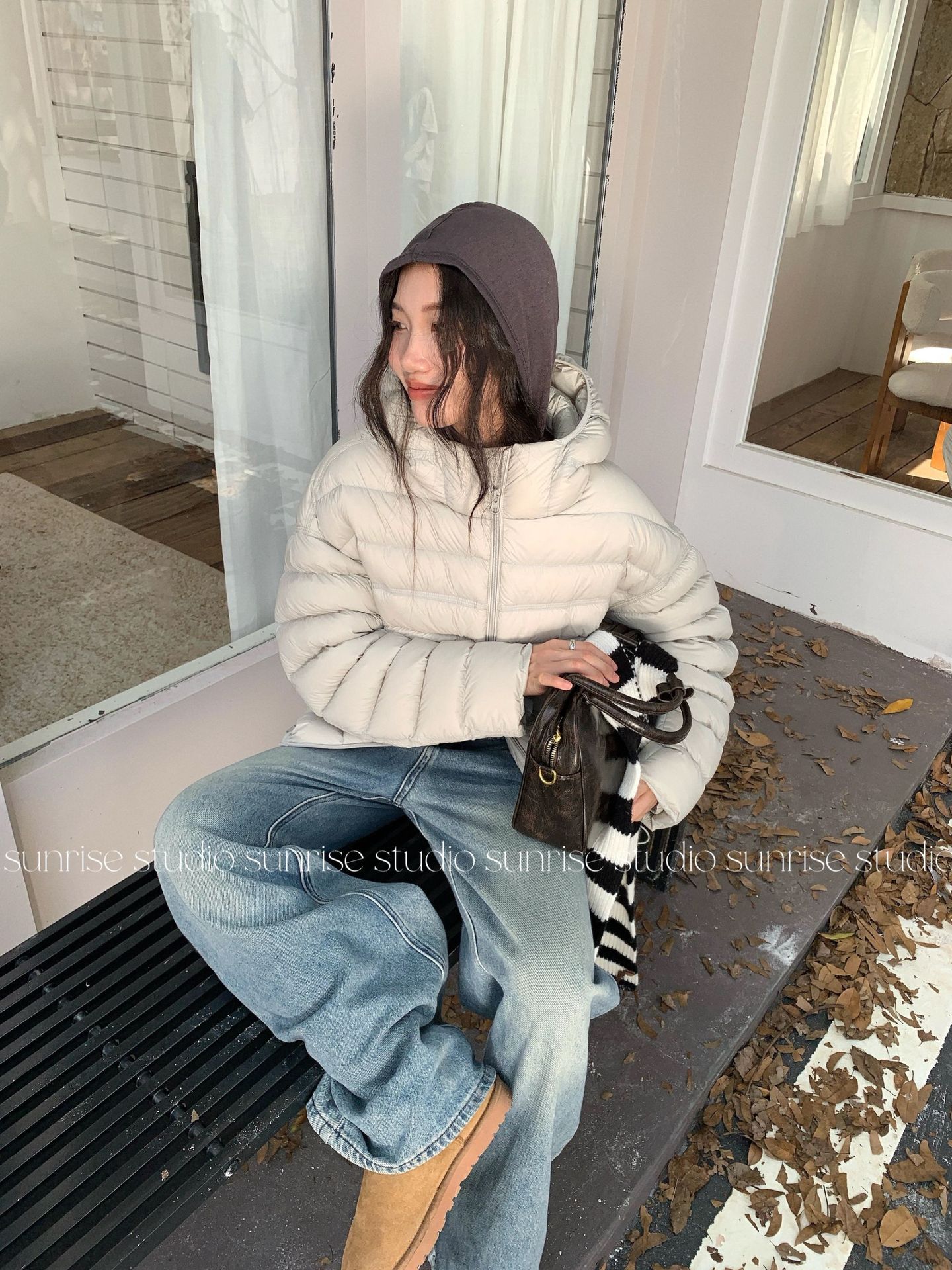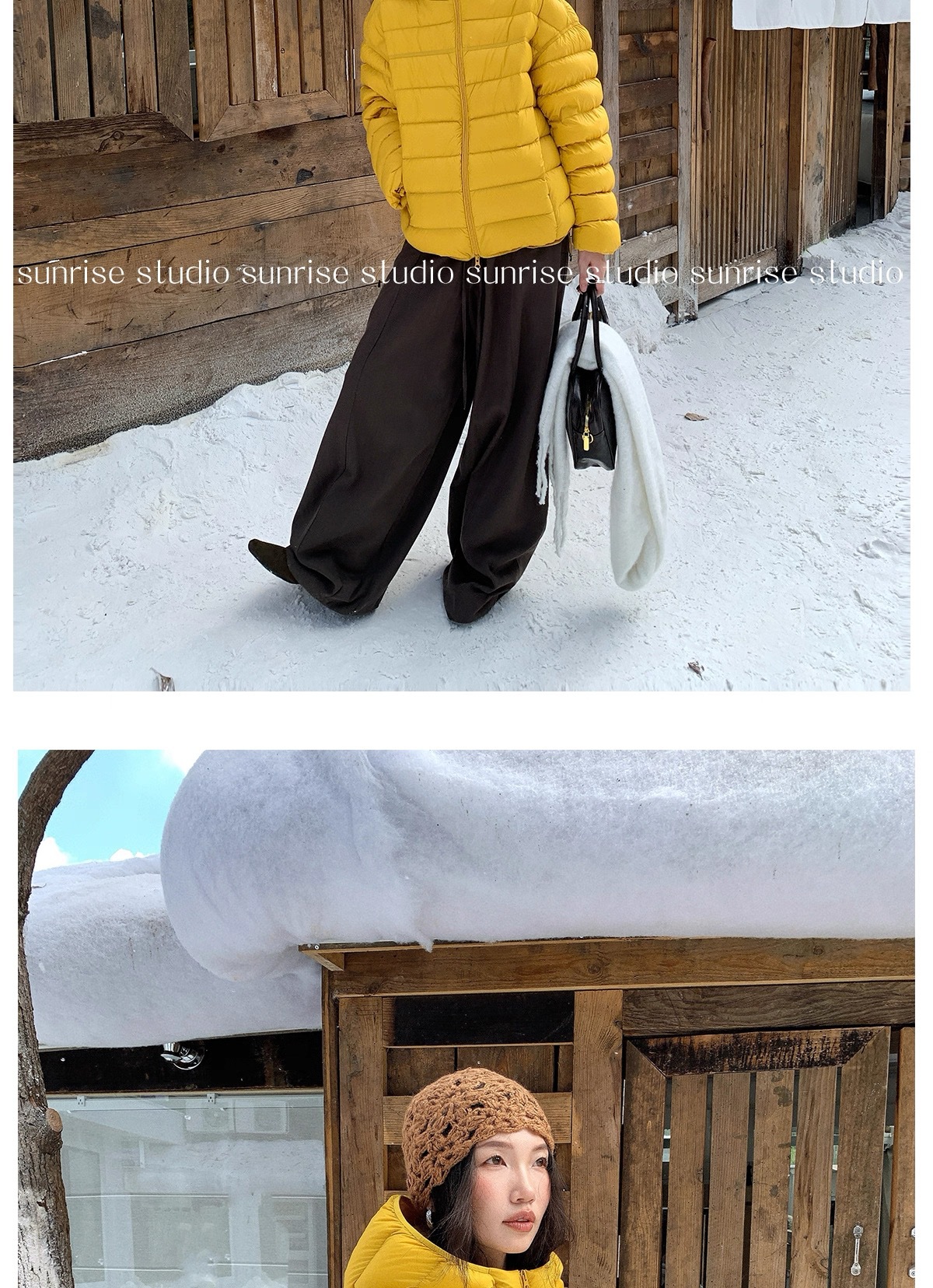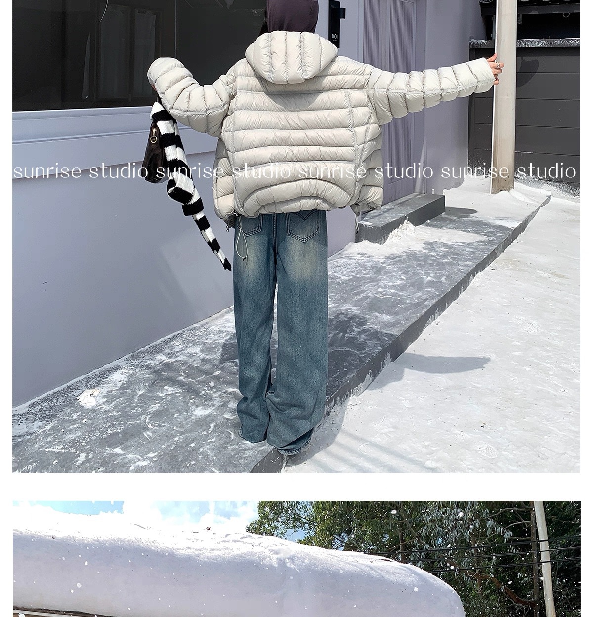平湖羽绒服2025新款黄色排骨羽绒服外套女90白鸭绒连帽轻薄保暖