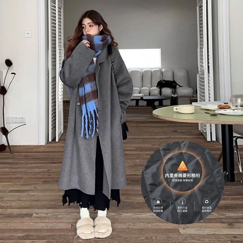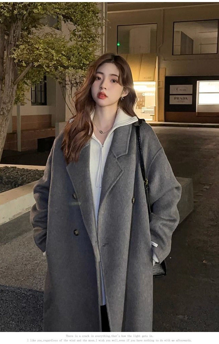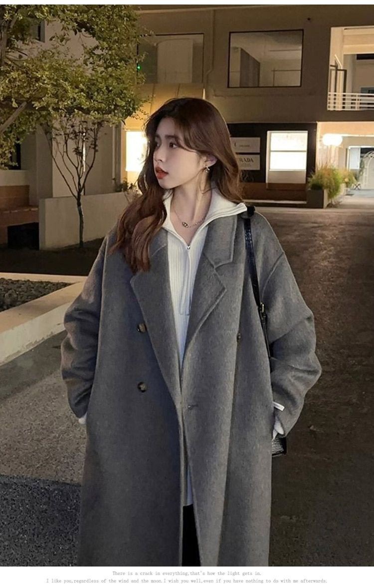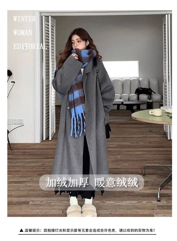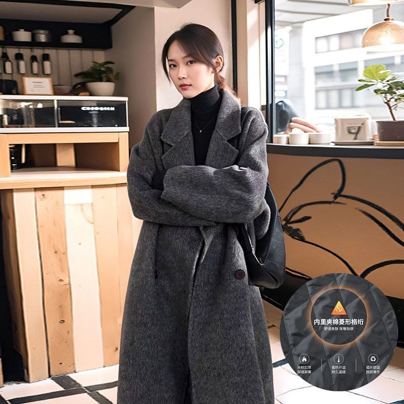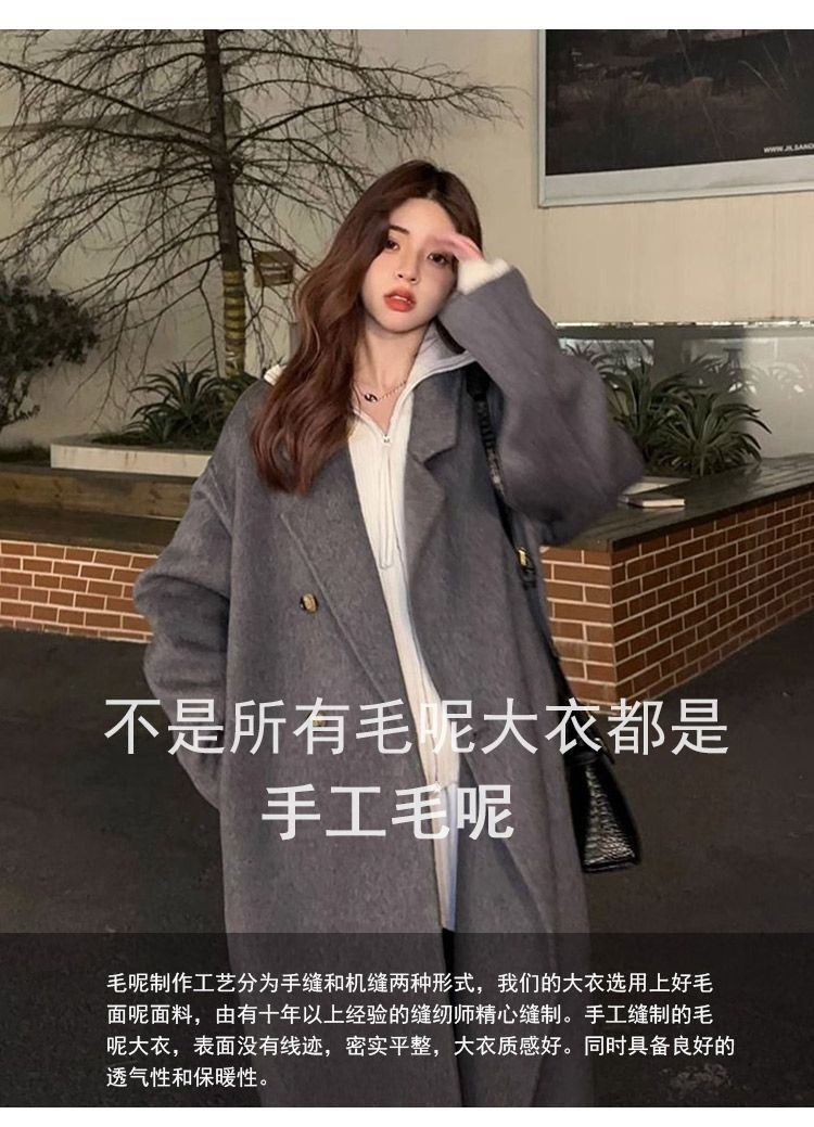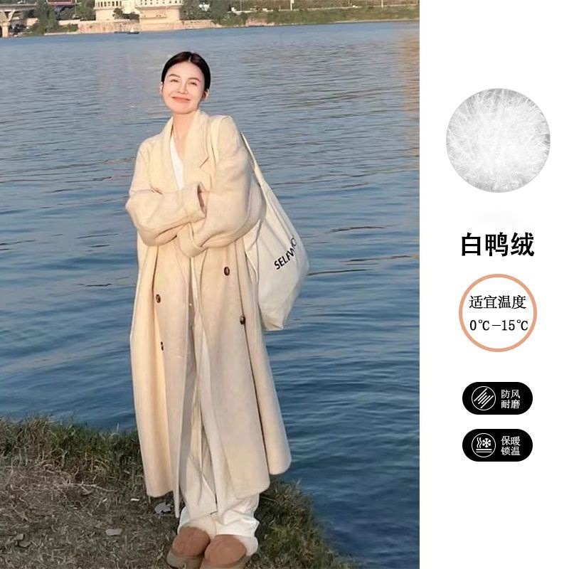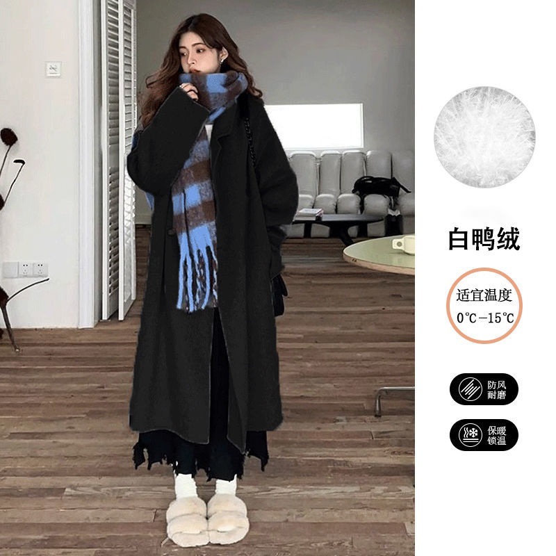 2025灰色白鸭绒羽内胆大衣秋冬季新款中长款加厚保暖羽绒毛呢外套