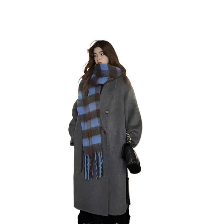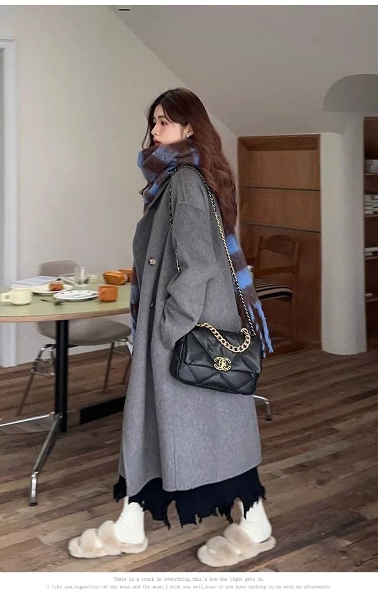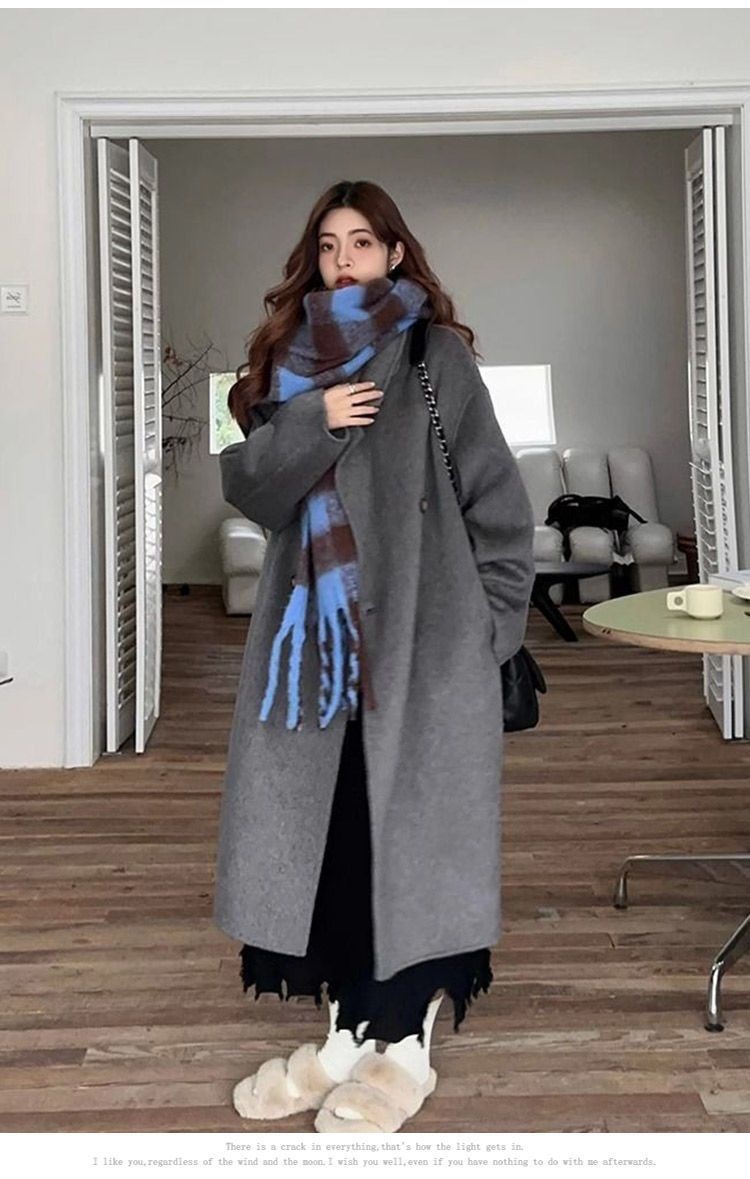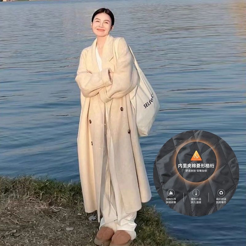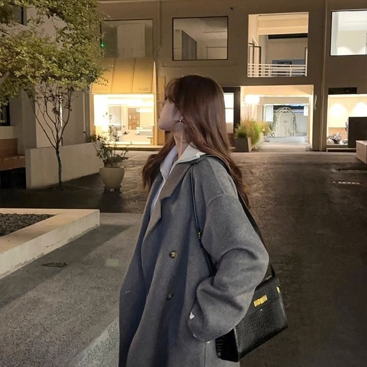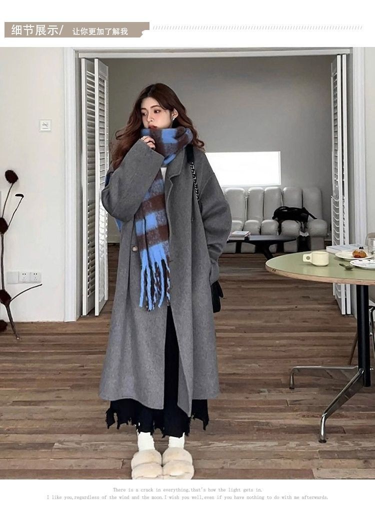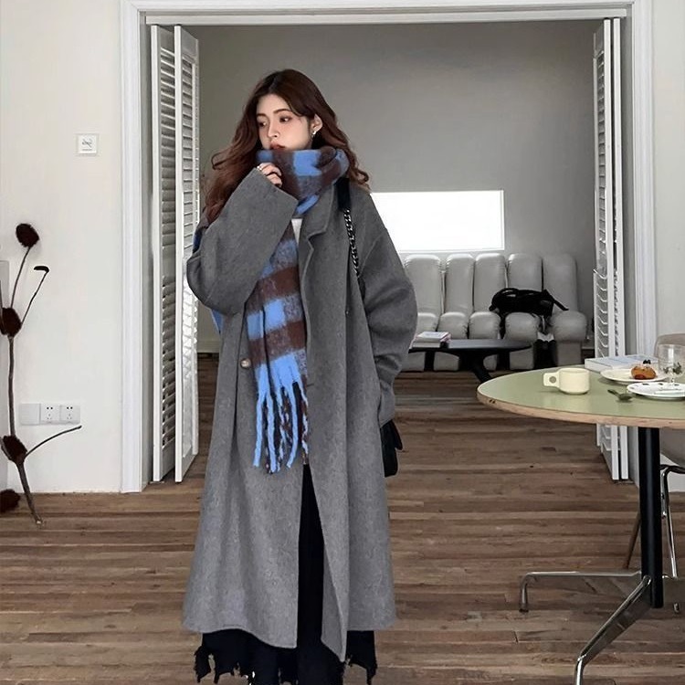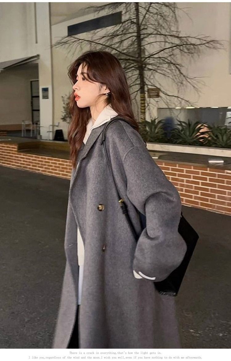 2025灰色白鸭绒羽内胆大衣秋冬季新款中长款加厚保暖羽绒毛呢外套