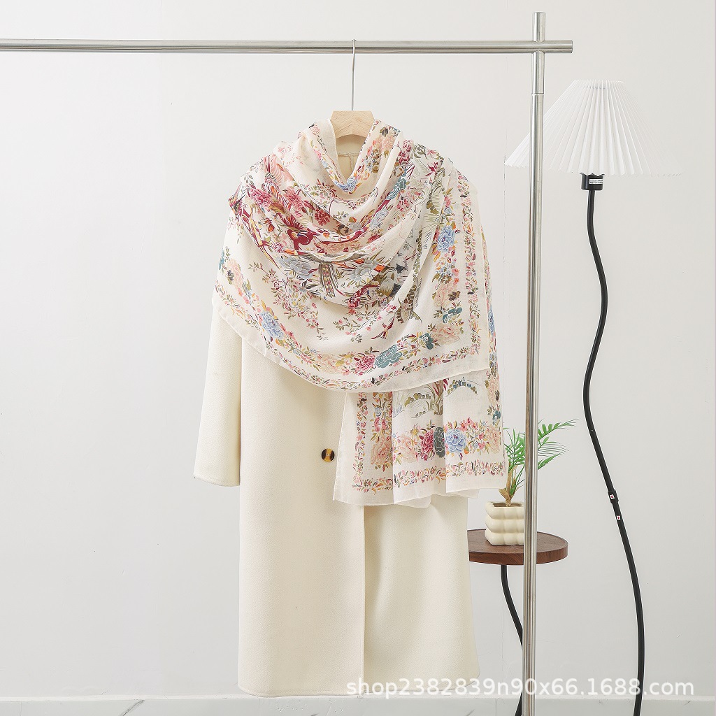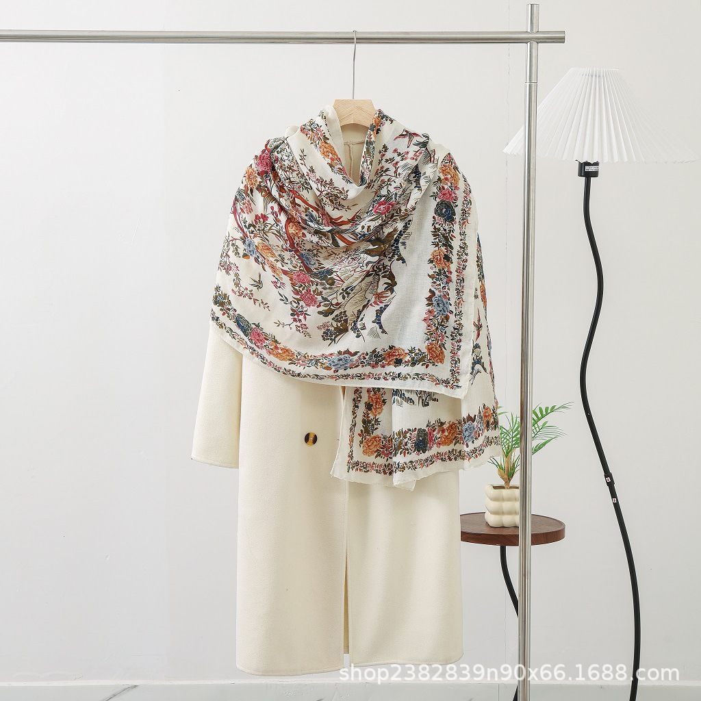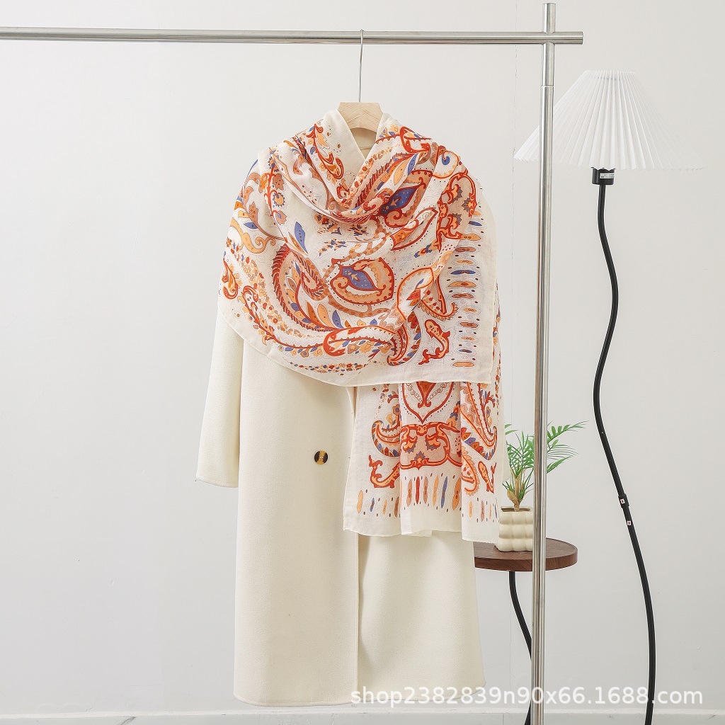 一件代发2025直播韩版印花棉麻围巾欧美经典秋冬保暖围脖外搭披肩
