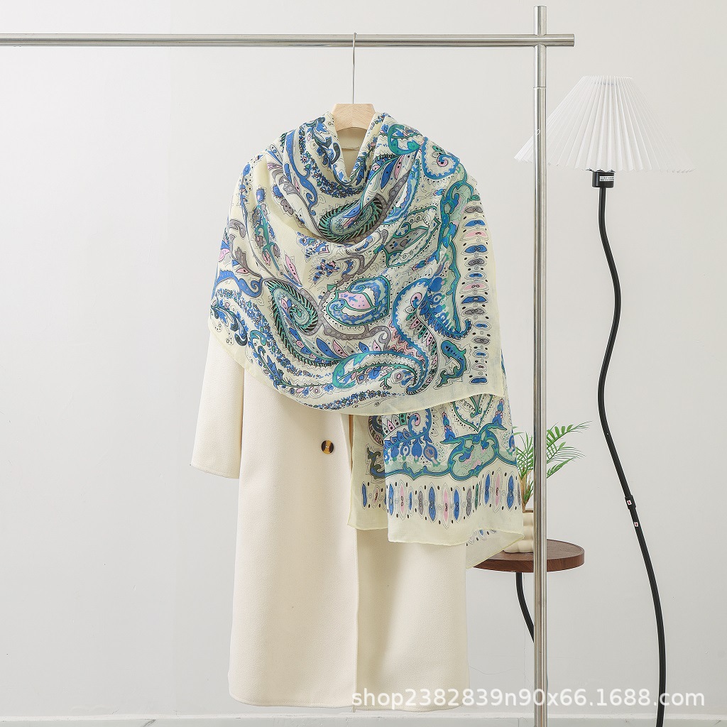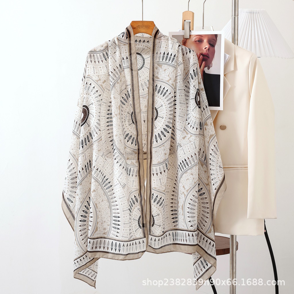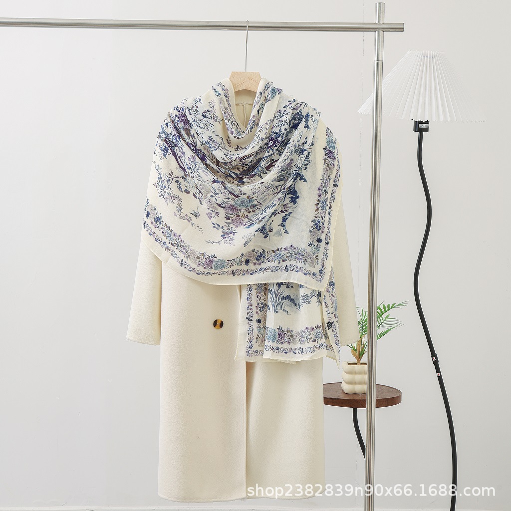 一件代发2025直播韩版印花棉麻围巾欧美经典秋冬保暖围脖外搭披肩