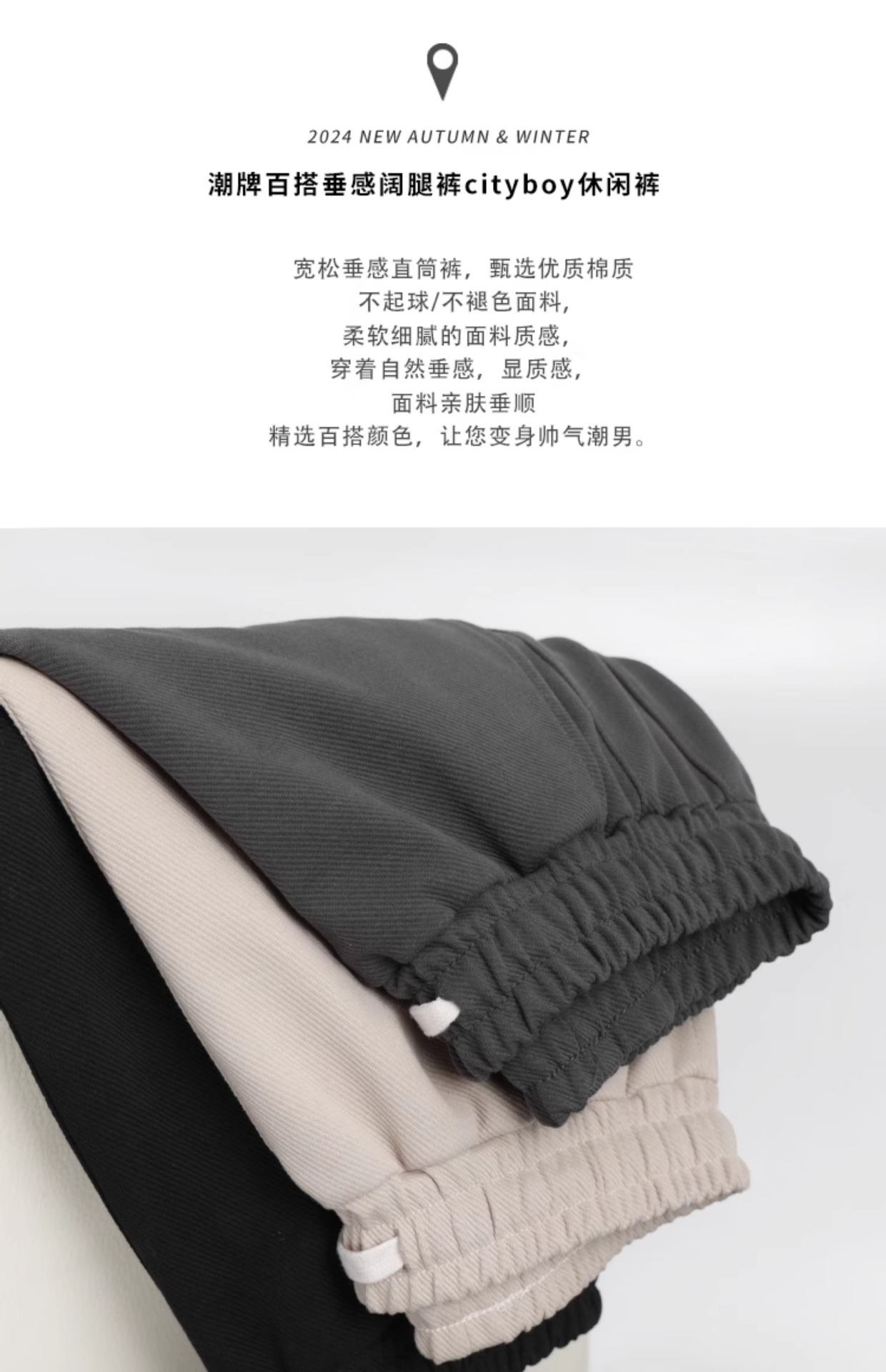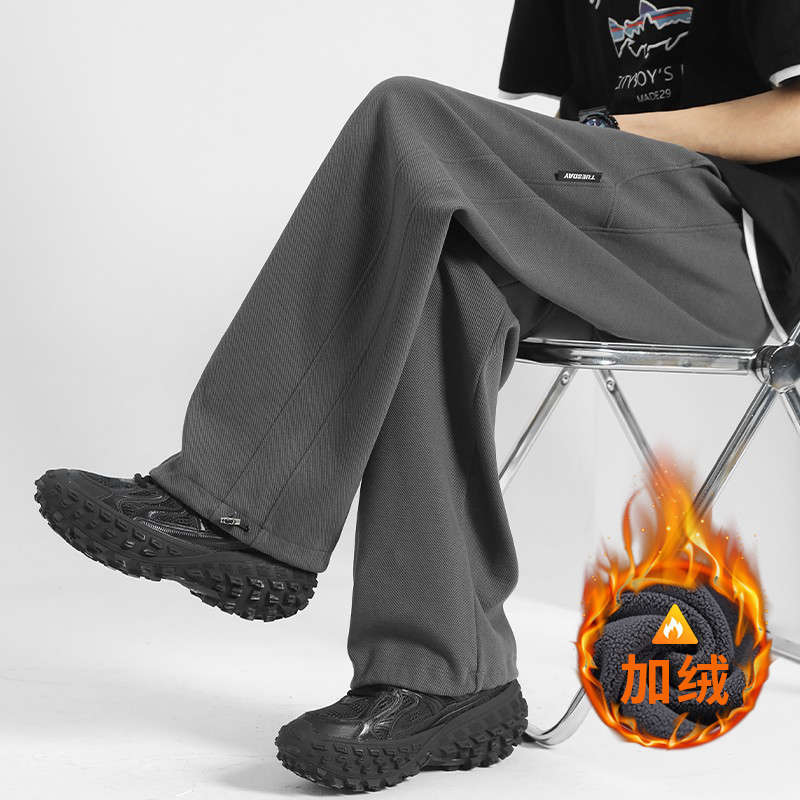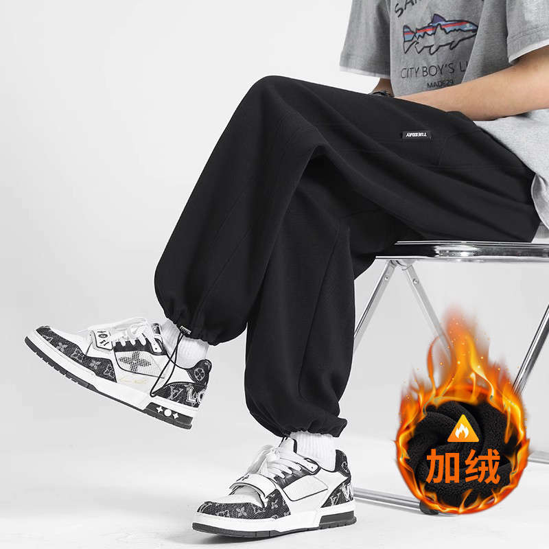 休闲裤男2025新款冬季宽松直筒裤阔腿长裤加绒裤子秋冬卫裤运动裤