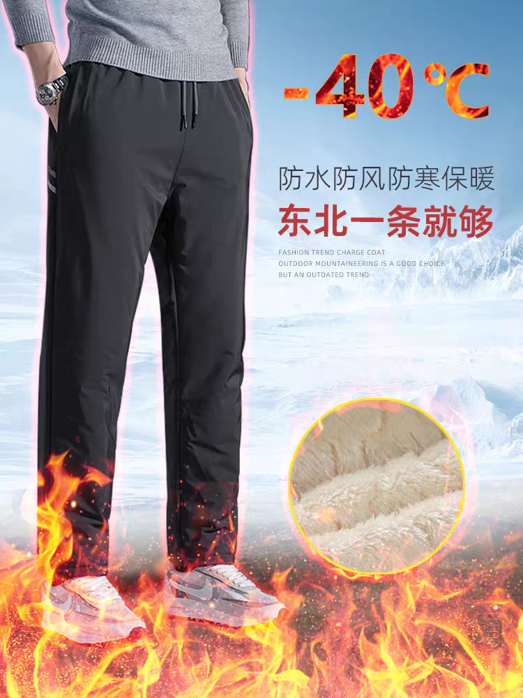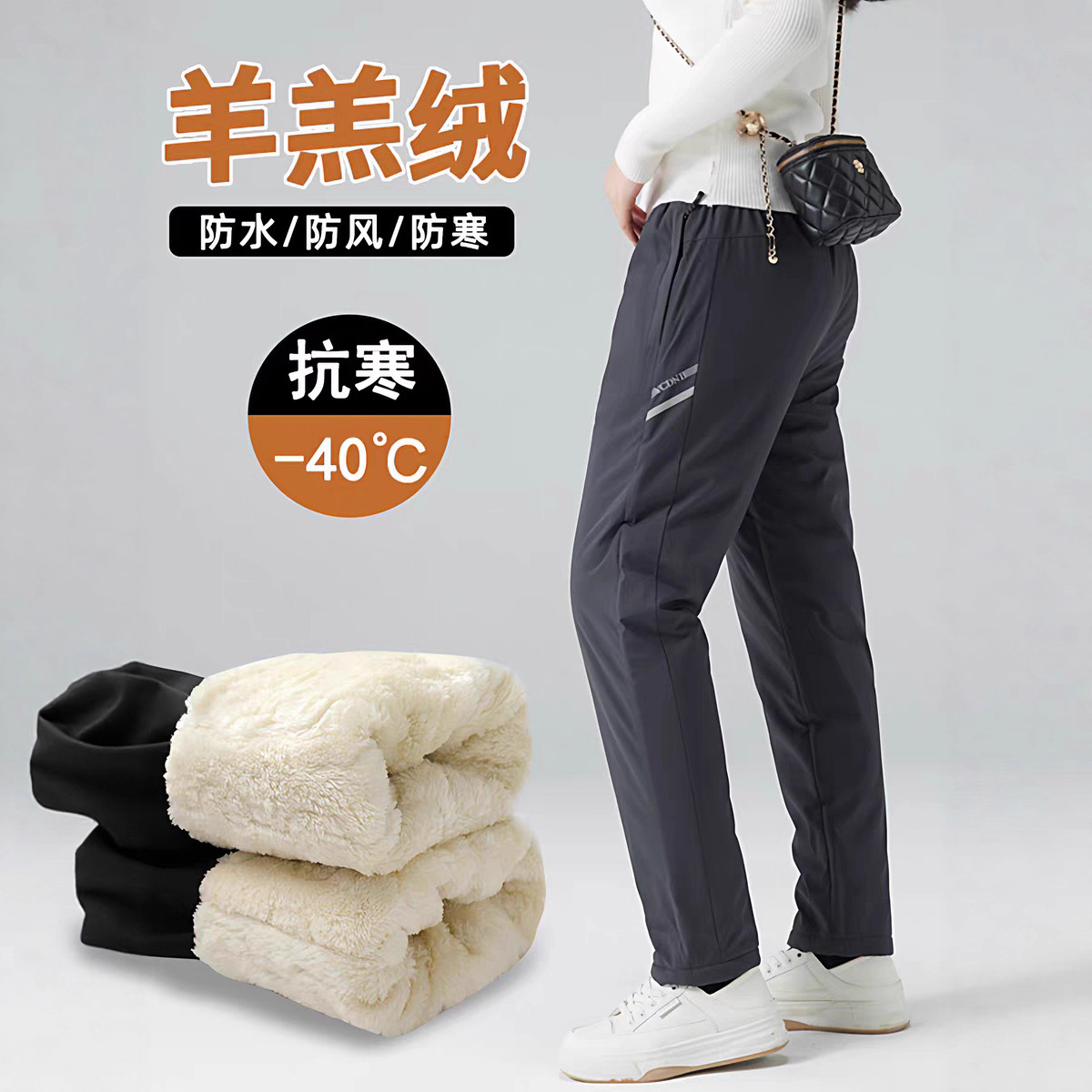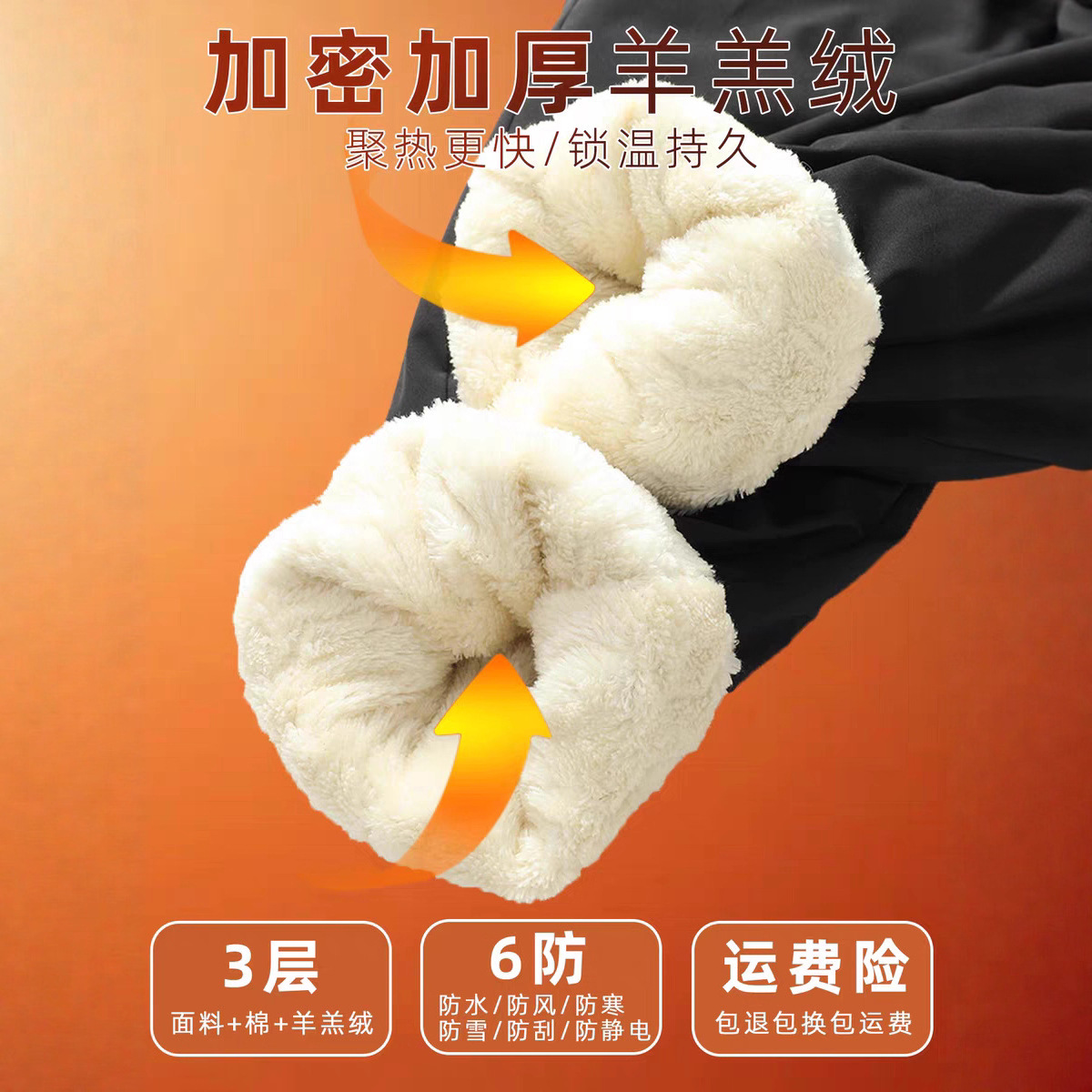 冬季冲锋棉裤男外穿东北宽松直筒羊羔绒加绒加厚保暖大码休闲长裤