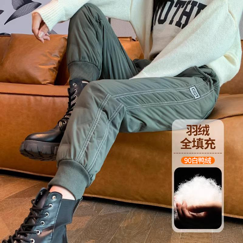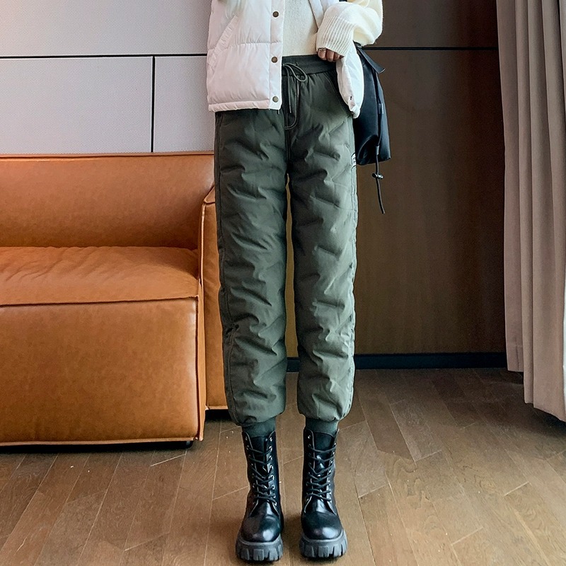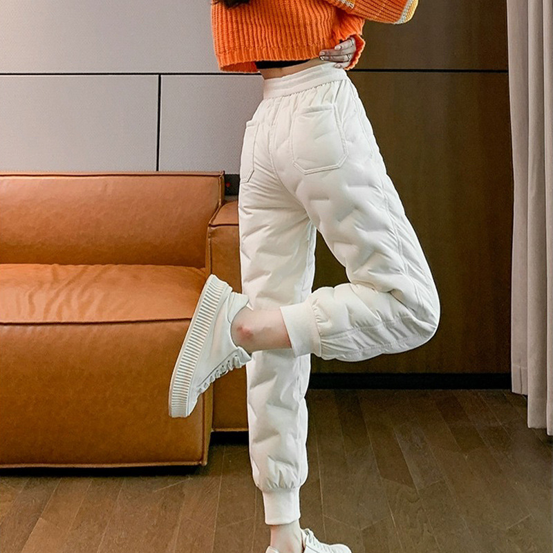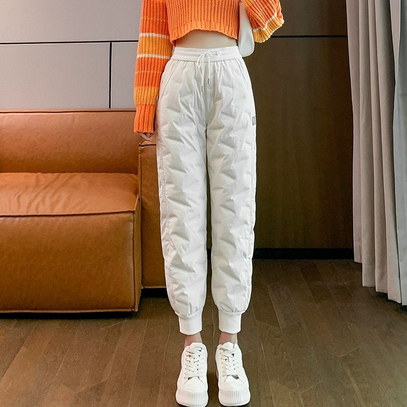 白色羽绒裤女外穿冬季2025冬新品高腰显瘦厚款防寒束脚羽绒裤E274