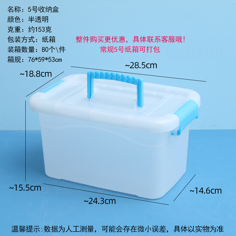源头工厂PP食品级透明有盖塑料盒收纳箱玩具整理手提箱桌面收纳盒