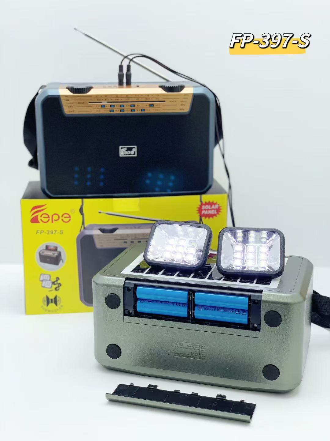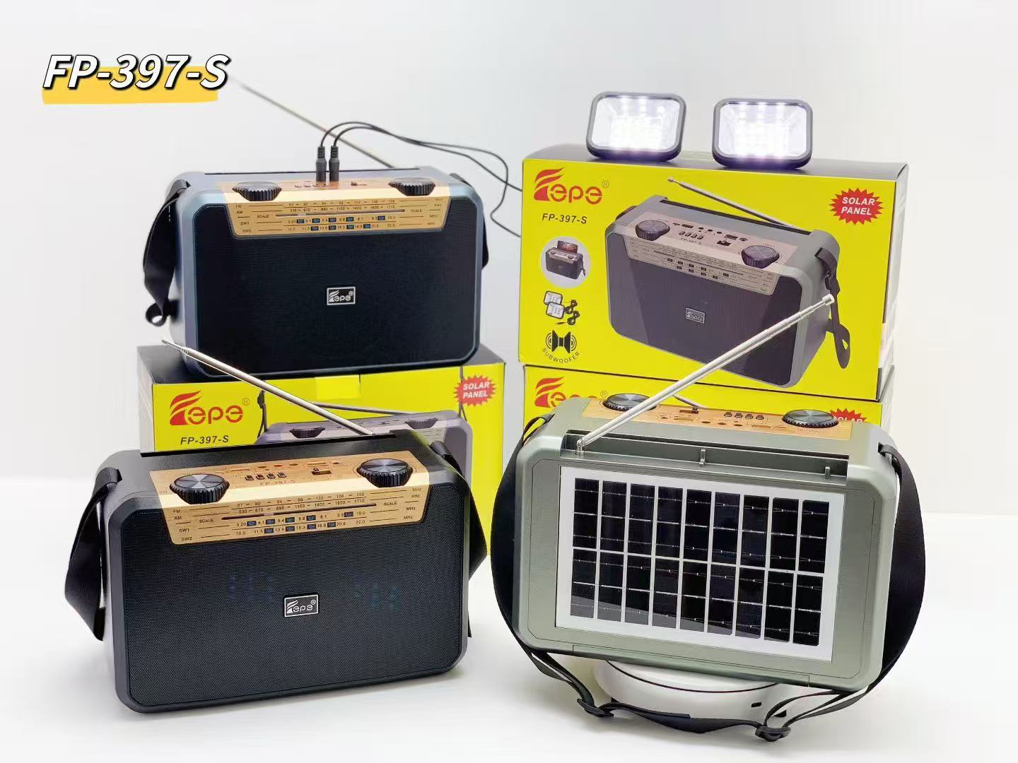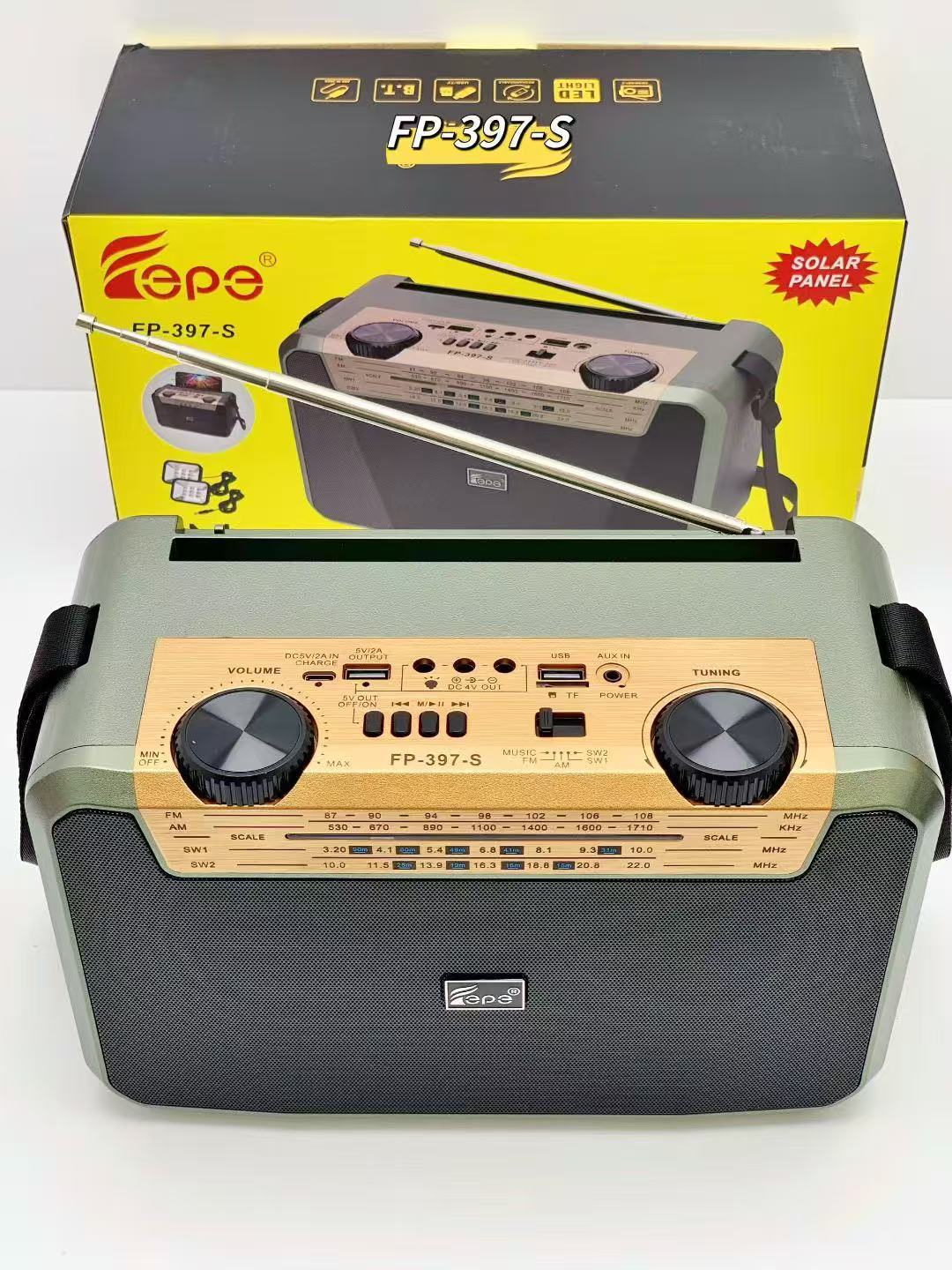 FP-397-S 跨境无线太阳能蓝牙音响户外双应急LED灯多波段收音音箱