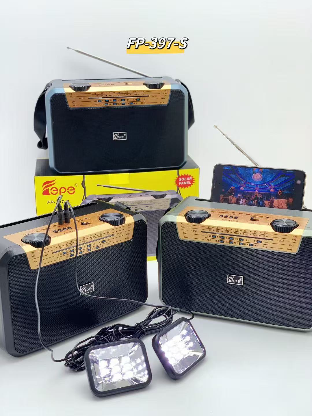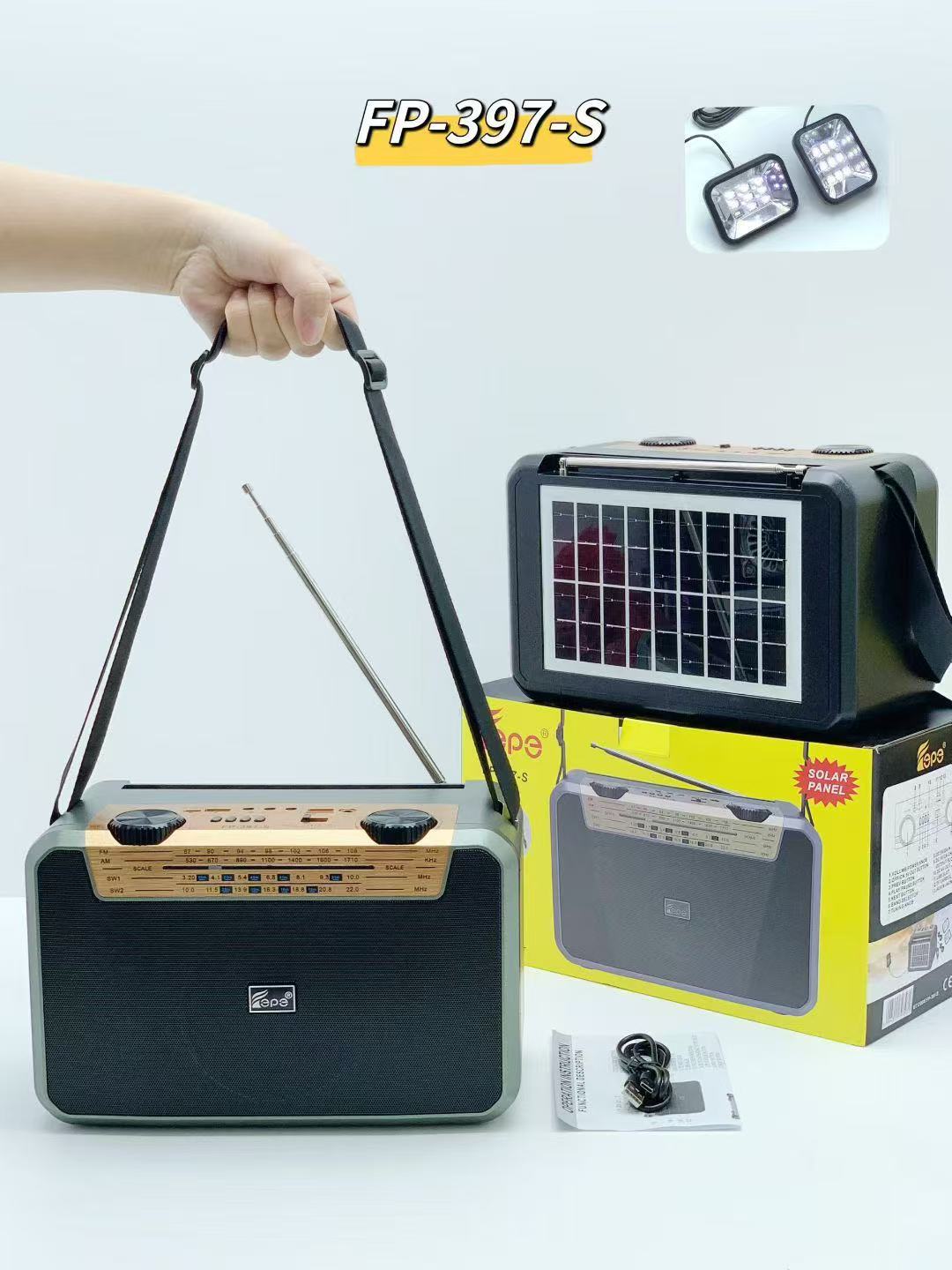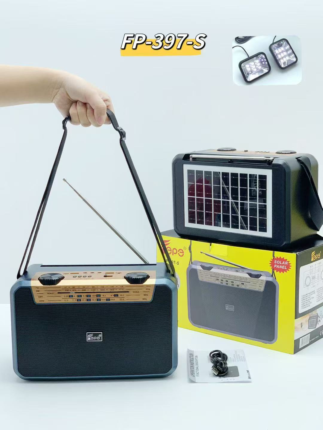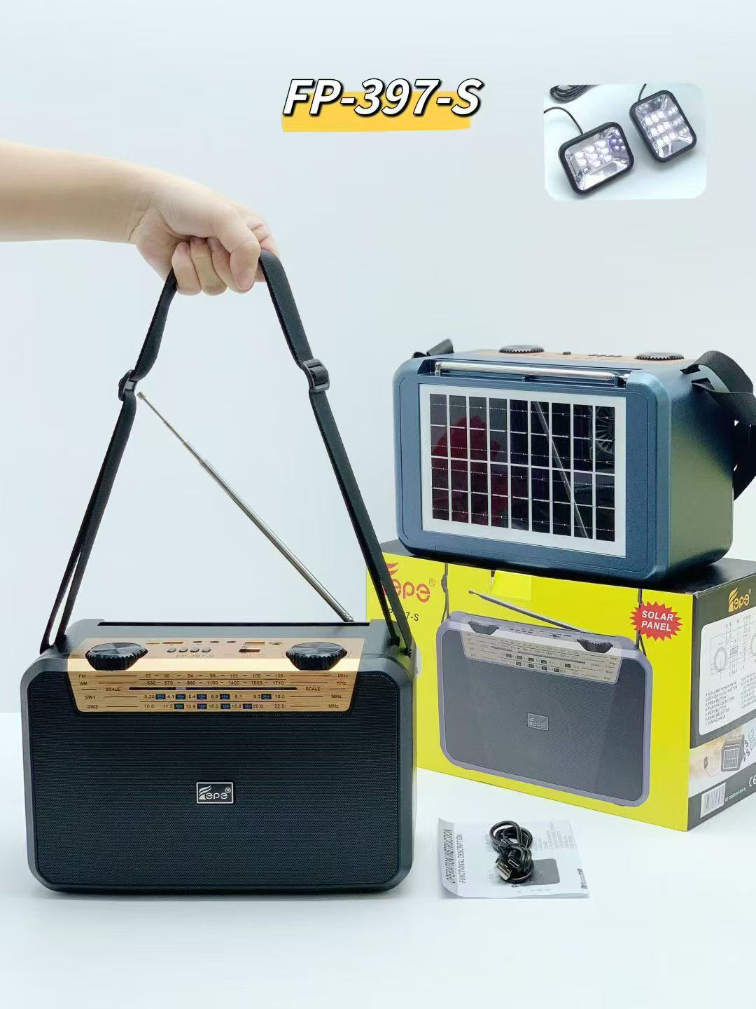 FP-397-S 跨境无线太阳能蓝牙音响户外双应急LED灯多波段收音音箱