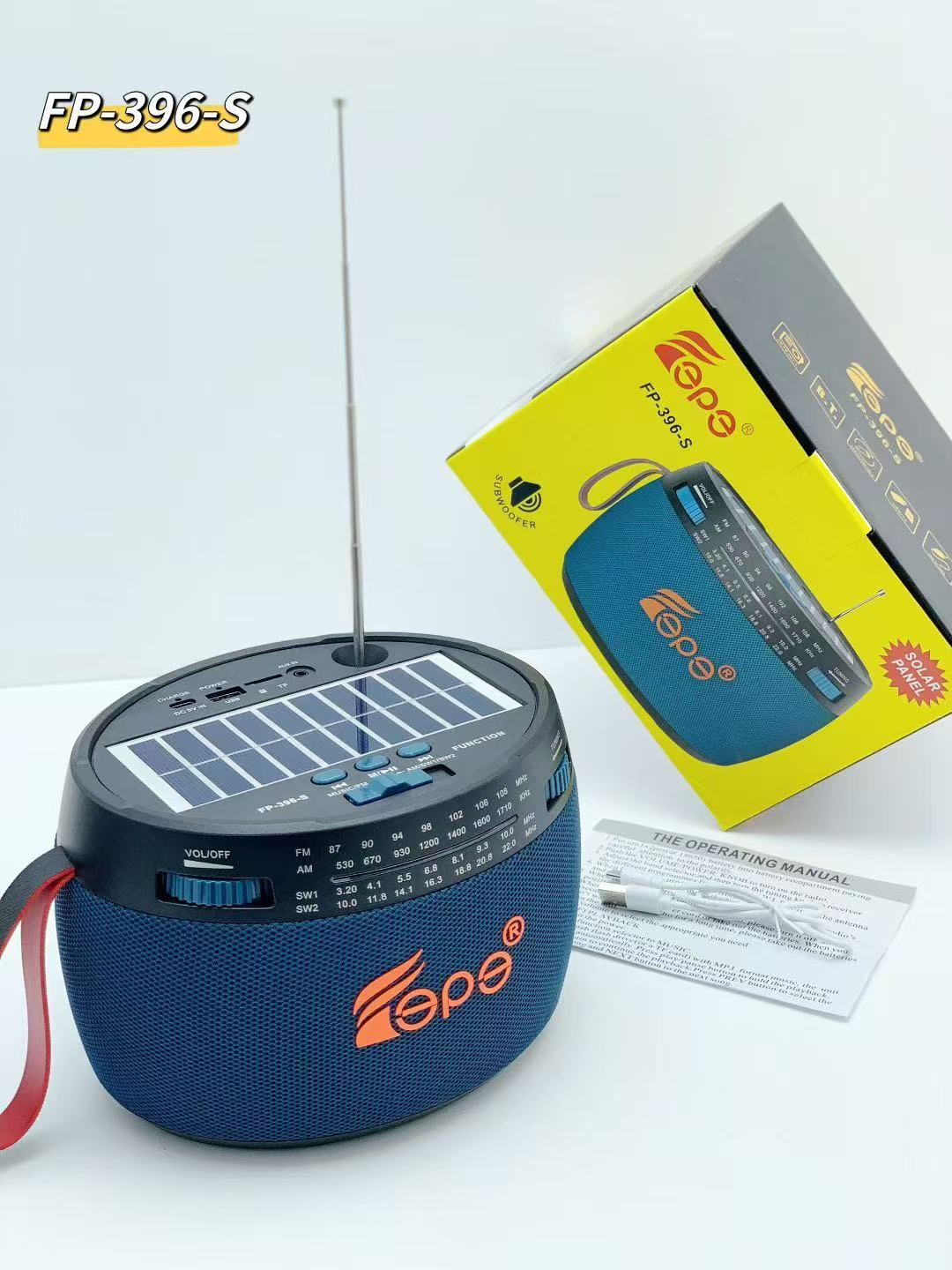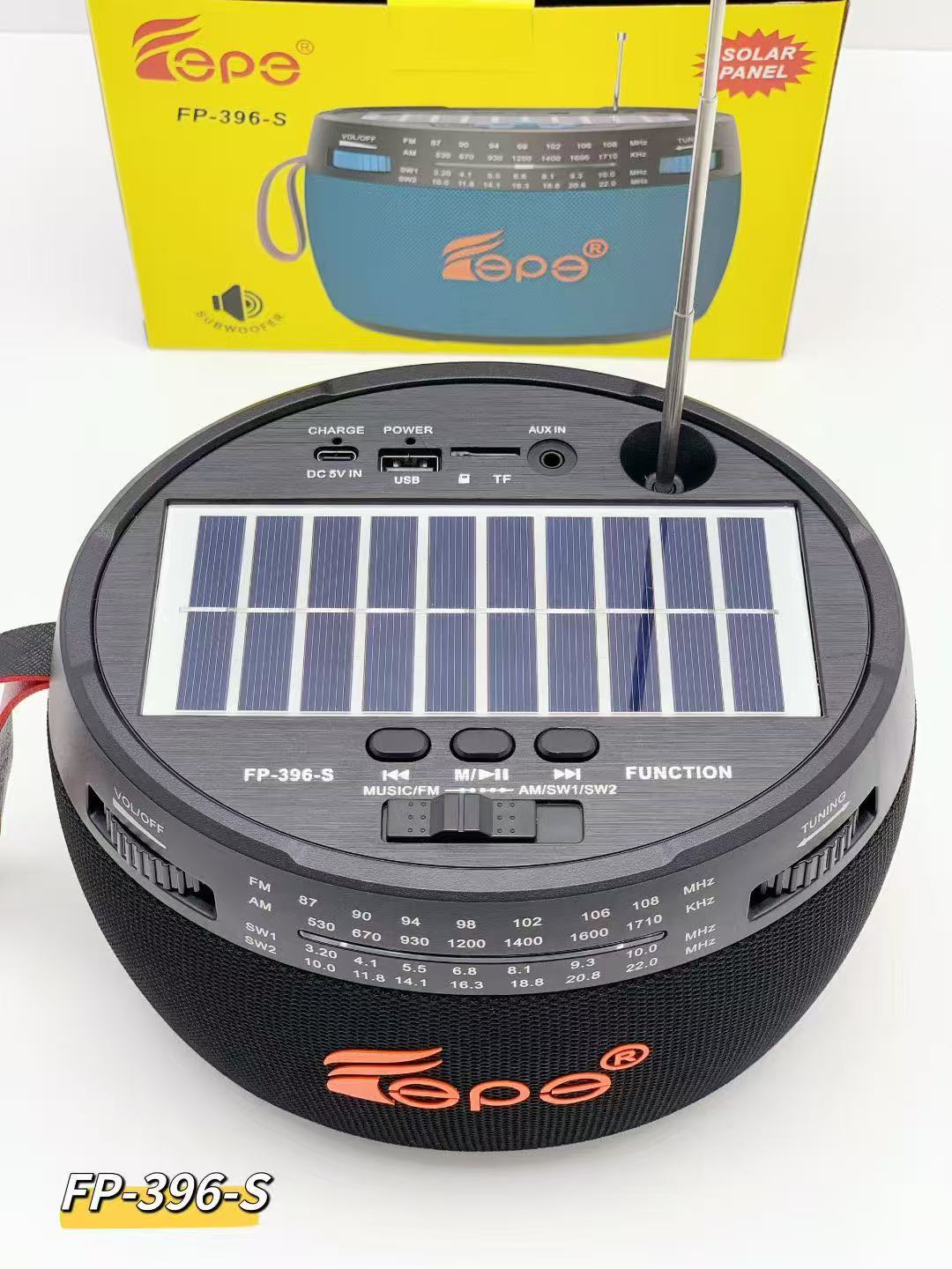 FP-396-S跨境无线太阳能充电蓝牙音响户外便携多波段收音机低音炮