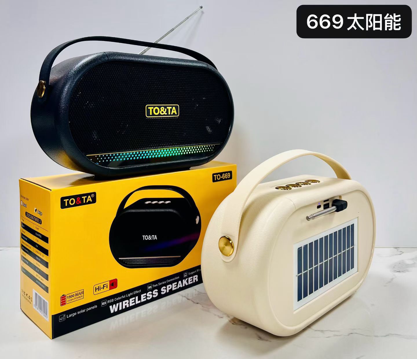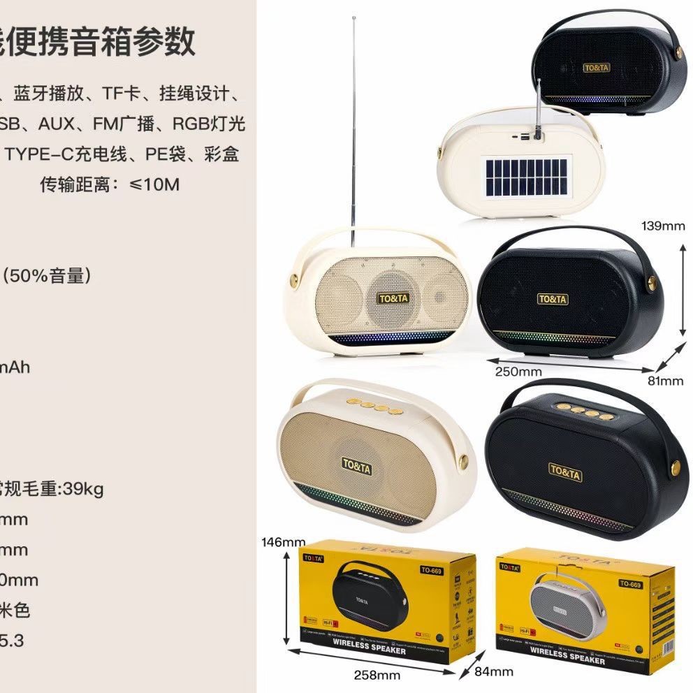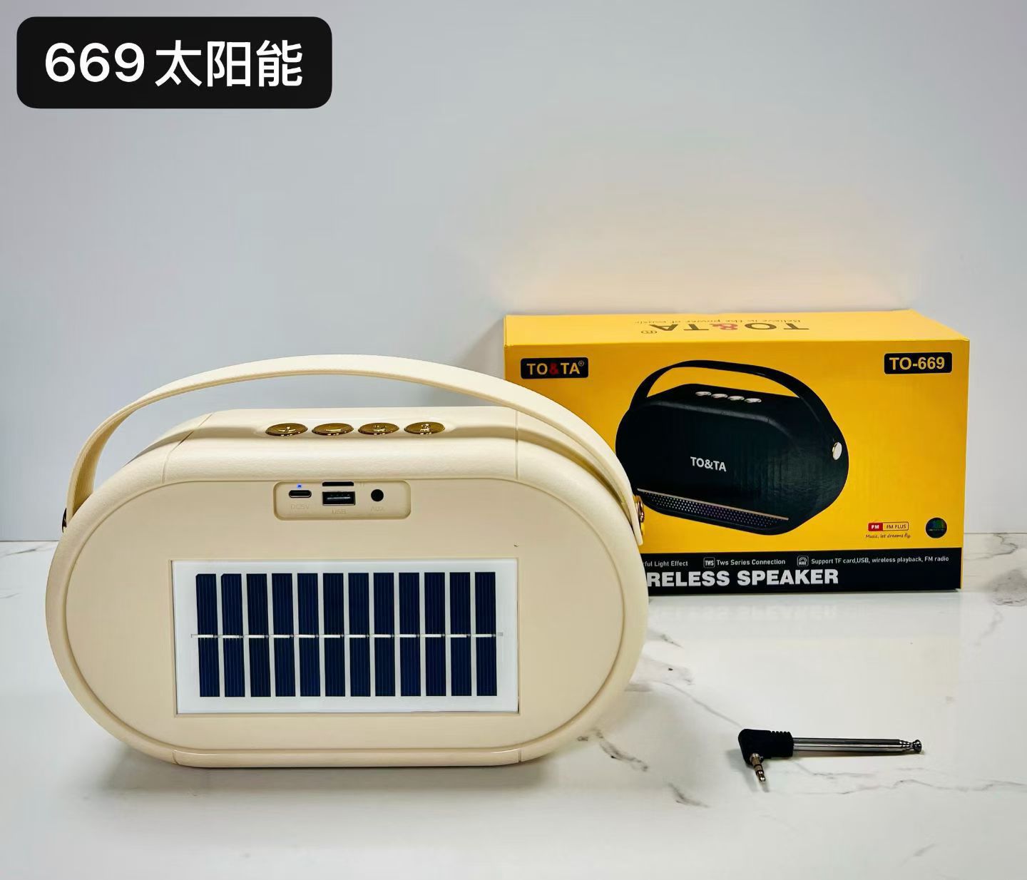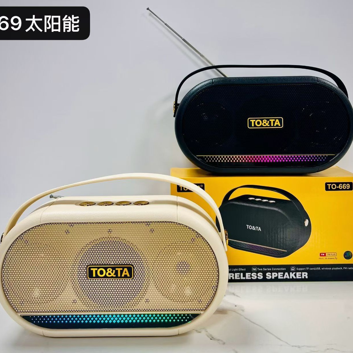 TO-669跨境太阳能无线蓝牙音响便携户外家用手提收音机低音炮音箱