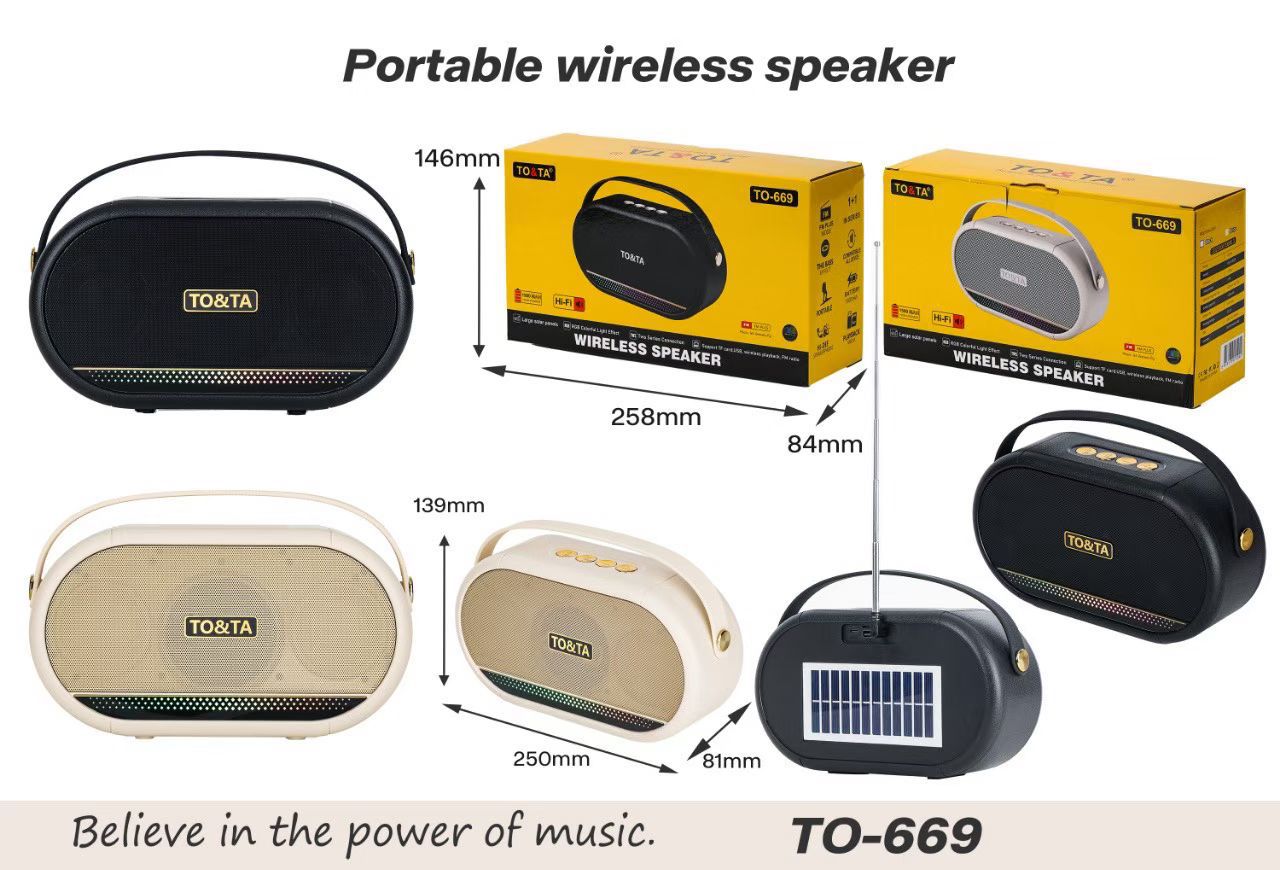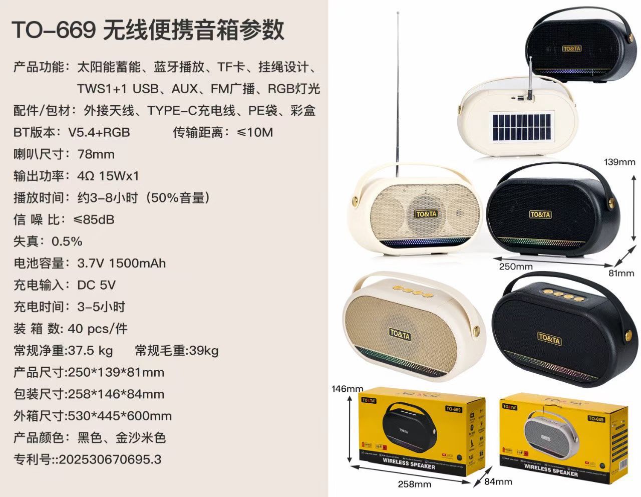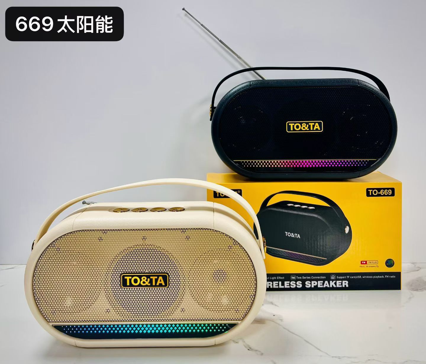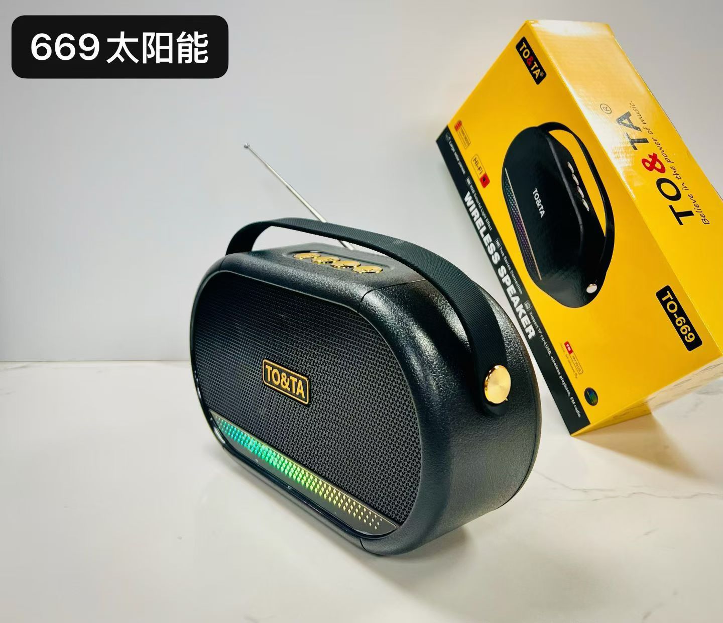 TO-669跨境太阳能无线蓝牙音响便携户外家用手提收音机低音炮音箱