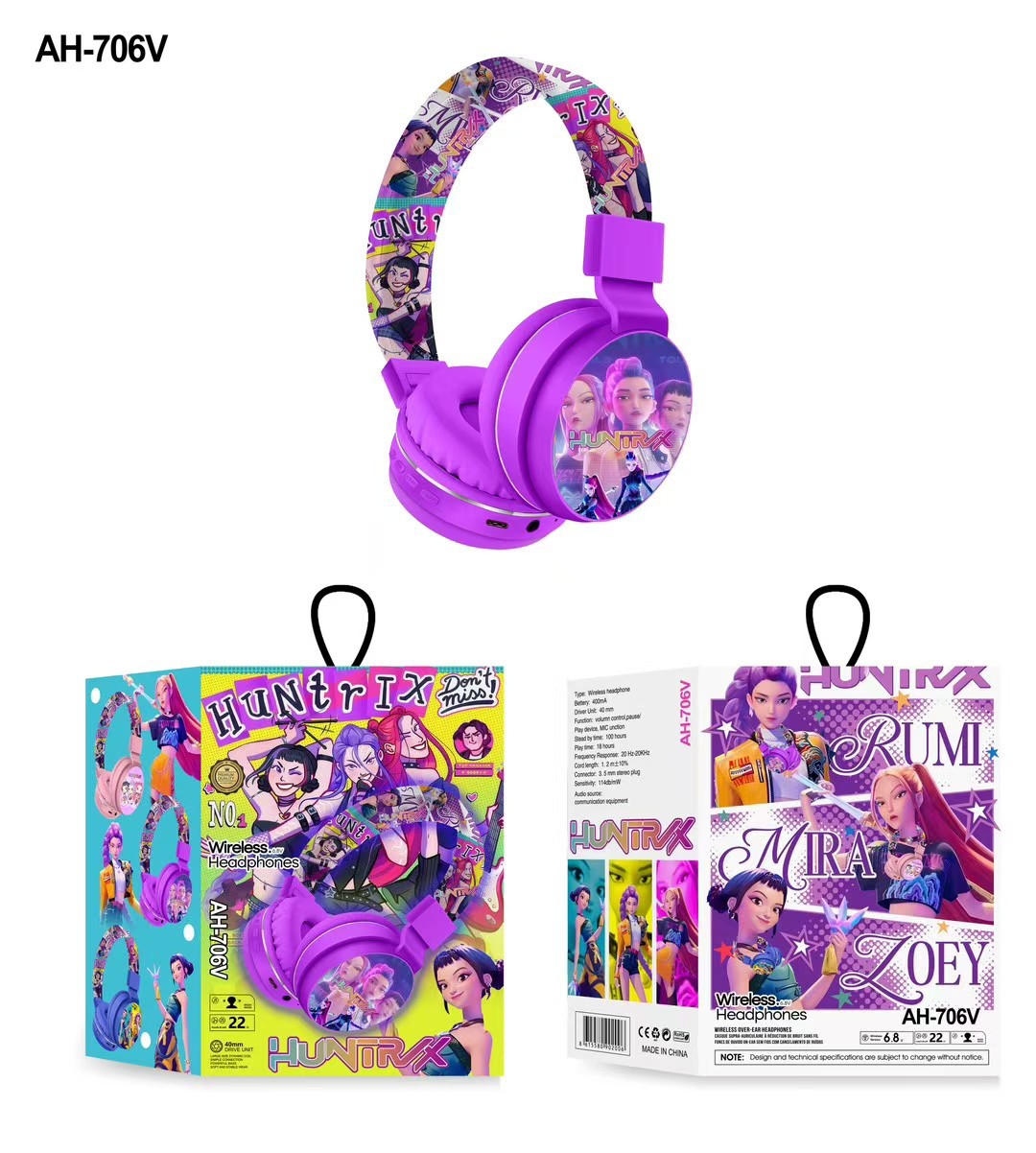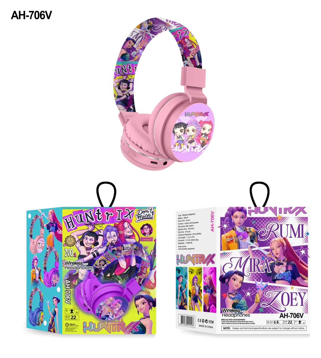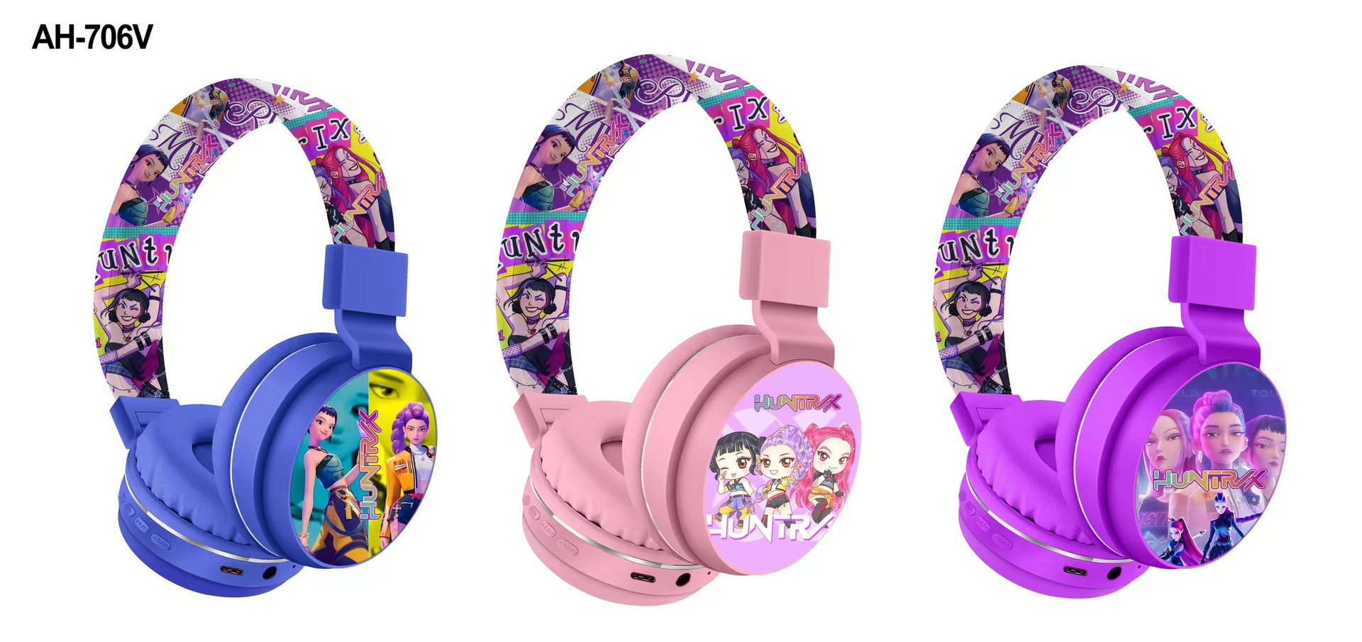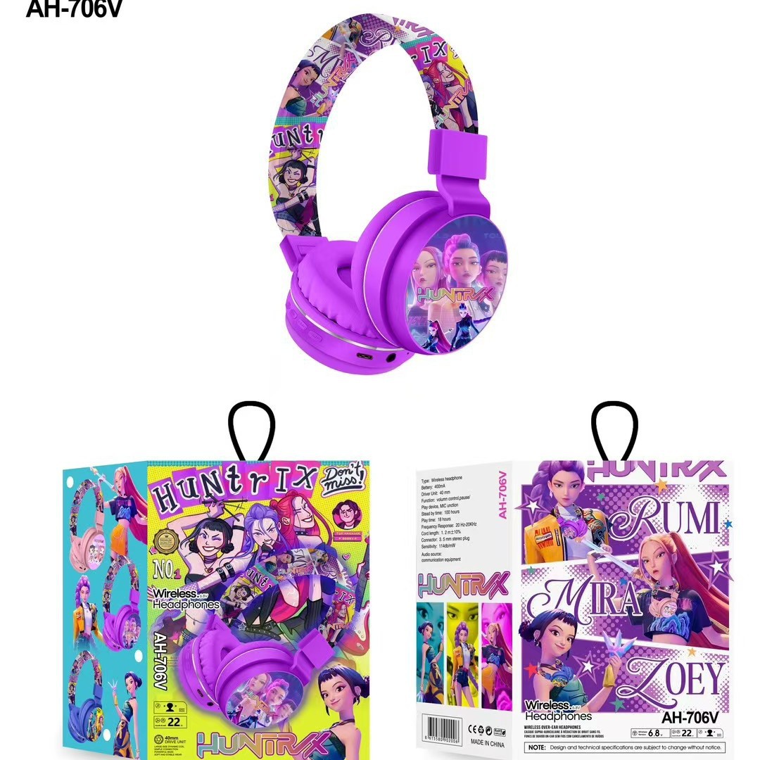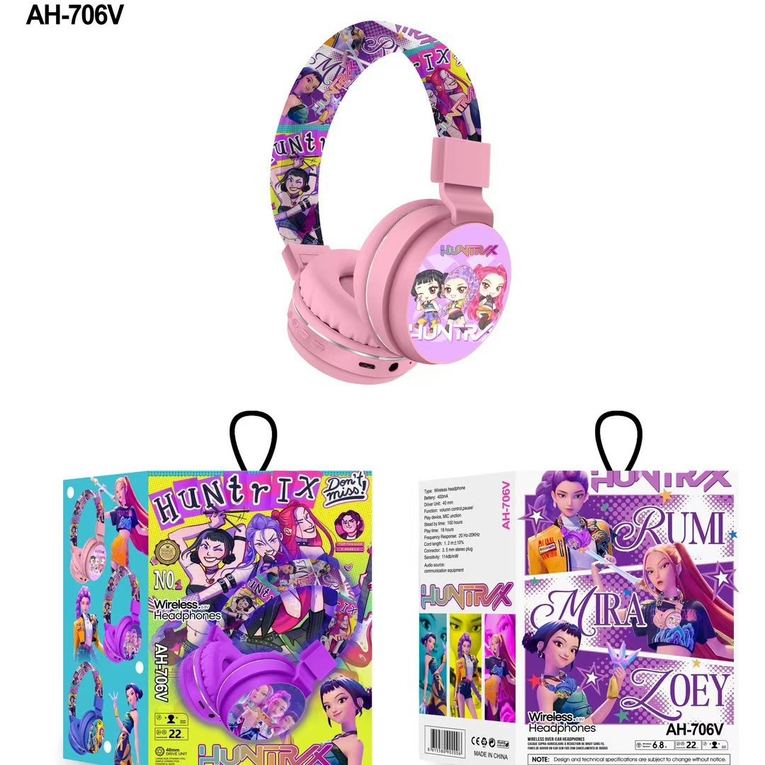 AH-706V 跨境新品猎魔女团卡通耳机可爱儿童头戴式立体声蓝牙耳机