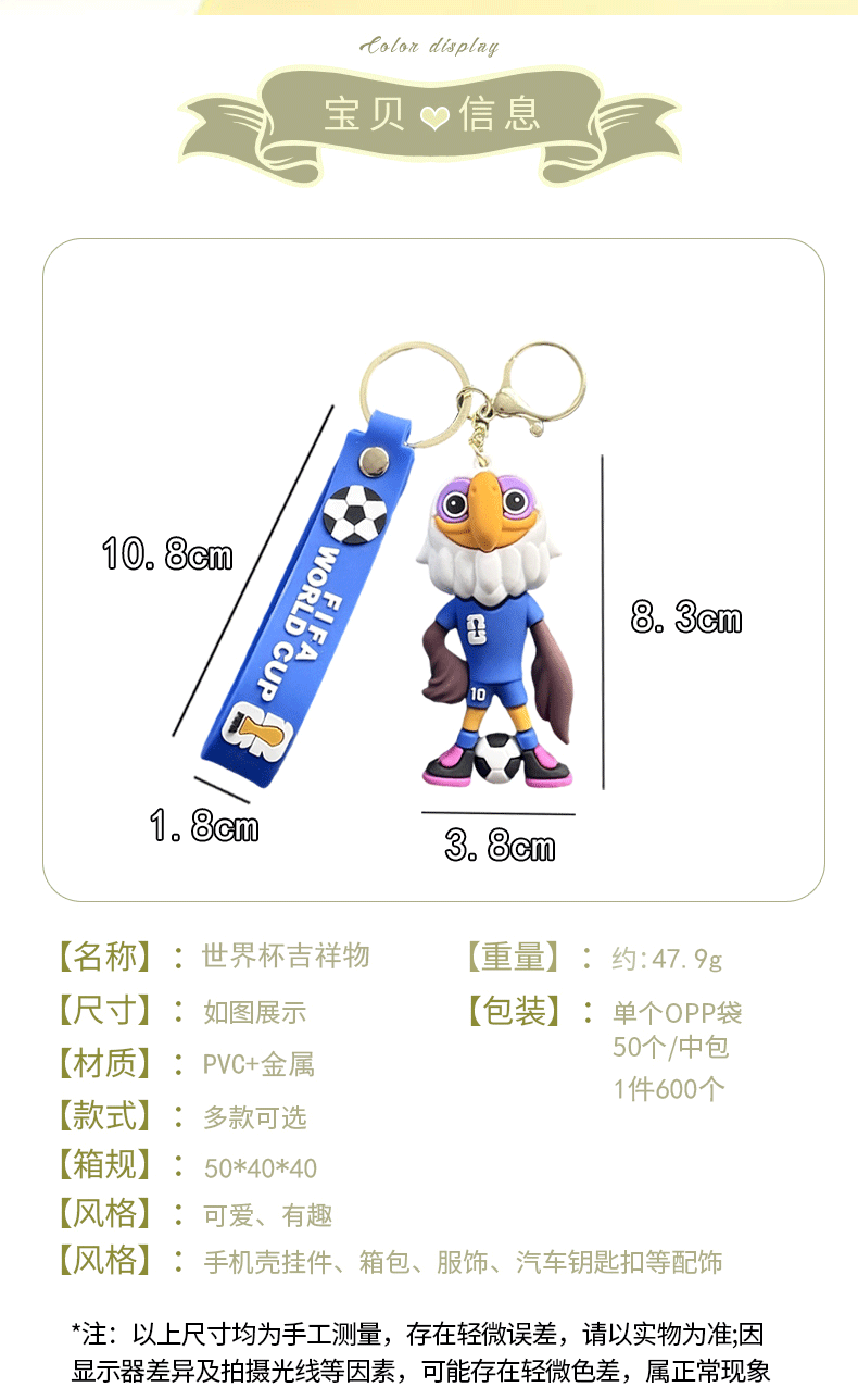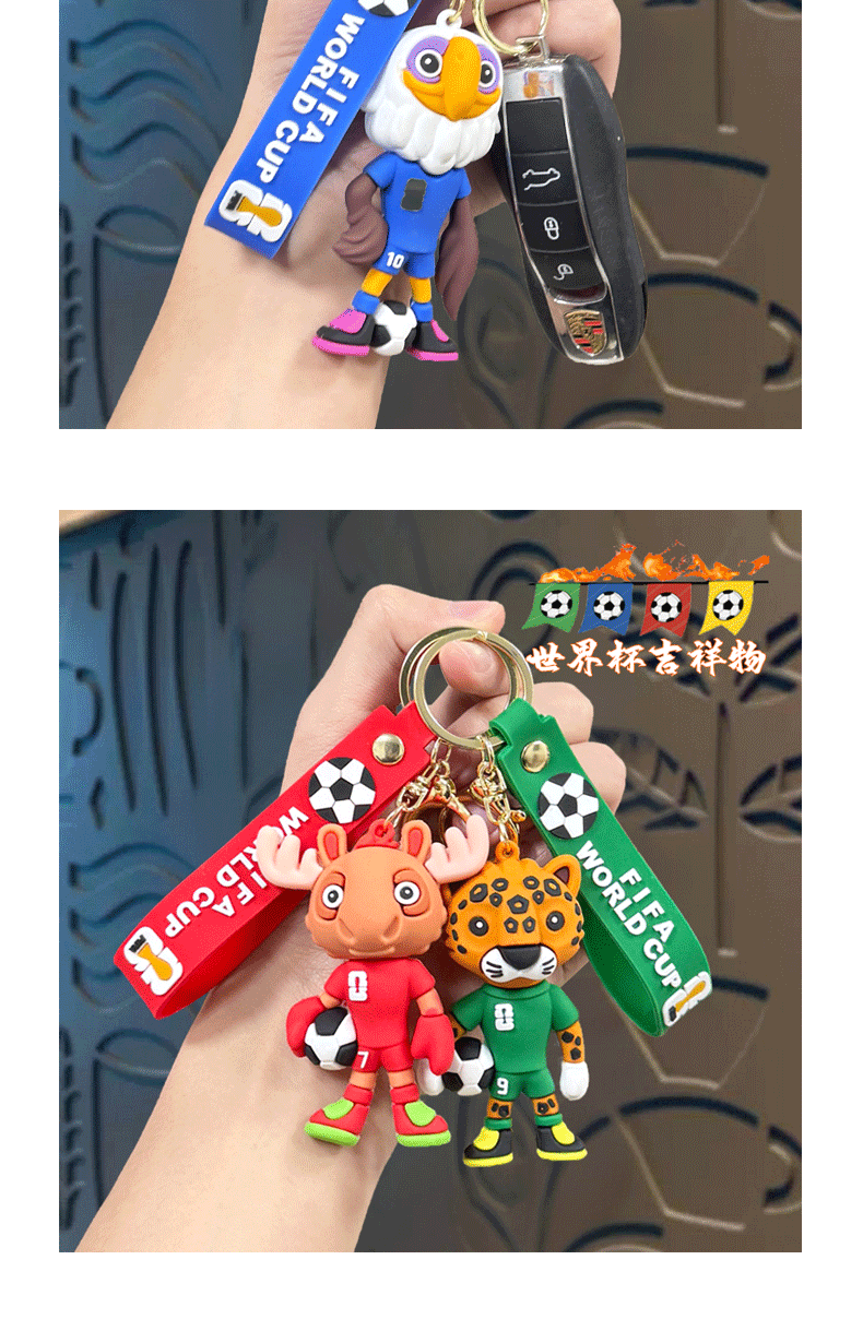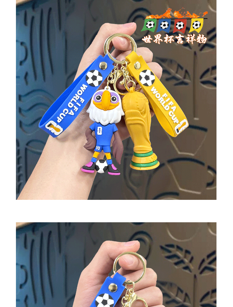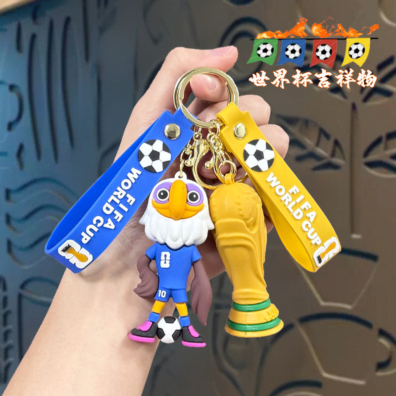 2026美加墨世界杯钥匙扣周边吉祥物创意足球奖杯挂件车钥匙小礼品