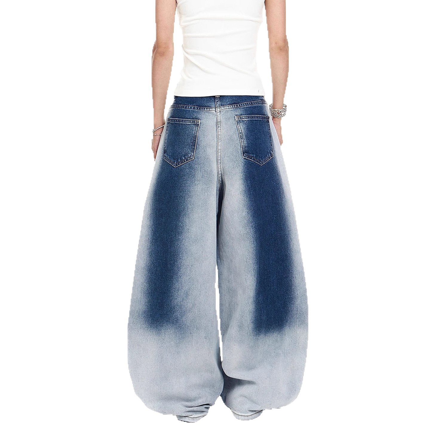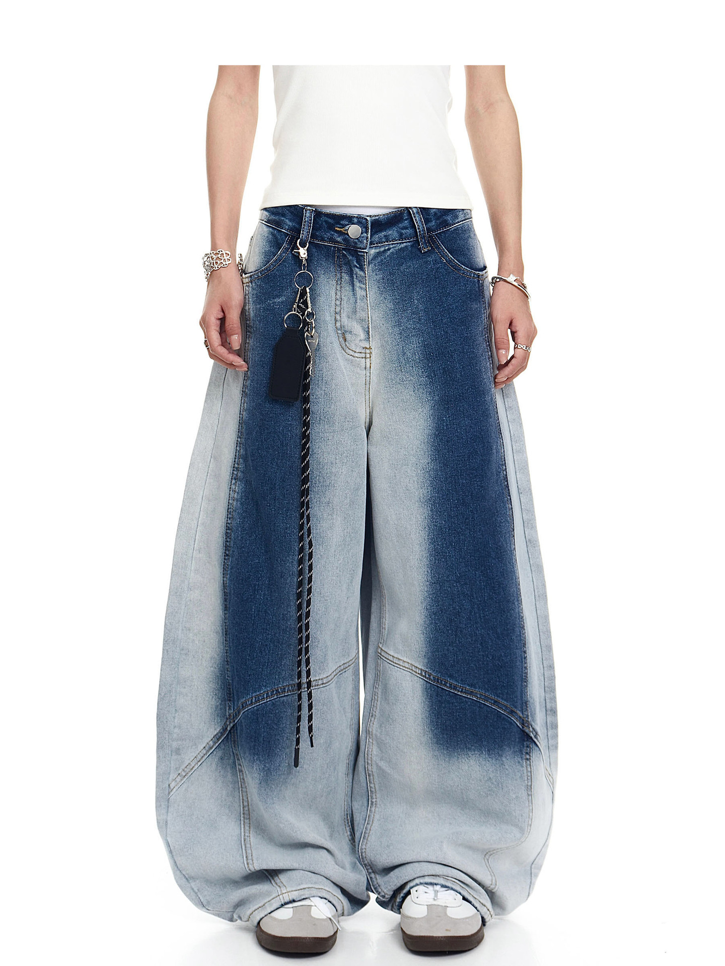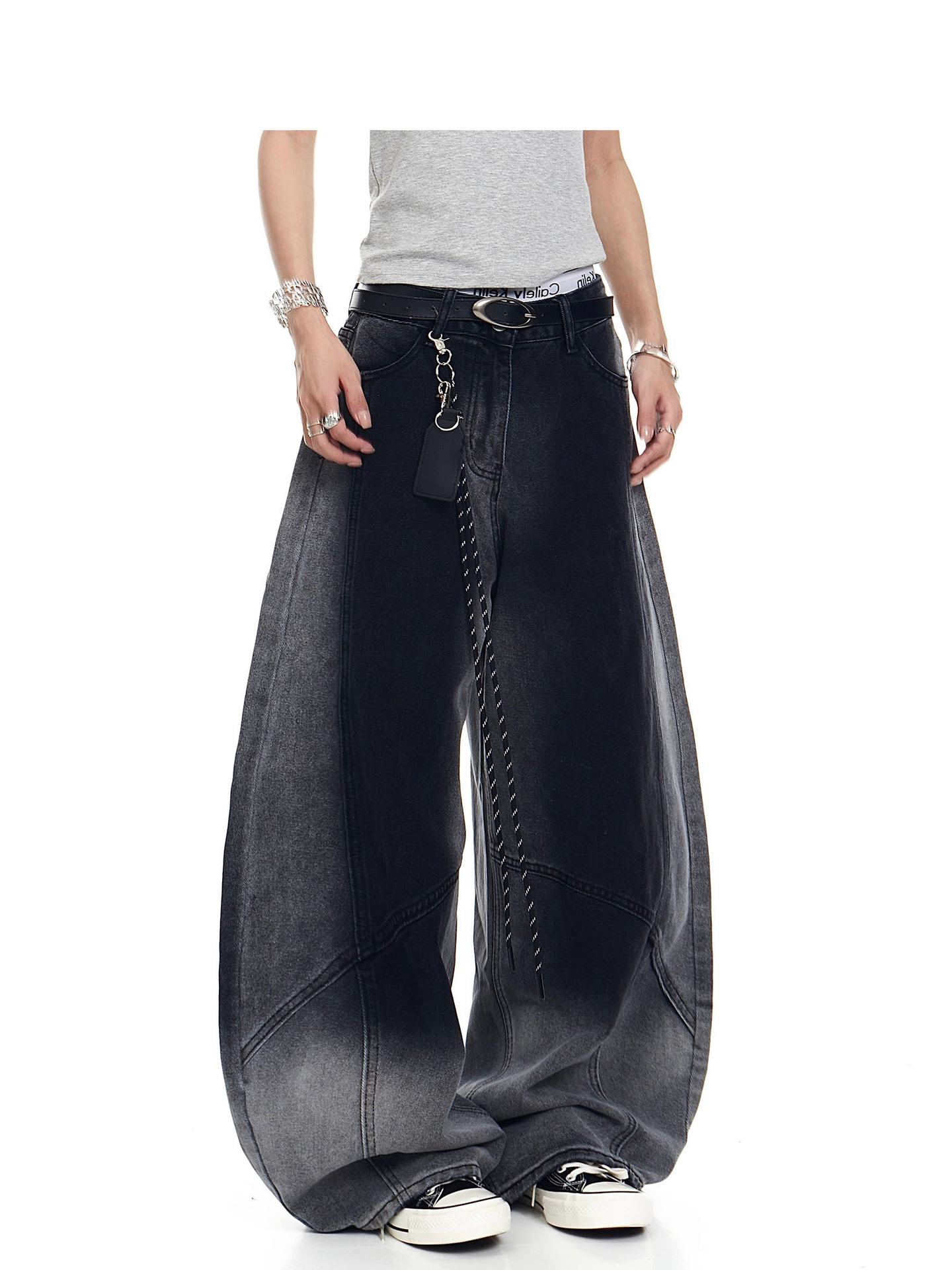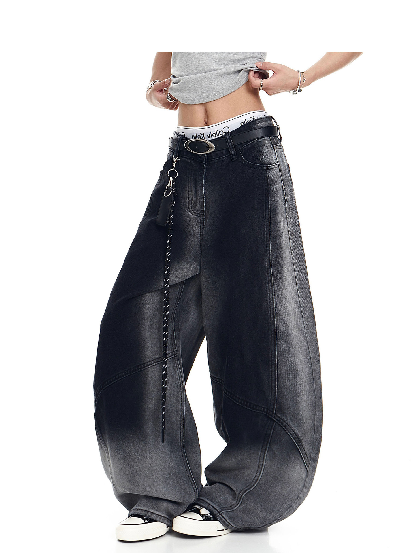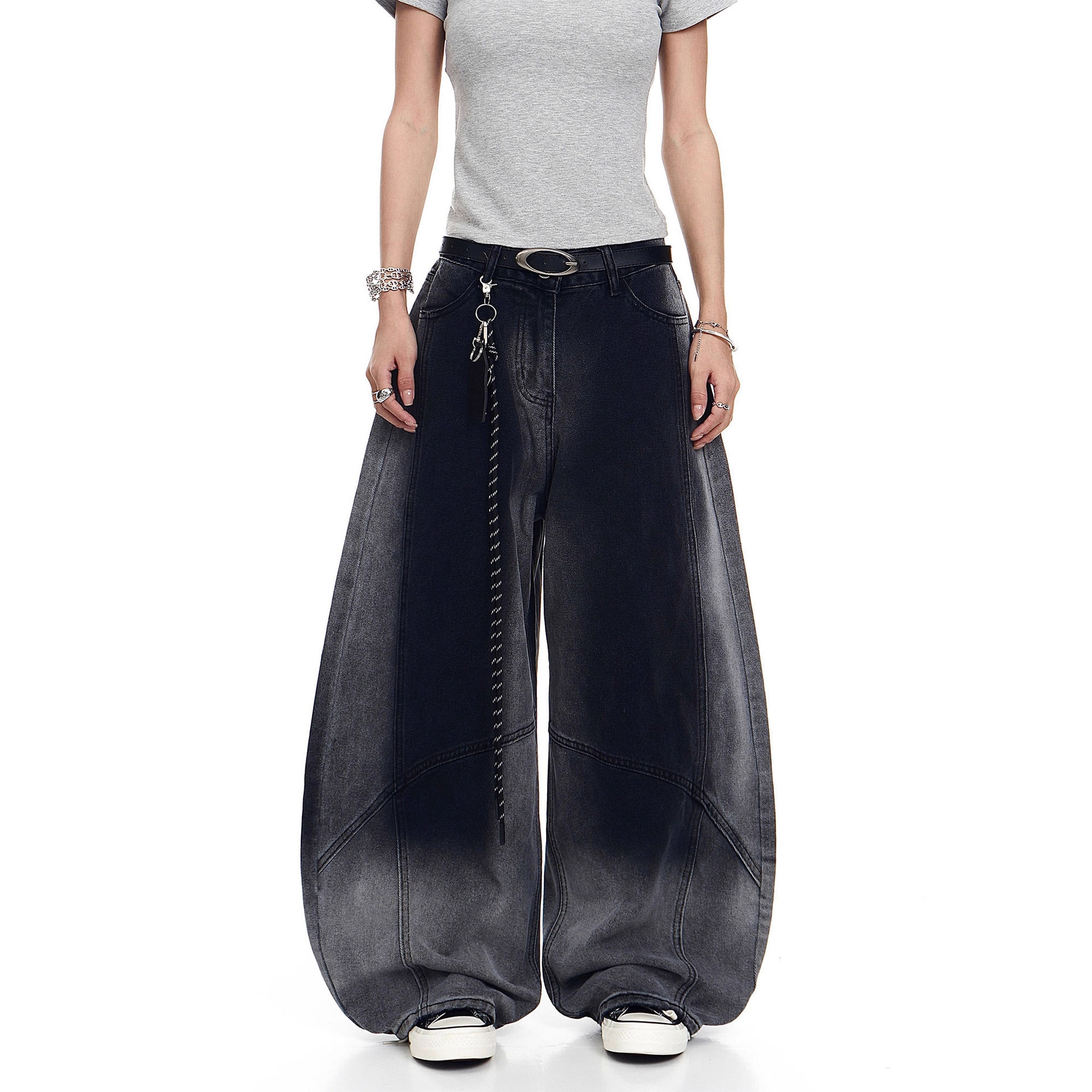 美式复古水洗渐变弯刀牛仔裤男女高街潮牌痞帅慵懒宽松休闲阔腿裤