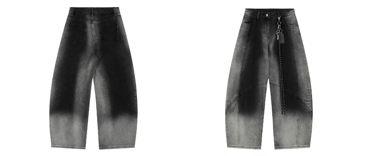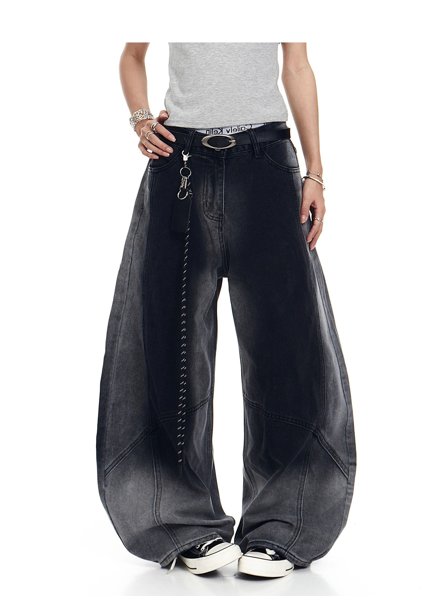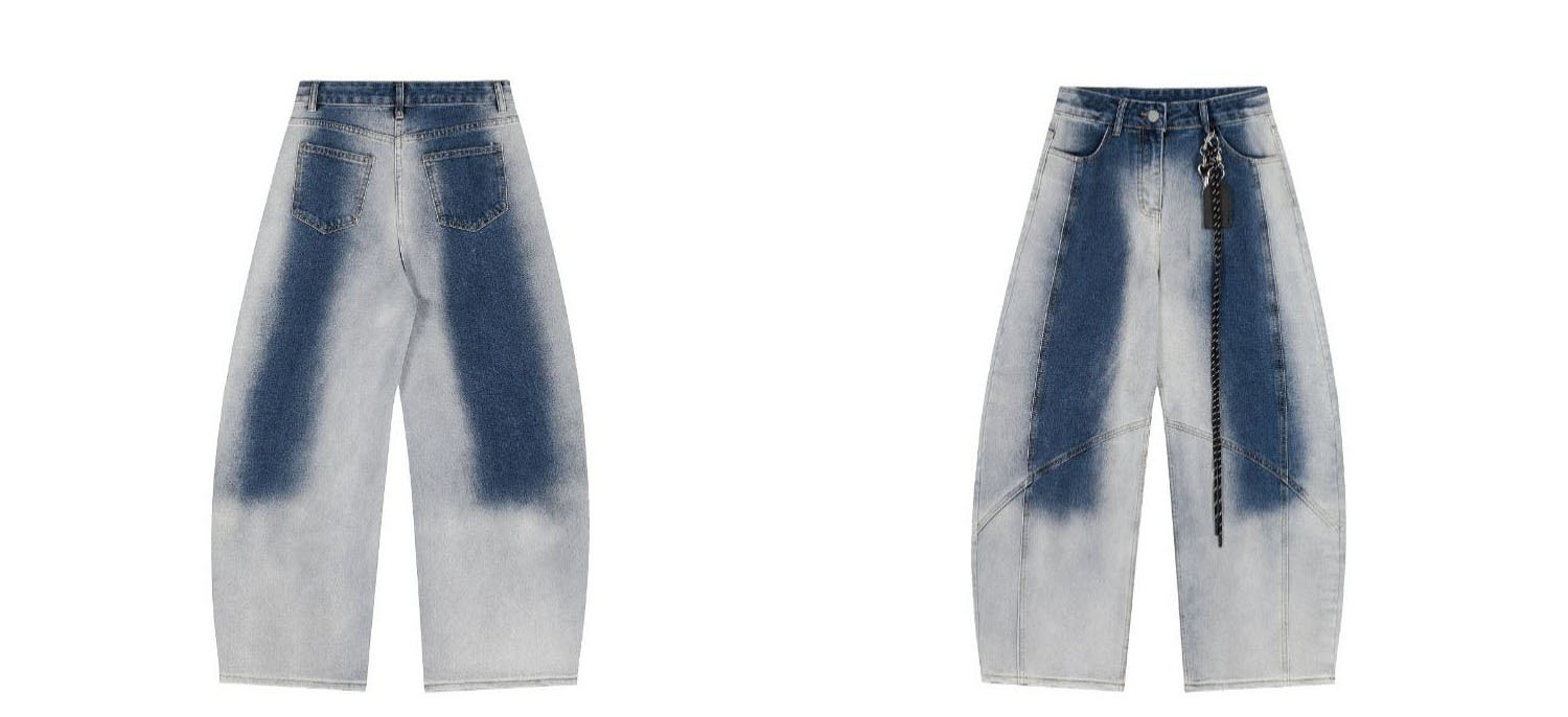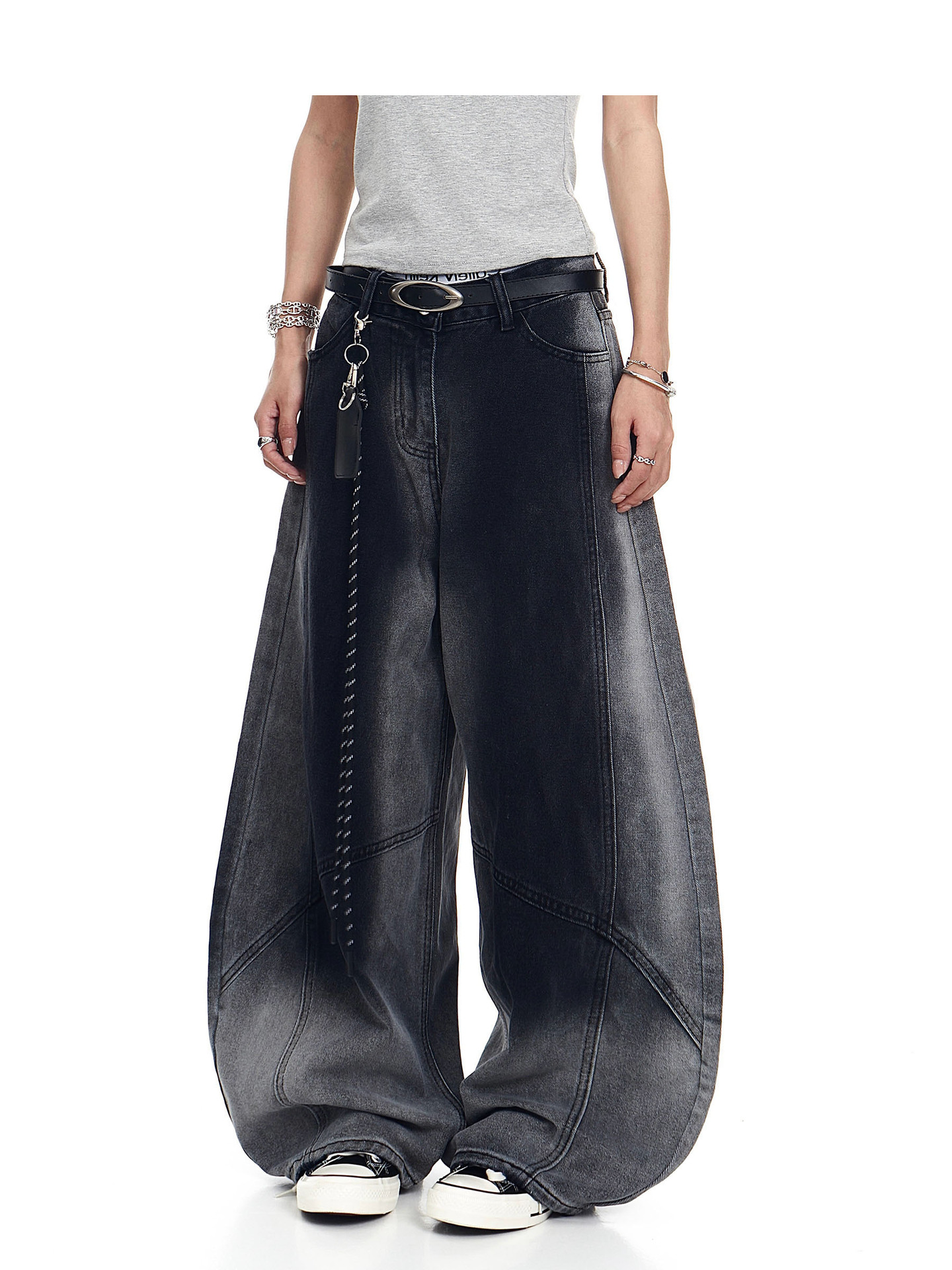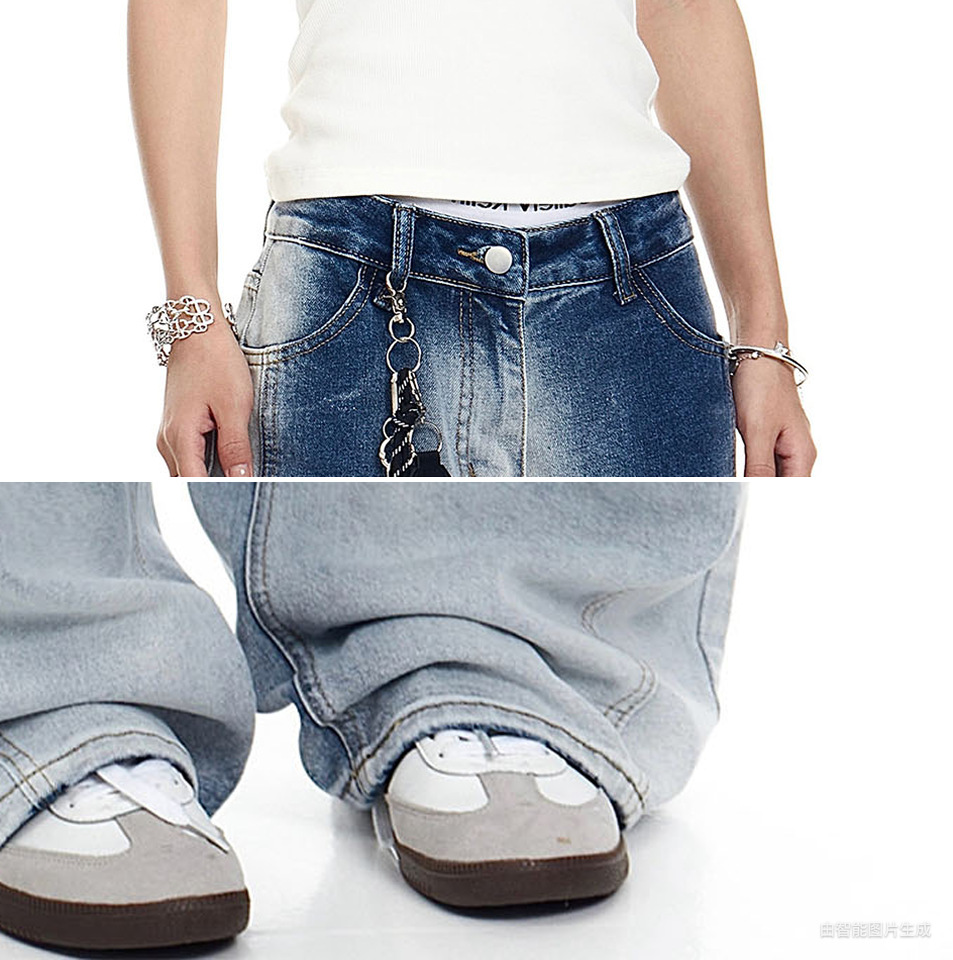 美式复古水洗渐变弯刀牛仔裤男女高街潮牌痞帅慵懒宽松休闲阔腿裤