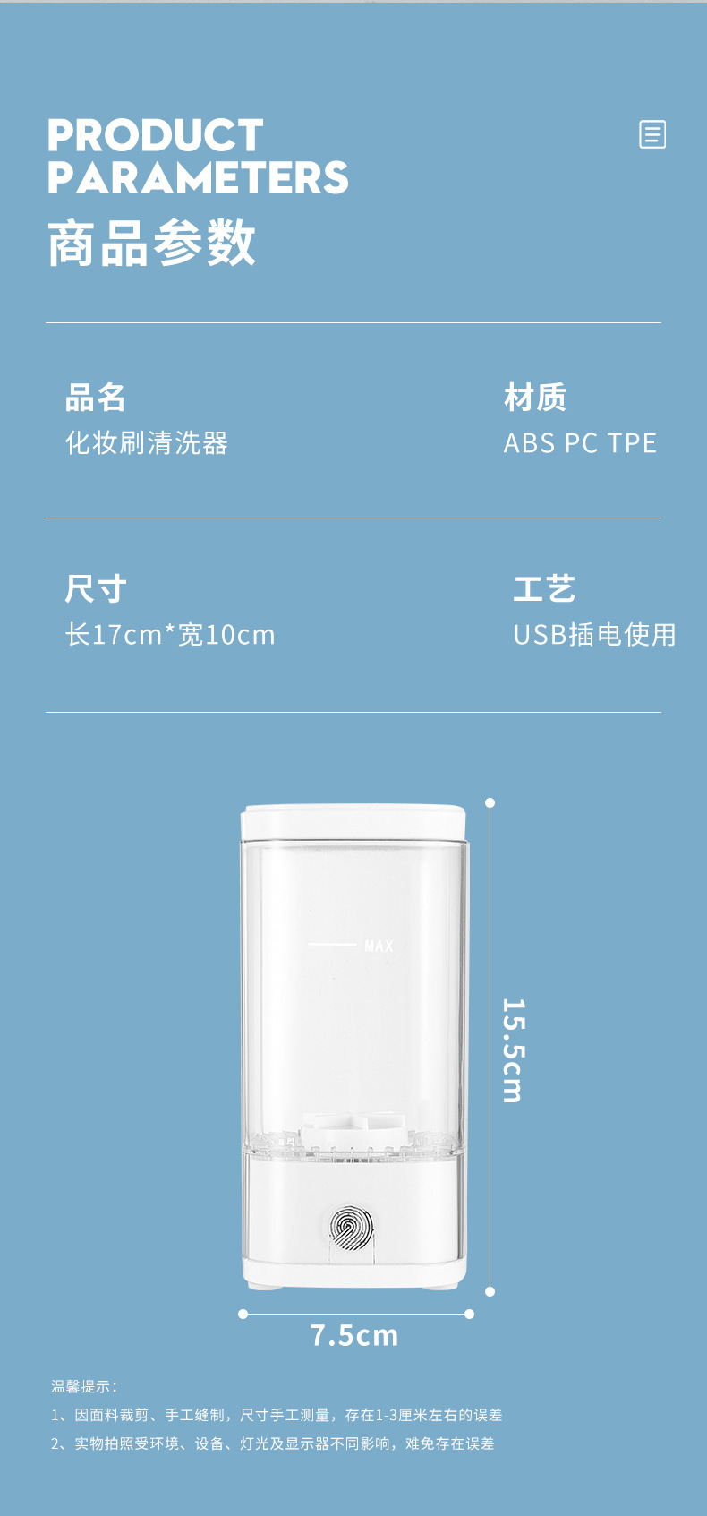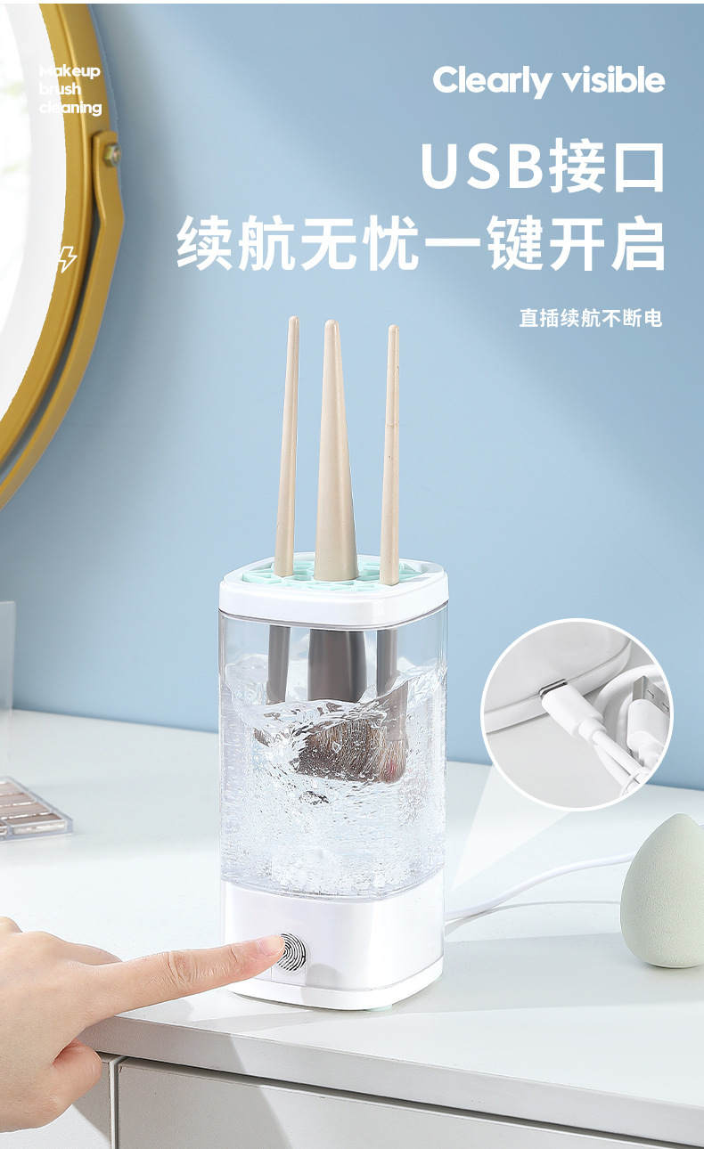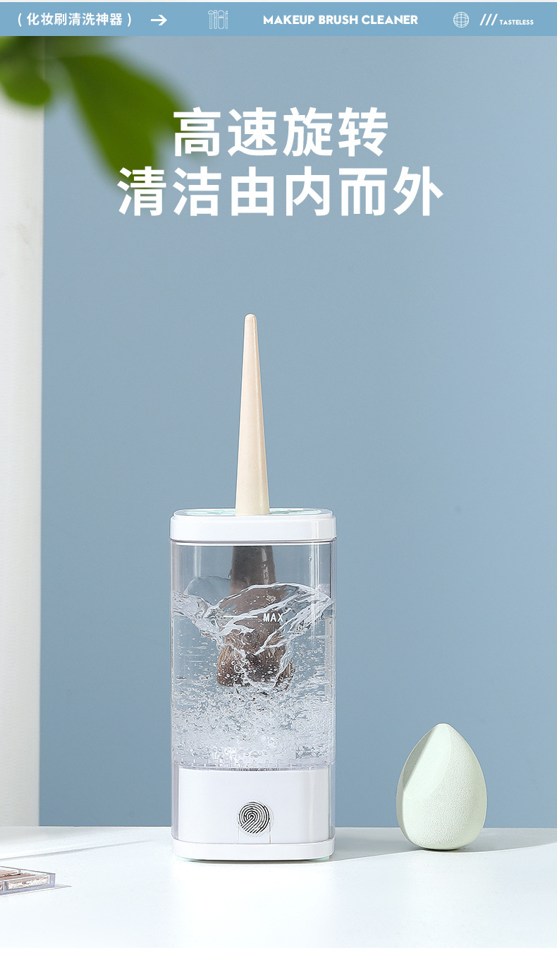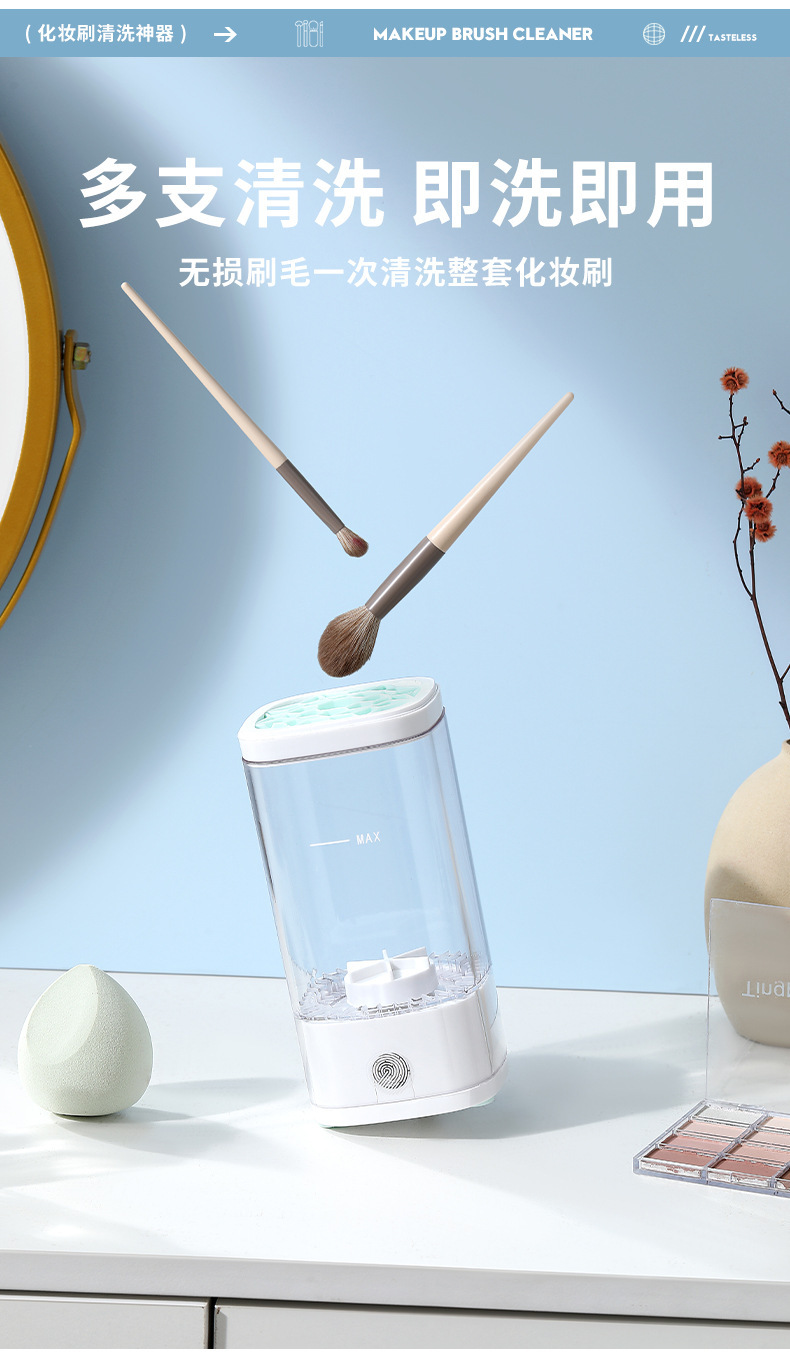 跨境新款电动化妆工具清洁器 USB紫外线消毒美妆刷子速干清洗机