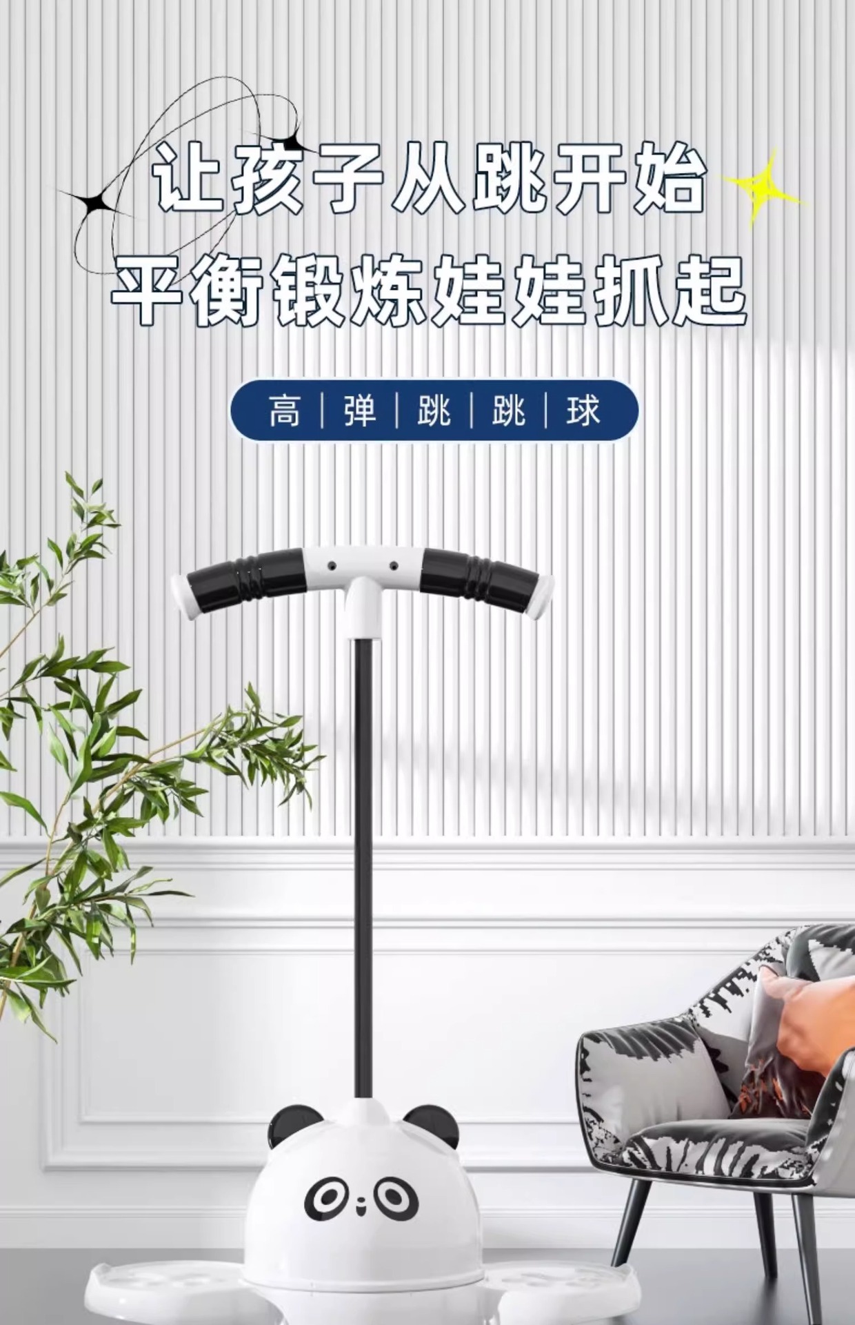 熊猫跳跳球弹跳球弹力球女孩平衡蹦蹦球玩具亲子互动球跳跳马发光