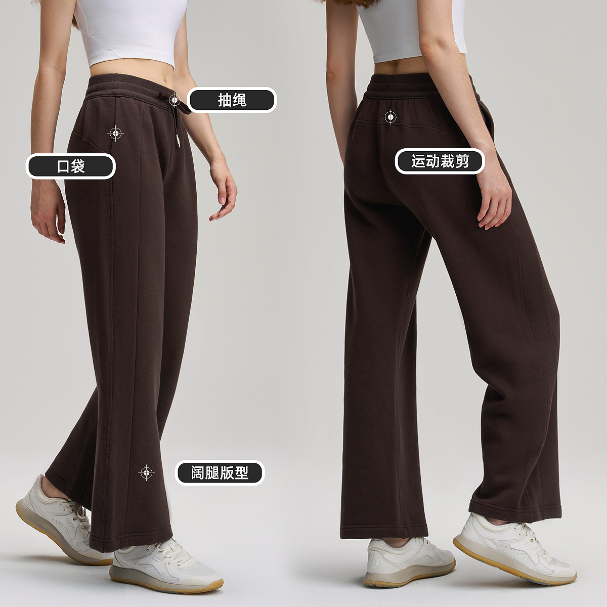 秋冬加绒阔腿长裤直筒瑜伽裤抽绳垂感中腰运动裤宽松休闲卫裤29