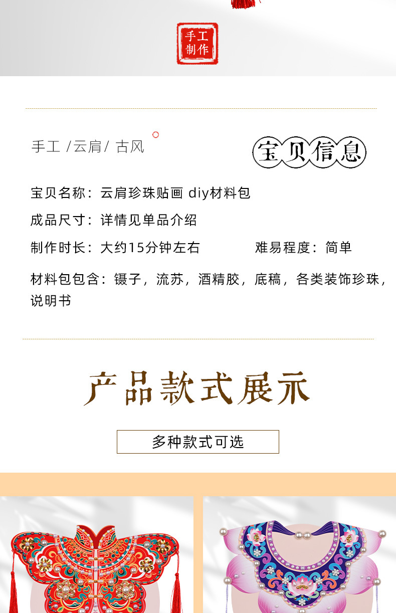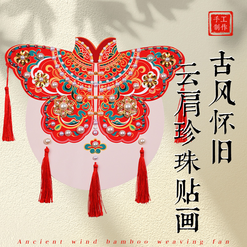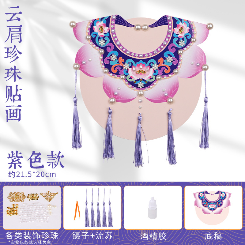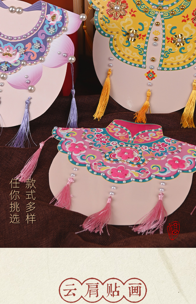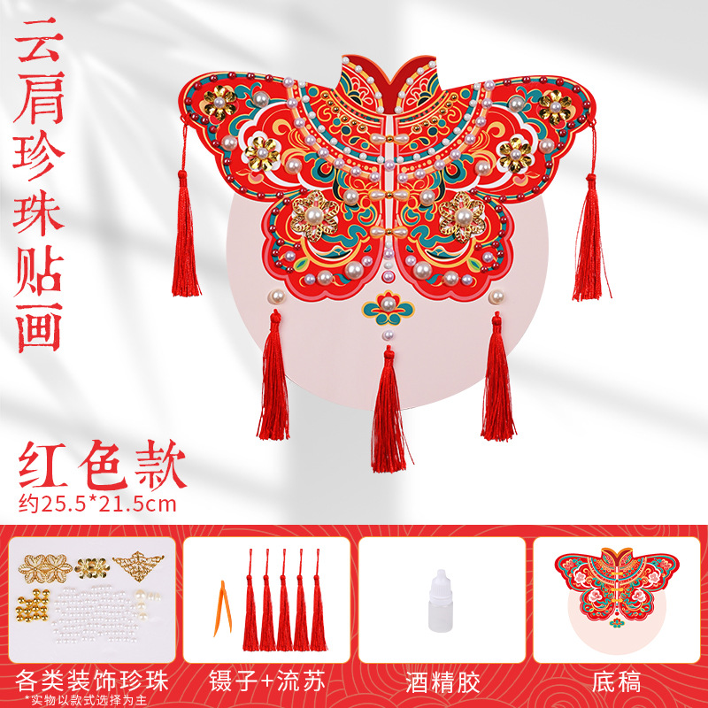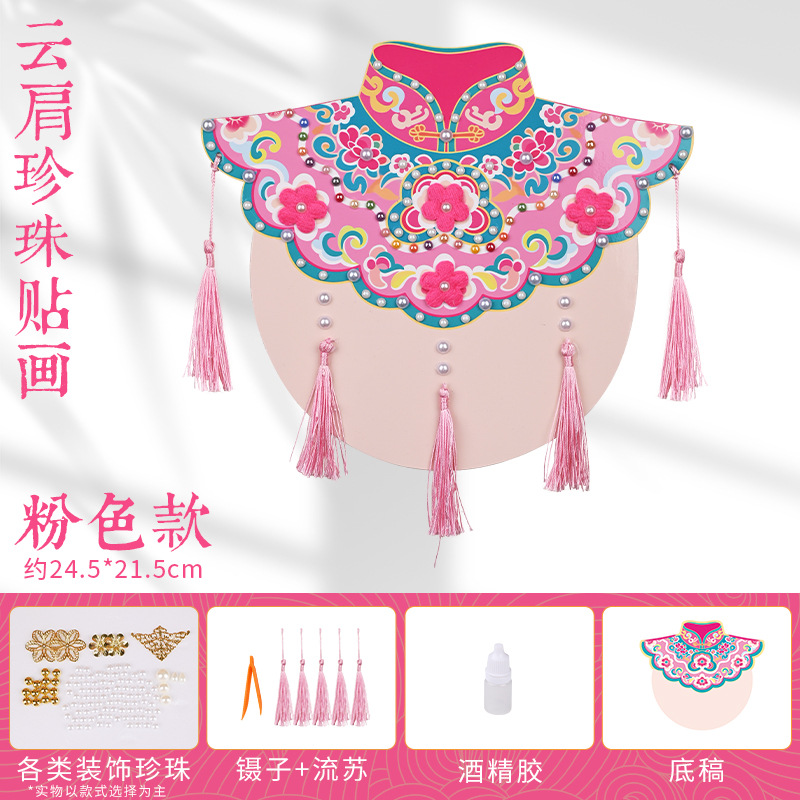 手工diy云肩珍珠粘贴画材料包传统创意装饰幼儿童新年亲子活动