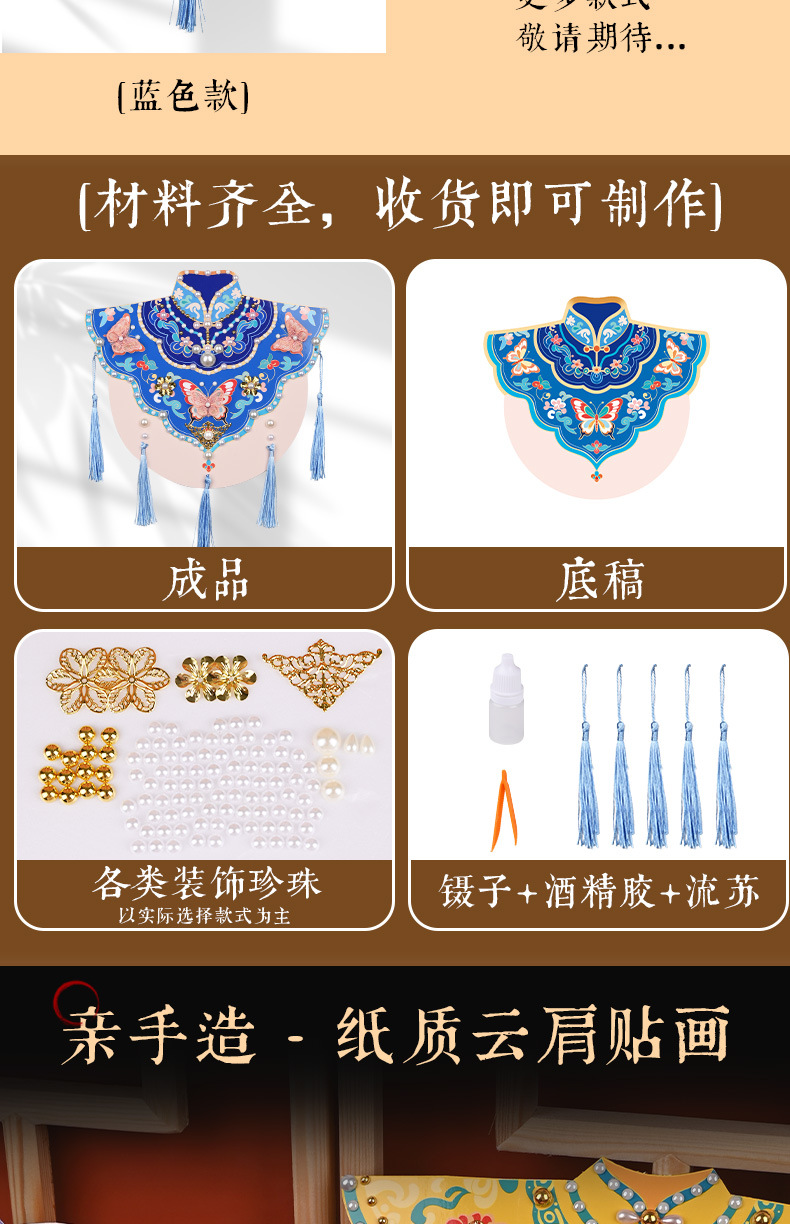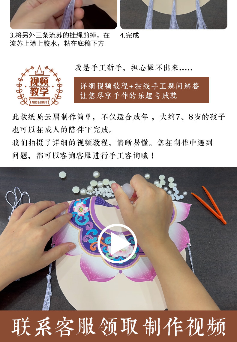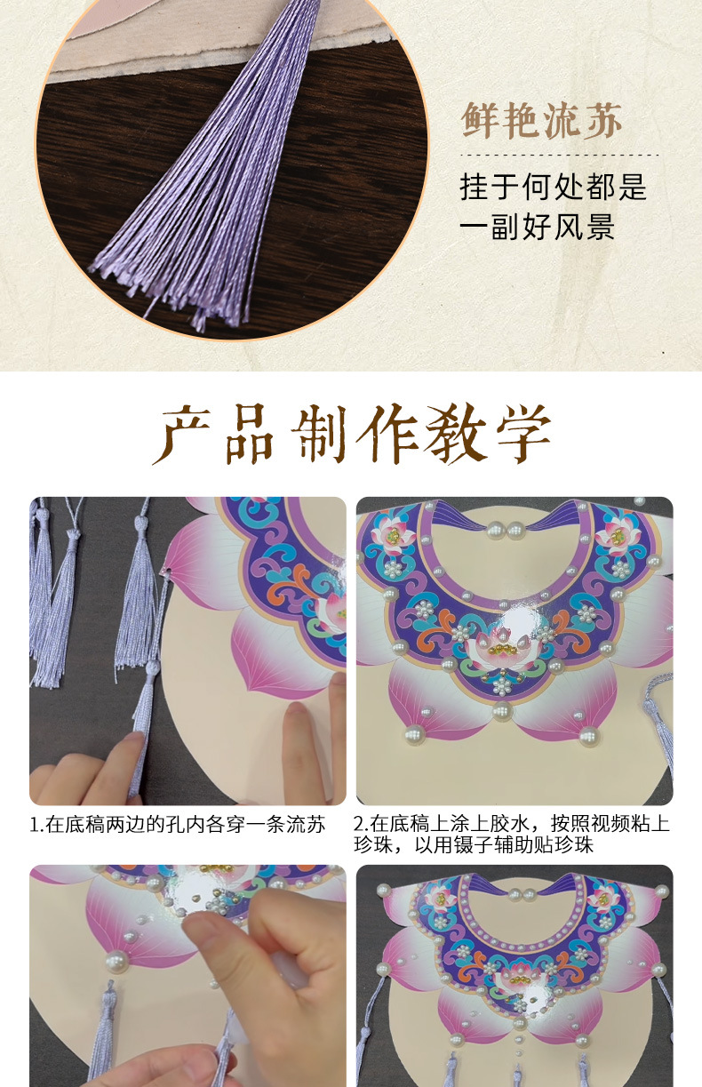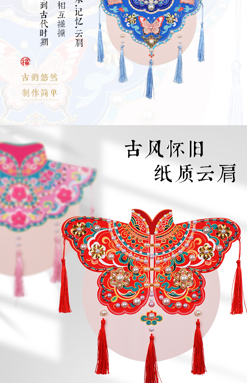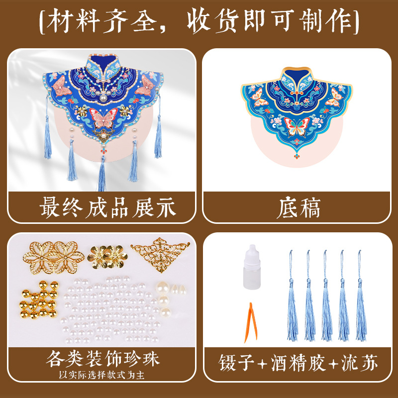 手工diy云肩珍珠粘贴画材料包传统创意装饰幼儿童新年亲子活动