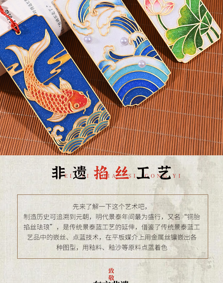 新年手工免掐丝珐琅书签自制景泰蓝挂件廉洁文化元旦diy团建材料