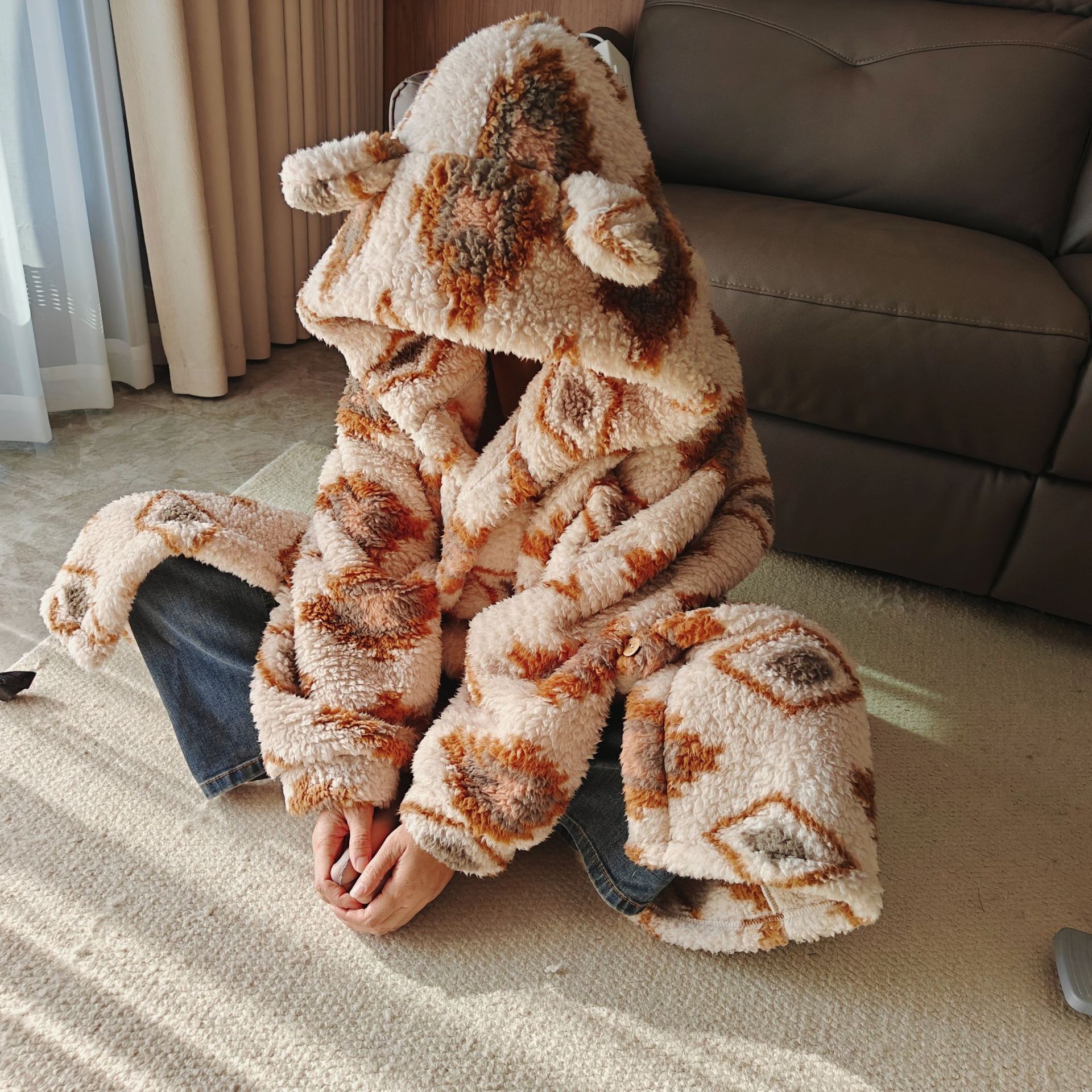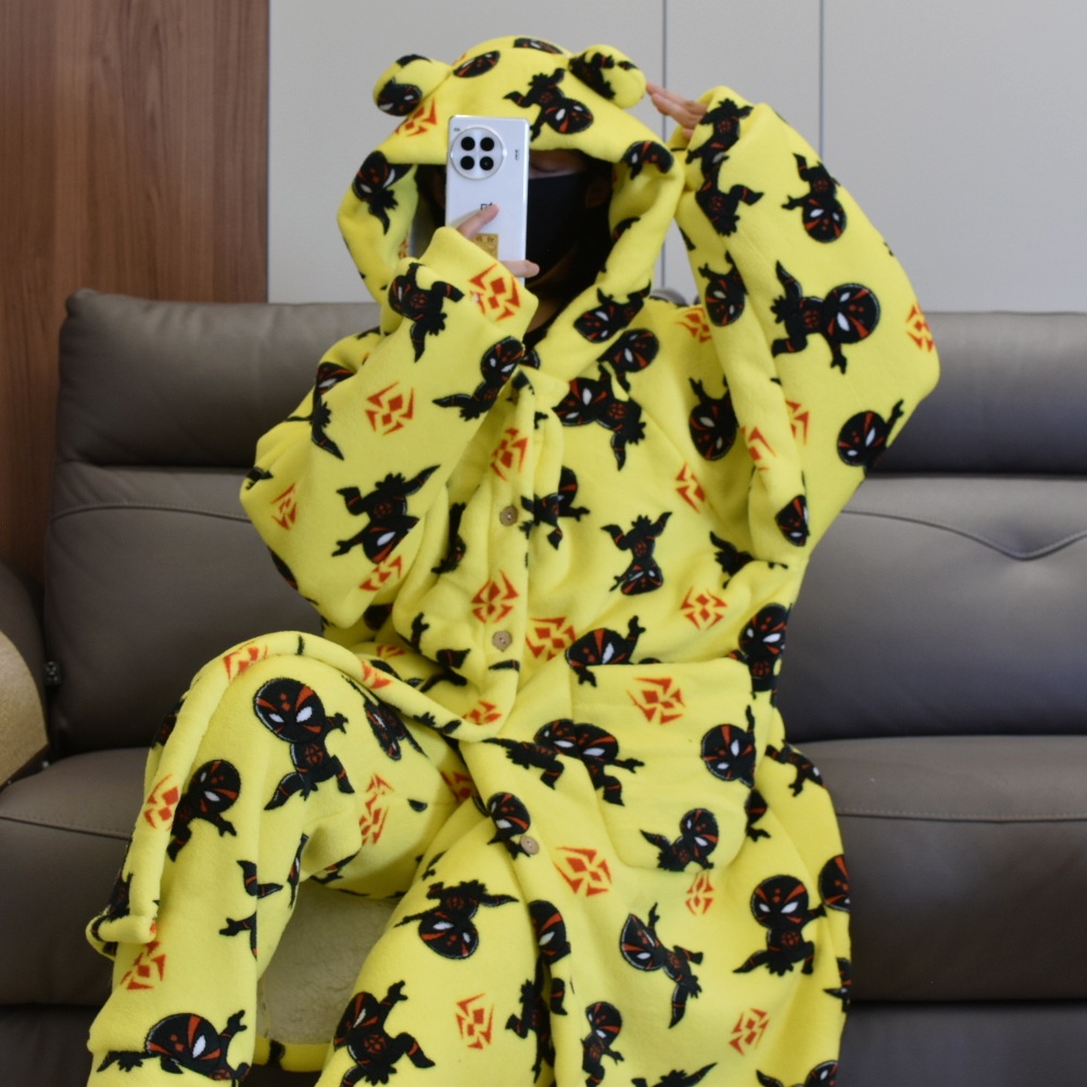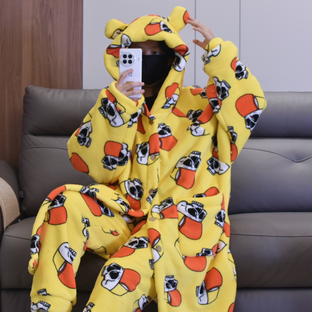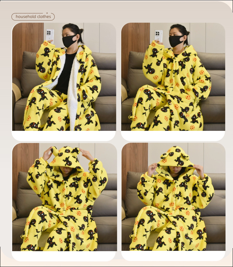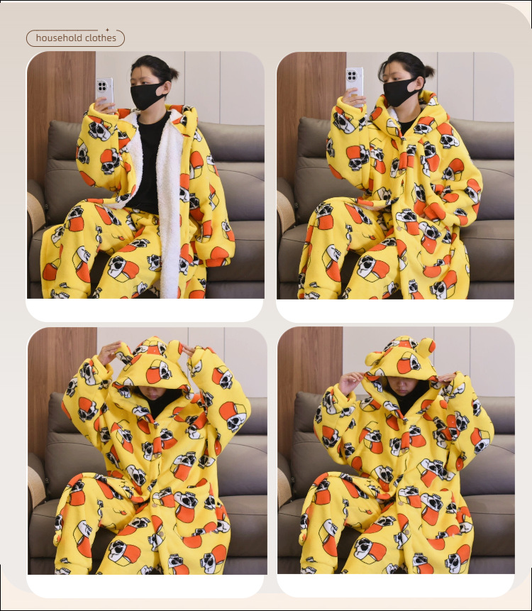 超厚睡衣羊羔绒冬季连帽纽扣青少年休闲居家保暖加厚家居服可外穿