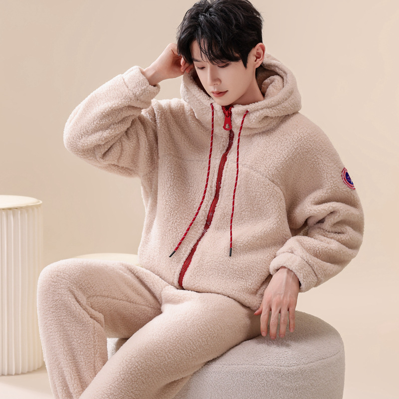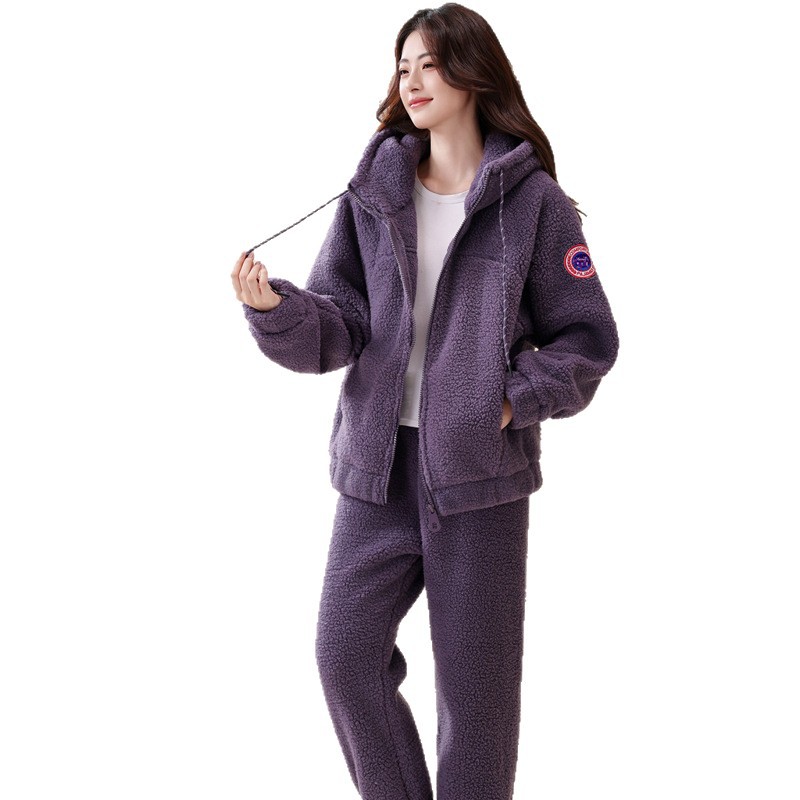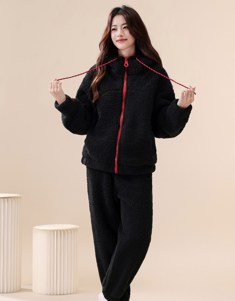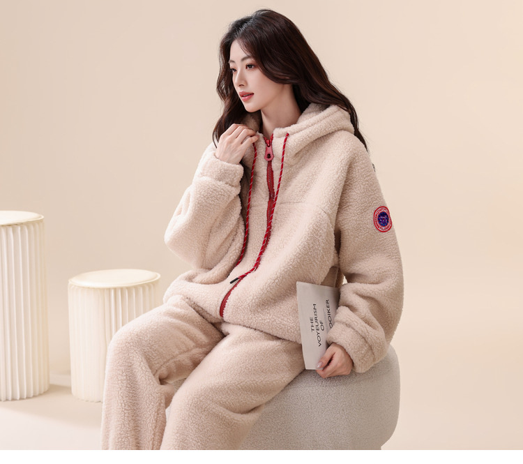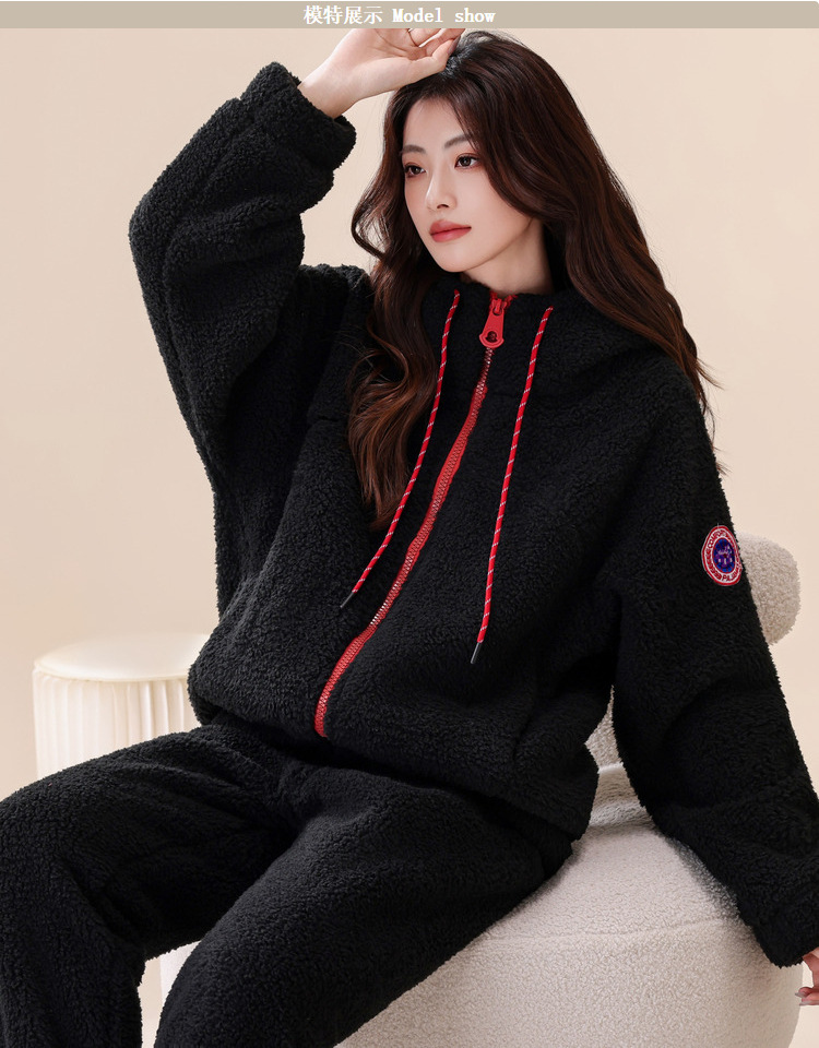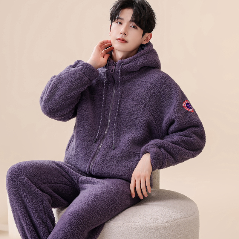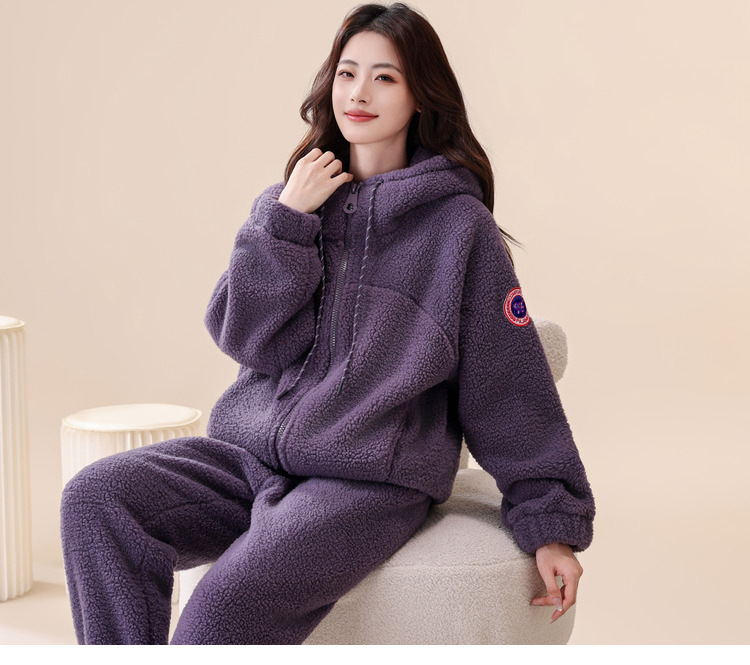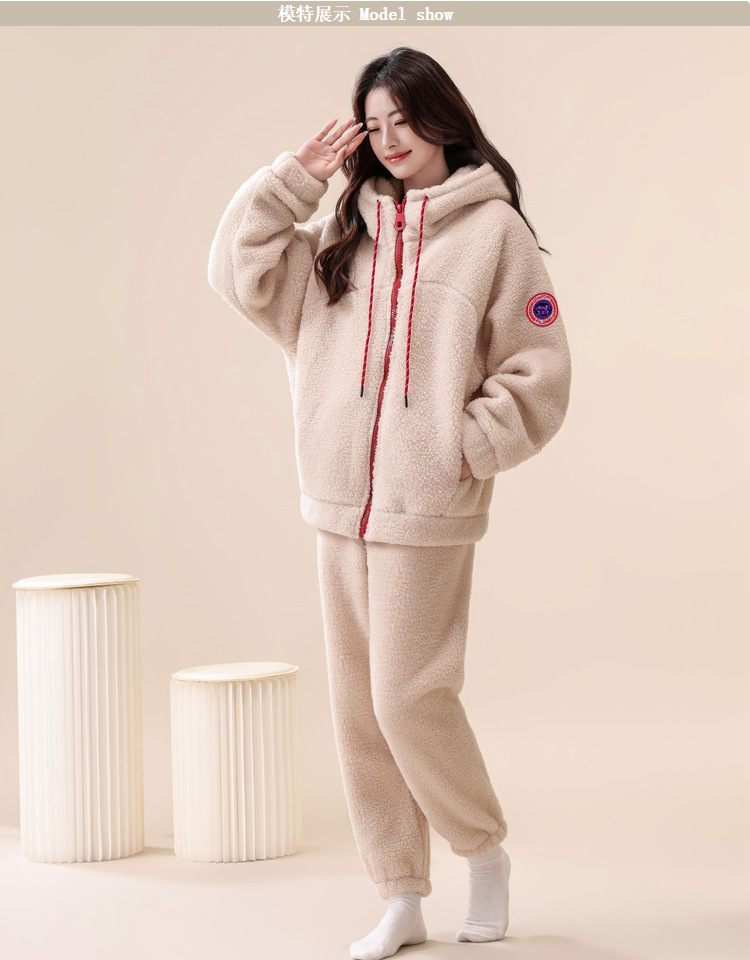 可外穿抗寒保暖睡衣女冬双层复合绒加厚连帽加大码珊瑚绒家居服男
