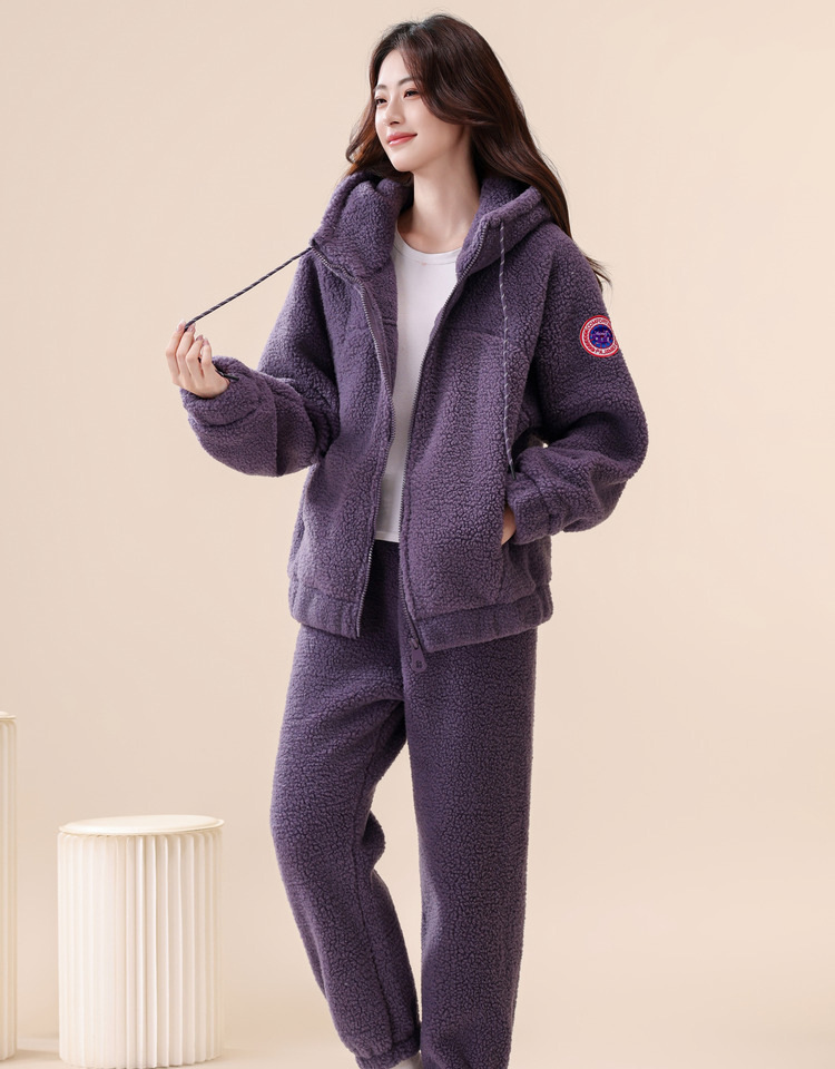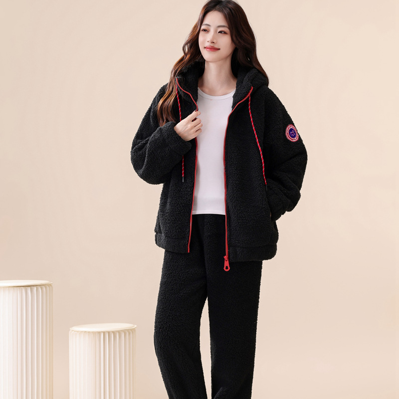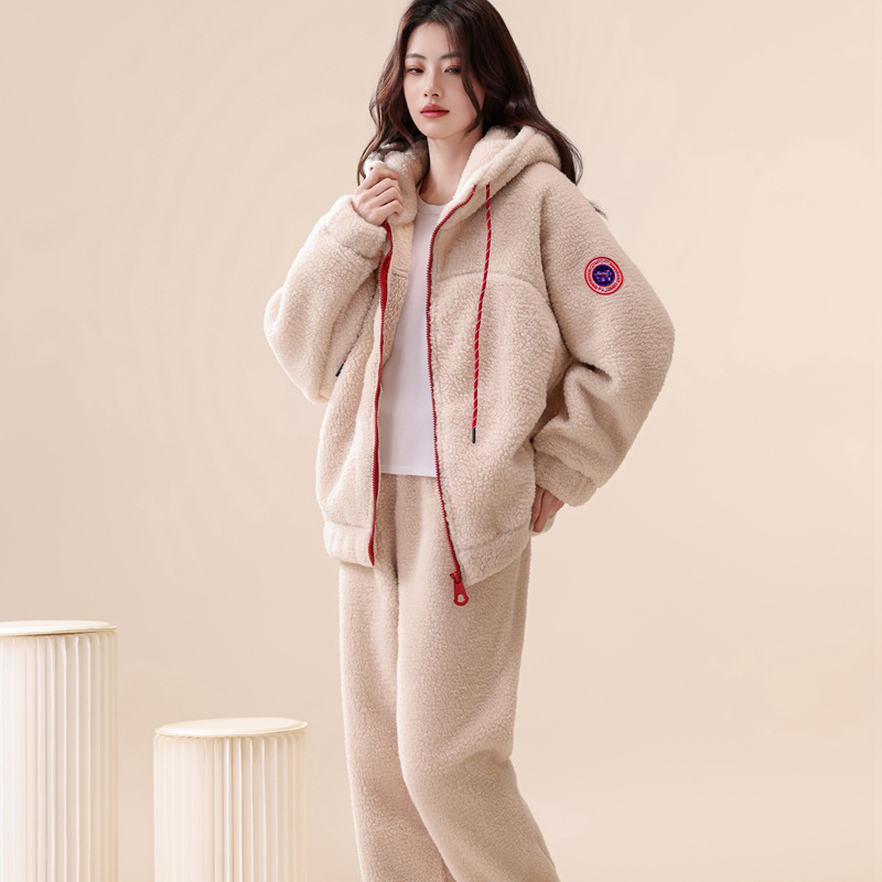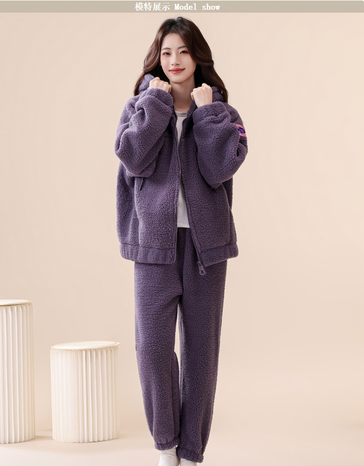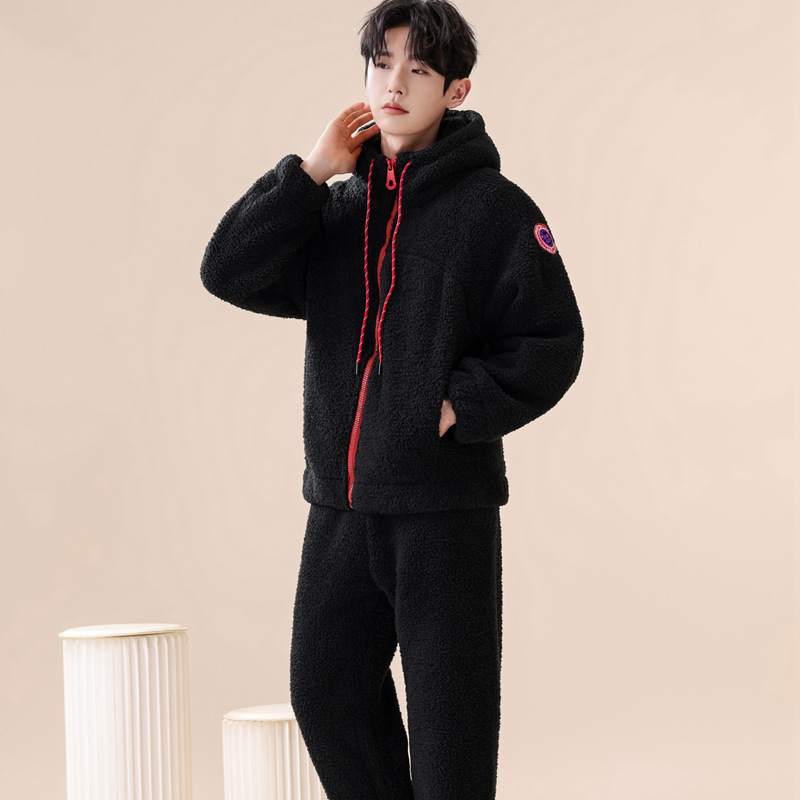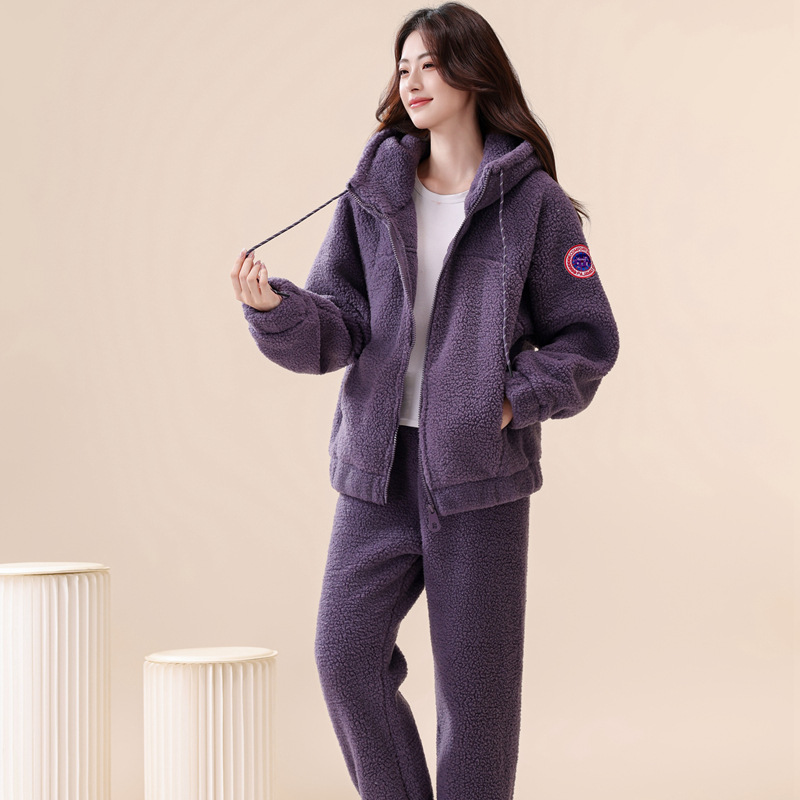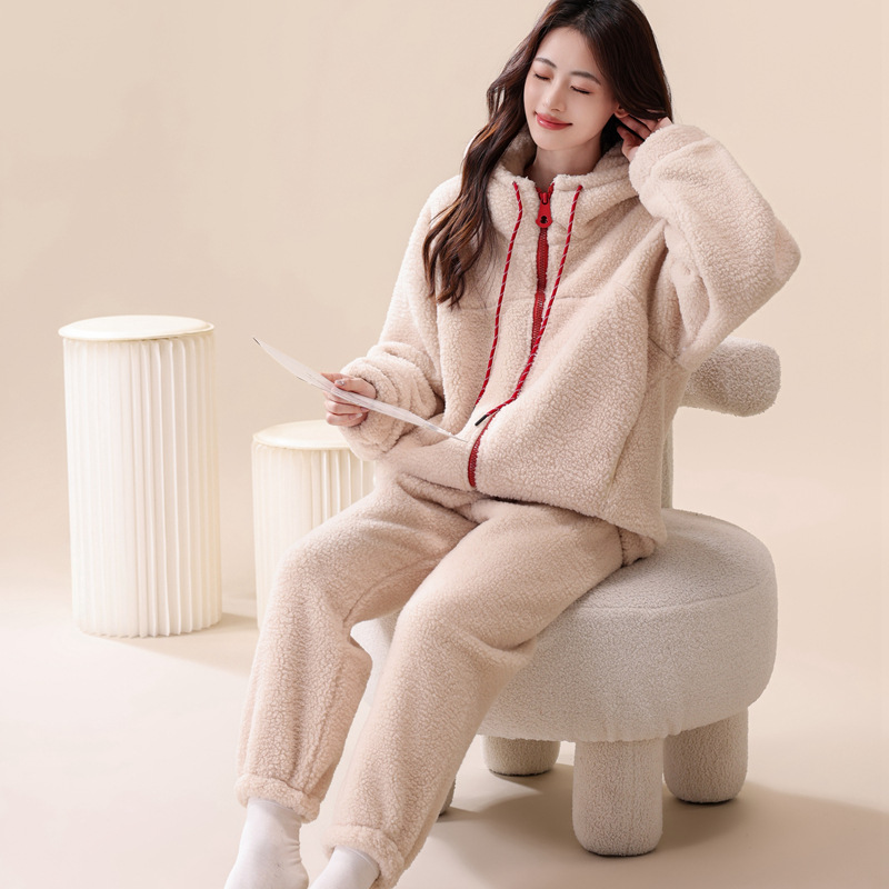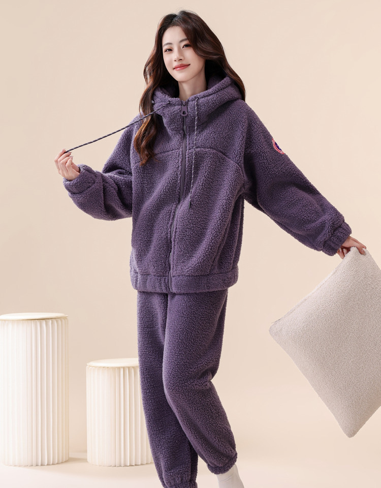 可外穿抗寒保暖睡衣女冬双层复合绒加厚连帽加大码珊瑚绒家居服男