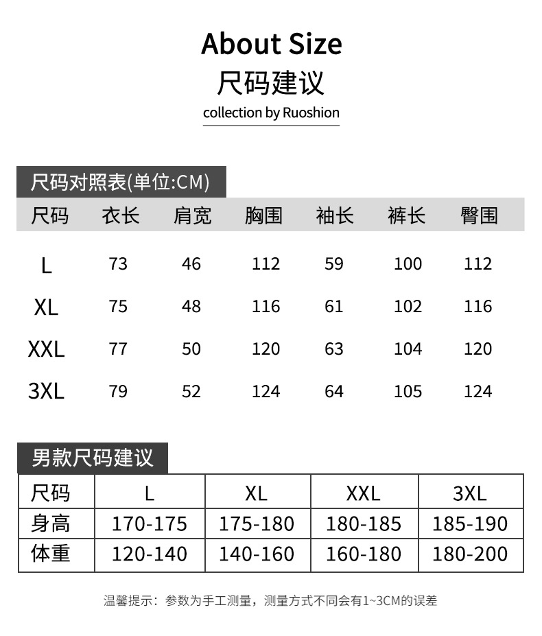 | 3XL建议180-200斤 | USD $0.0 | 994 set available |