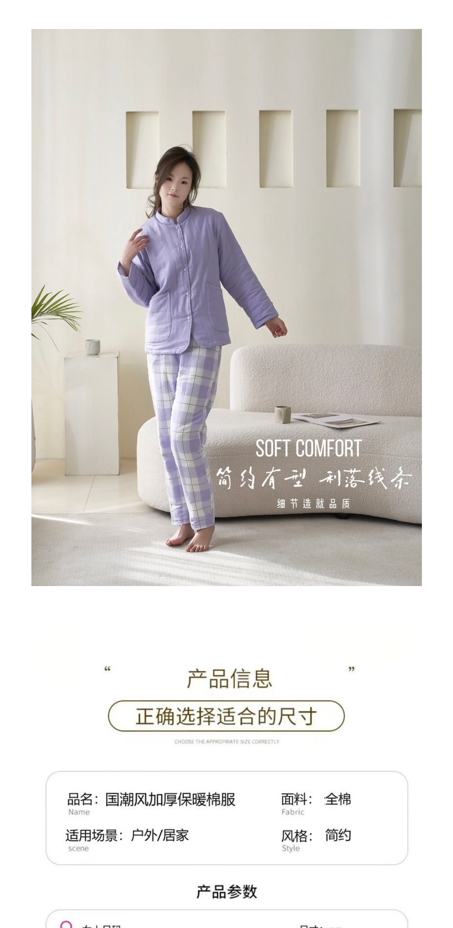 100%A类全棉母婴面料加厚棉衣冬季男女套装纯棉睡衣纱布保暖居家