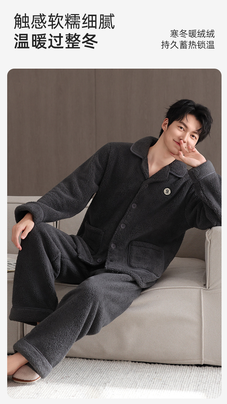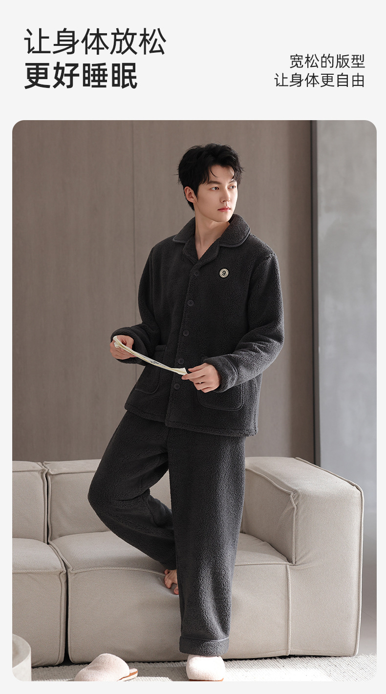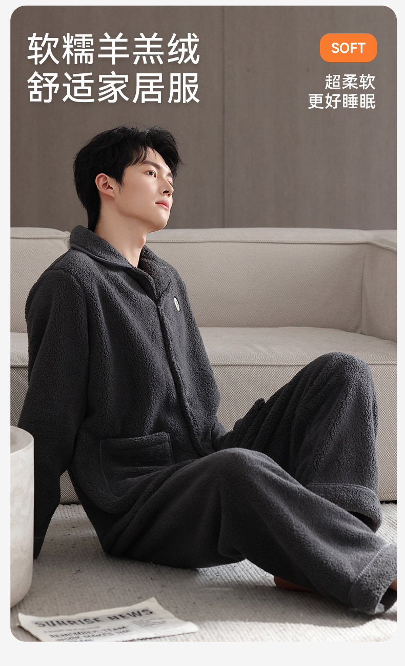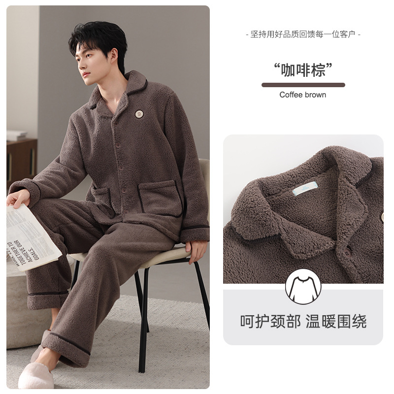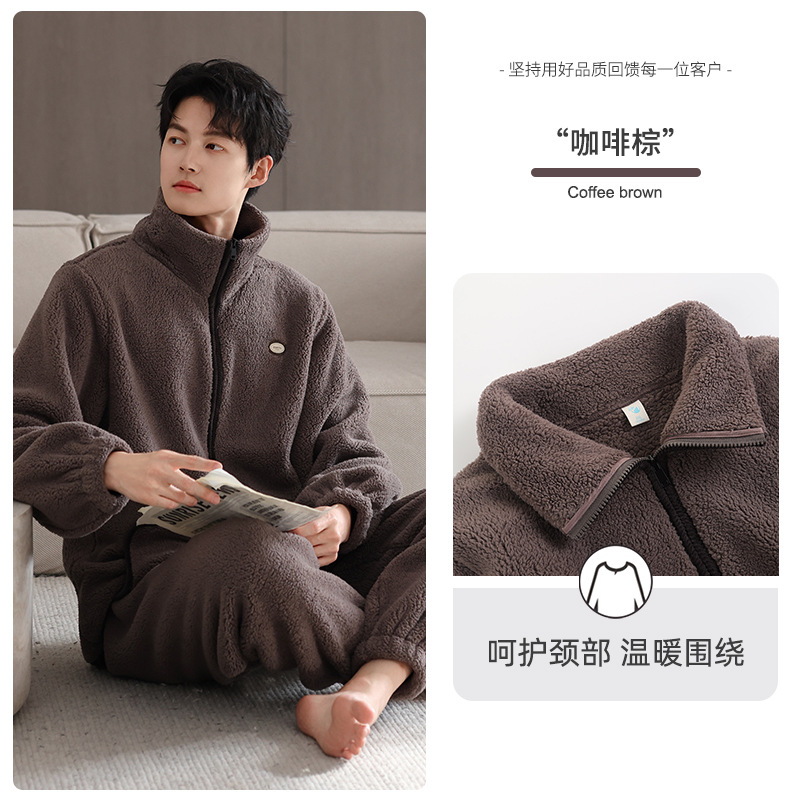 【抗静电】睡衣男冬季羊羔绒加厚保暖可外穿家居服冬款珊瑚绒套装