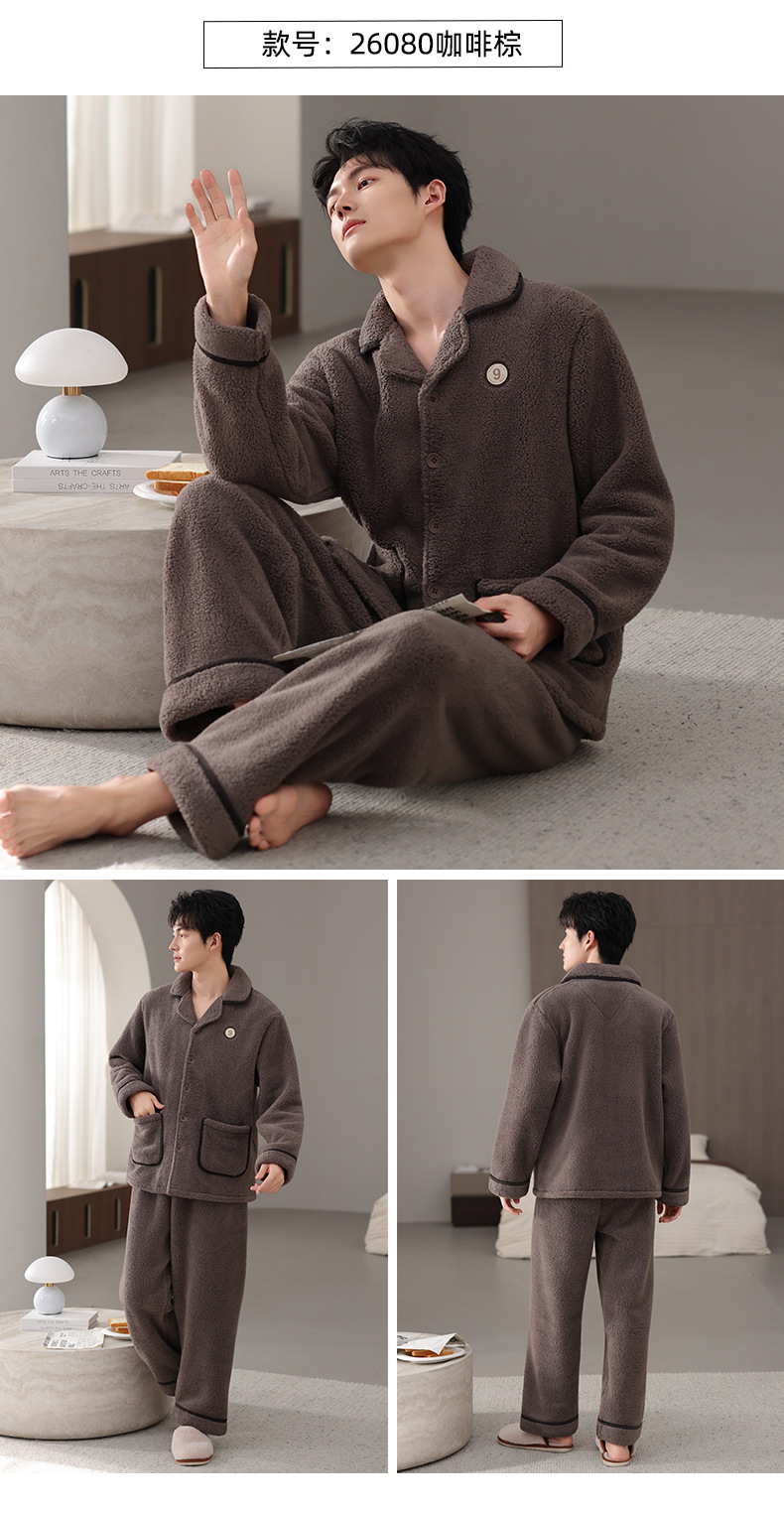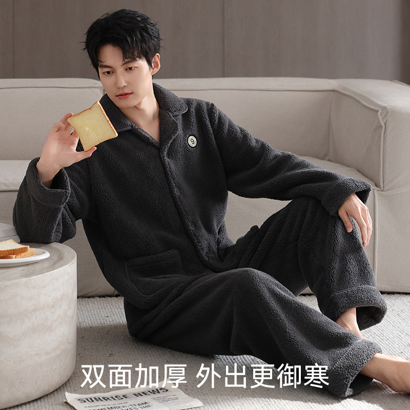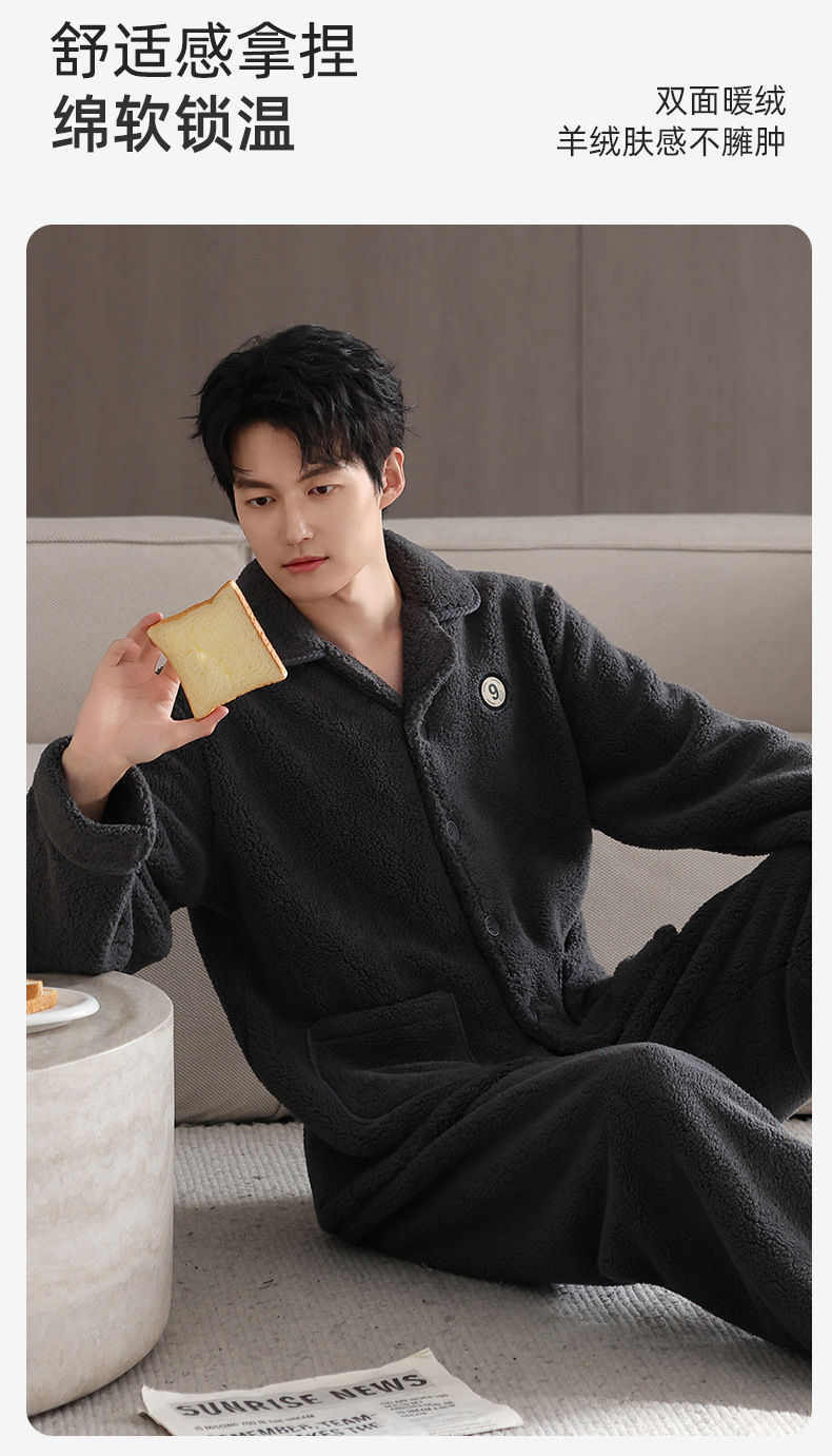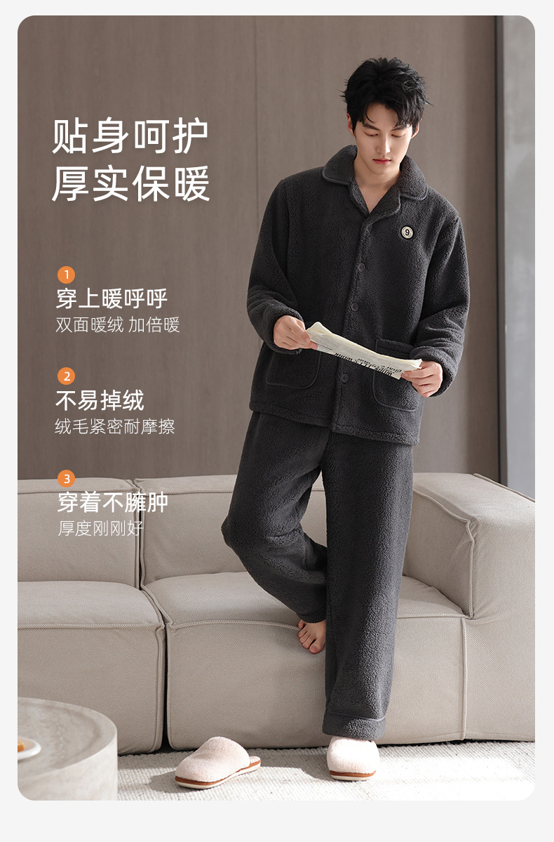 【抗静电】睡衣男冬季羊羔绒加厚保暖可外穿家居服冬款珊瑚绒套装