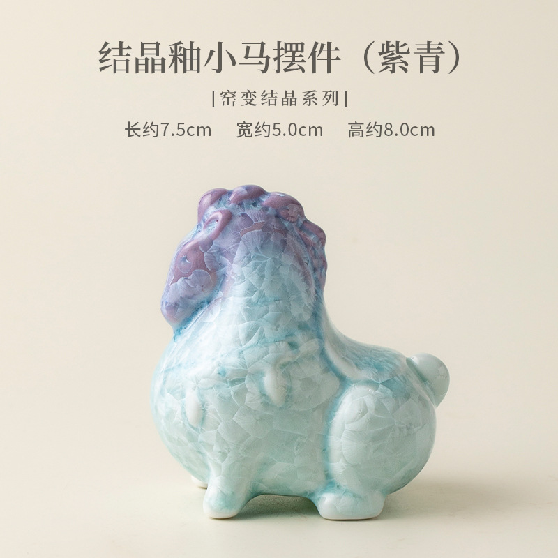 2026年新年马年礼物窑变结晶釉小马茶宠摆件家用陶瓷马年茶玩盖置