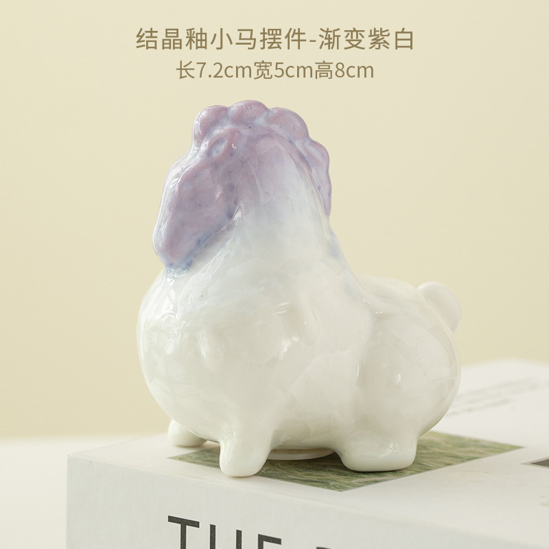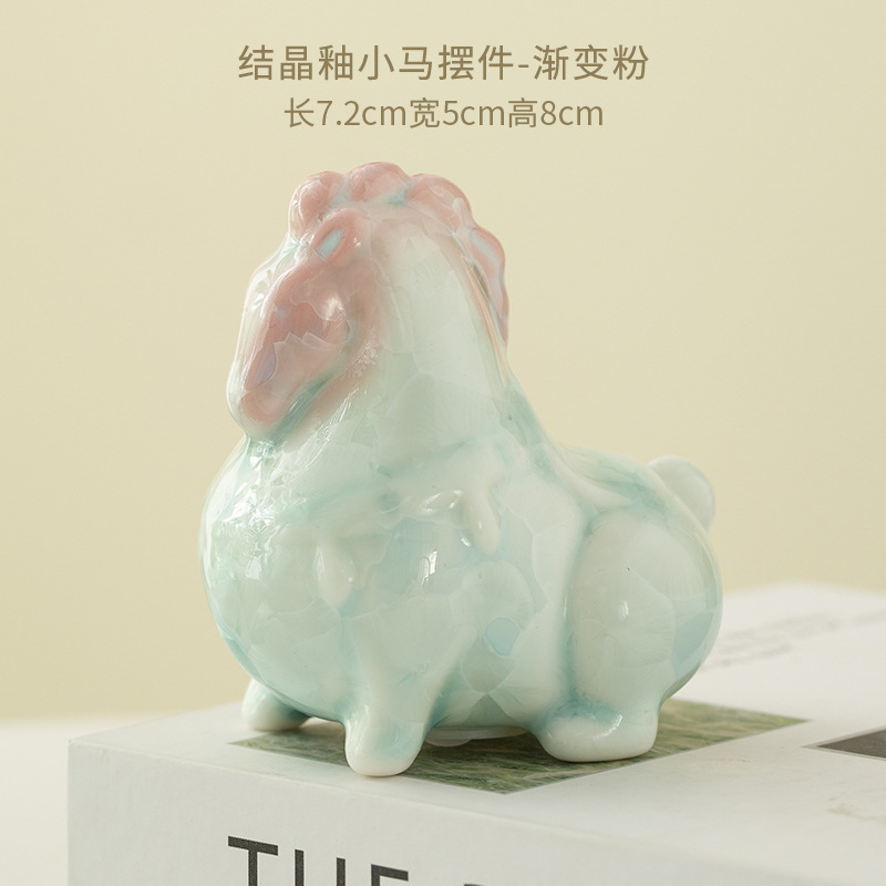 结晶釉萌马摆件马年茶宠渐变色高颜值办公桌装饰品公司年会伴手礼