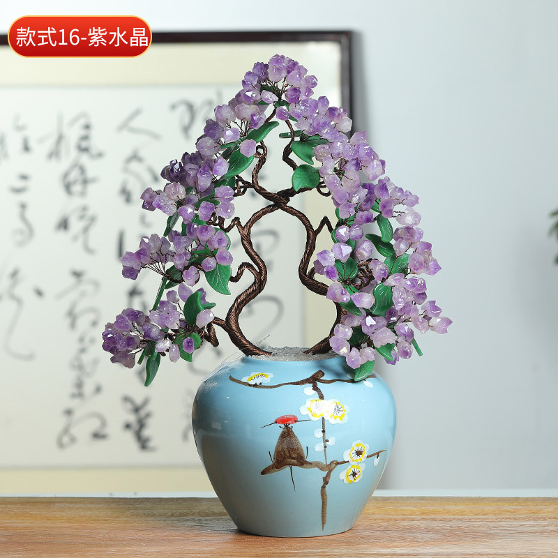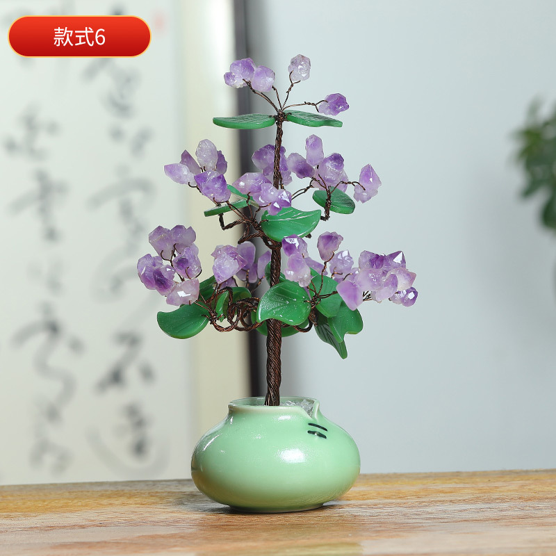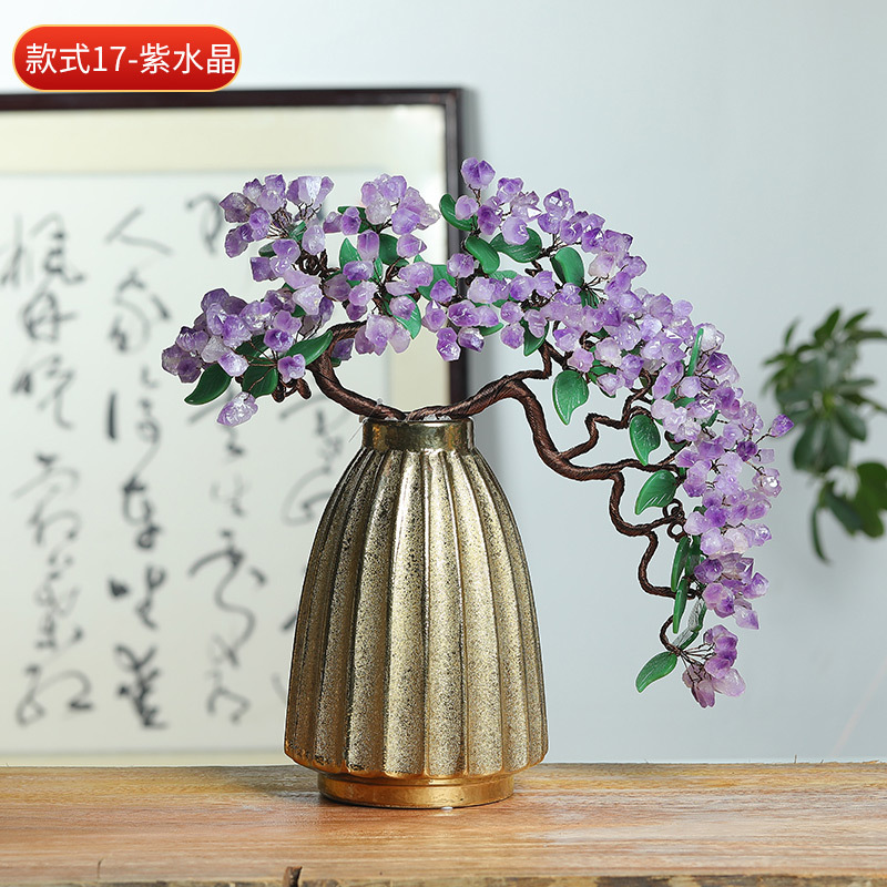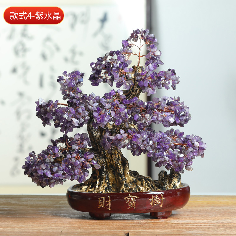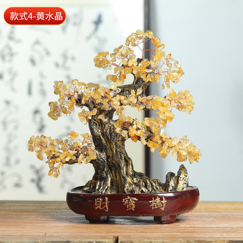 天然水晶树工艺品摆件水晶树摇钱树装饰摆件办公室桌开业送礼