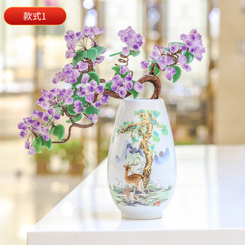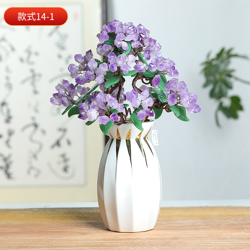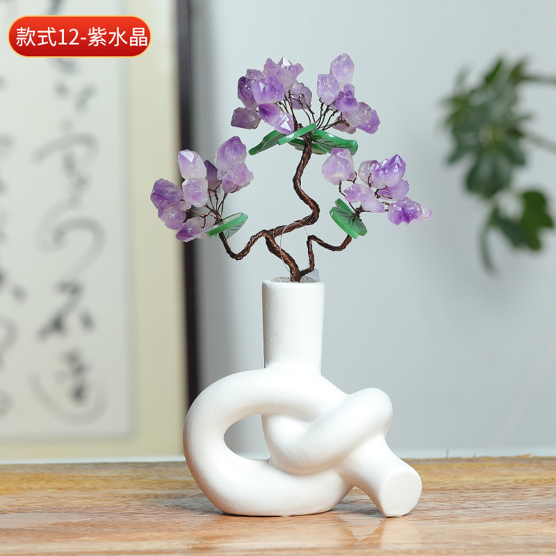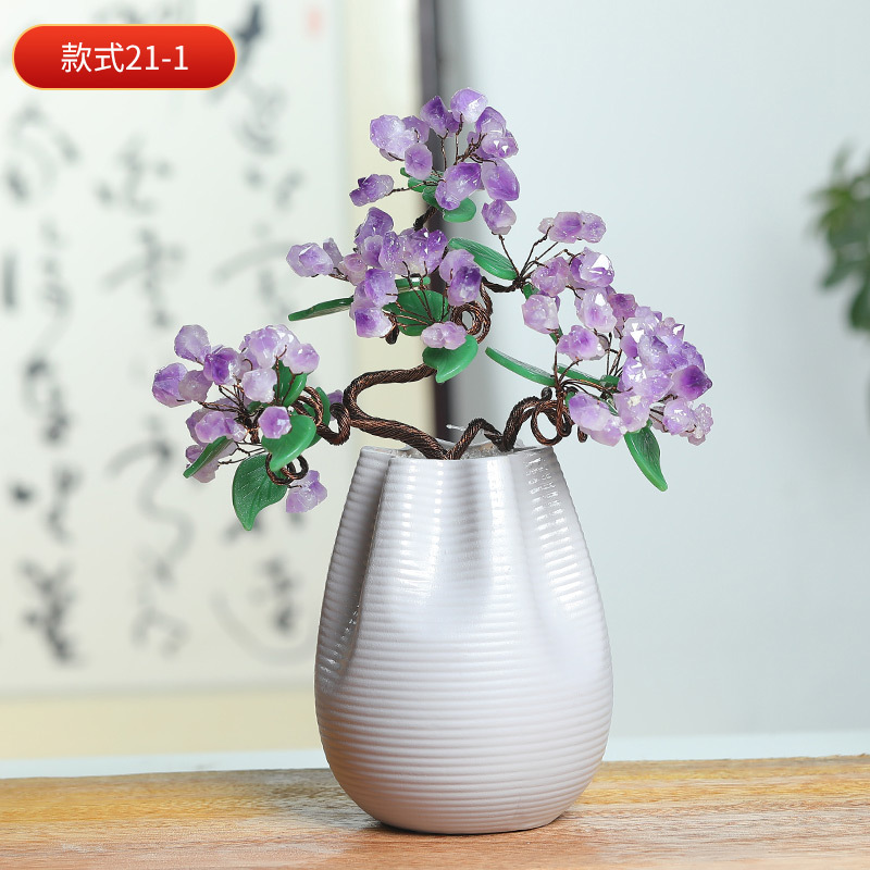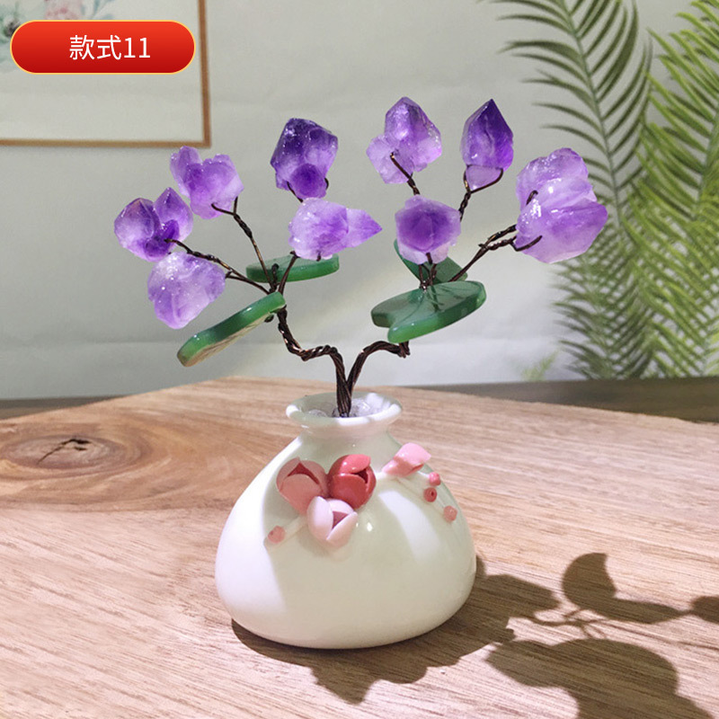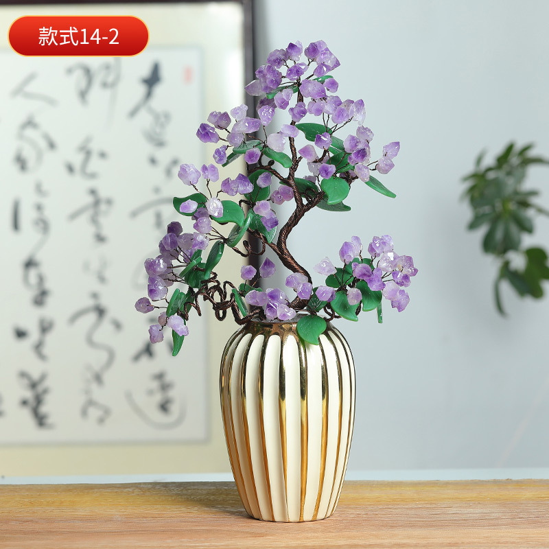 天然水晶树工艺品摆件水晶树摇钱树装饰摆件办公室桌开业送礼