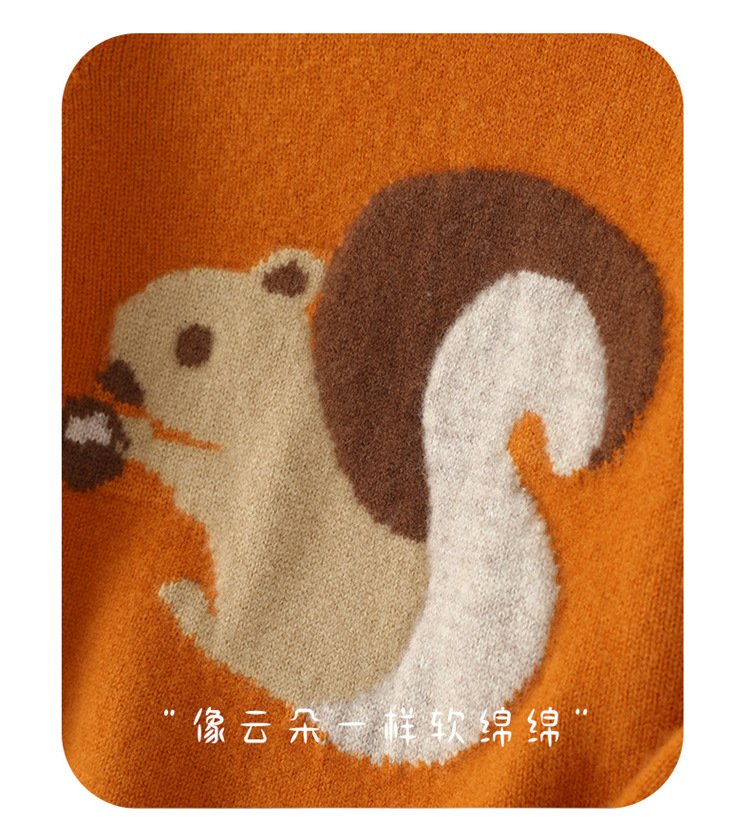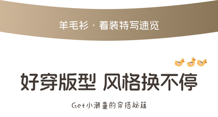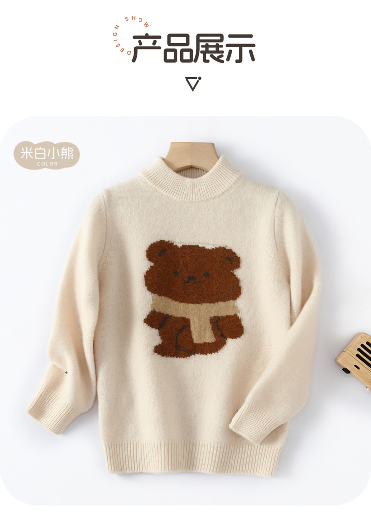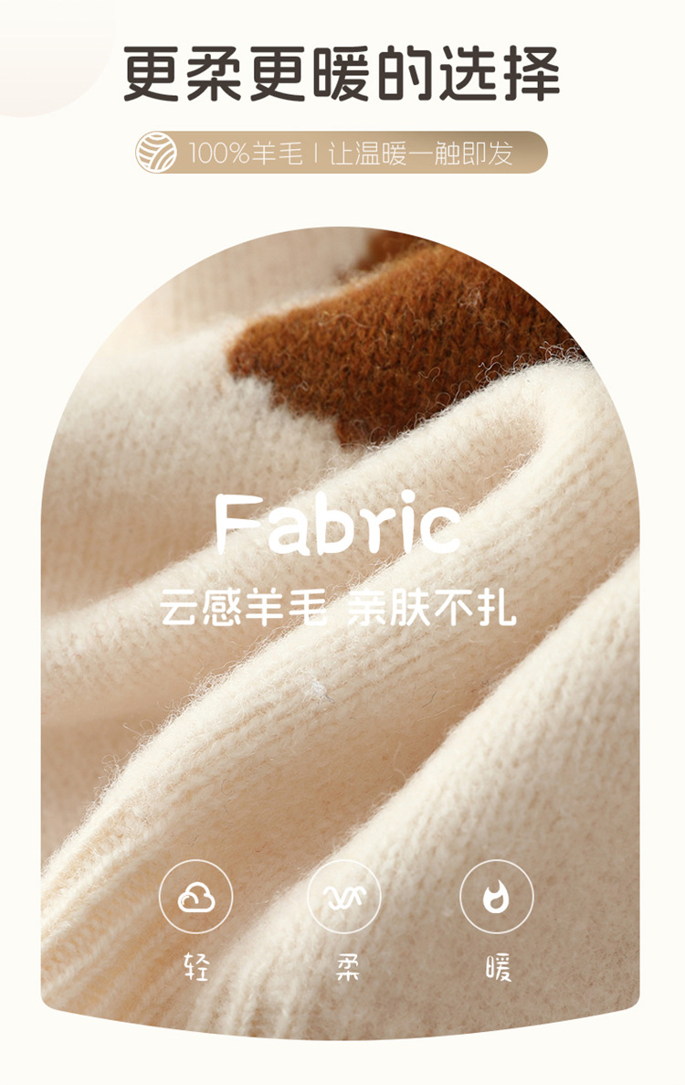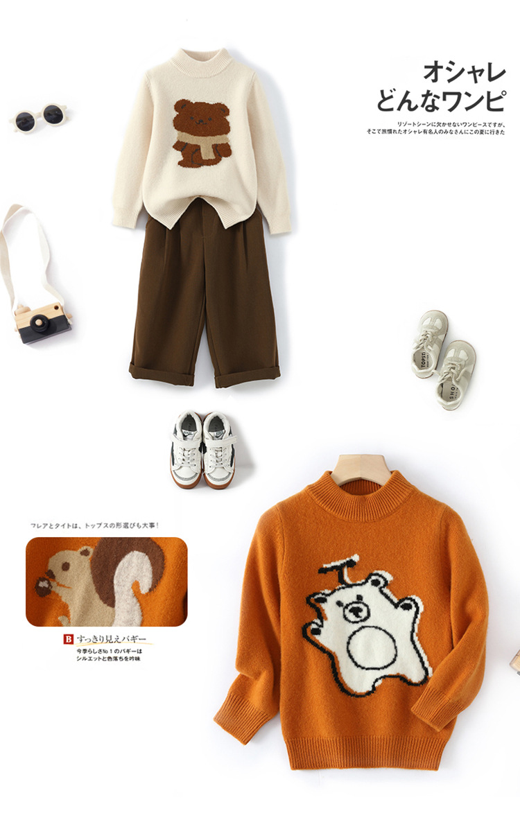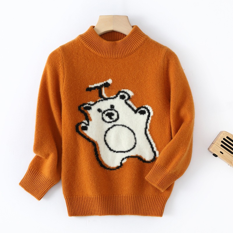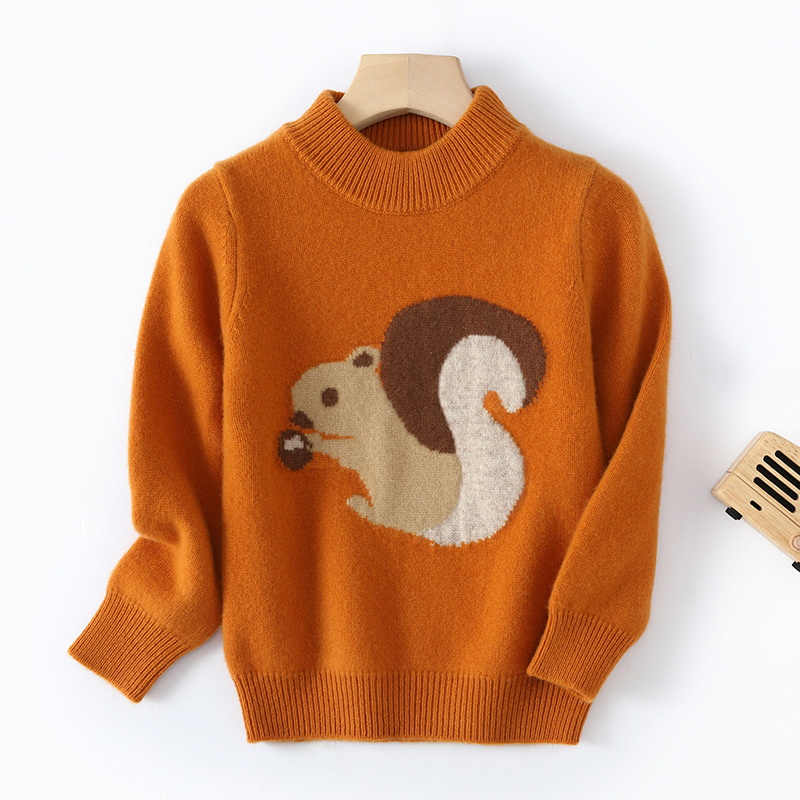 儿童100%纯羊毛衫秋冬中大童圆领毛衣男童女童棕色卡通宝宝针织衫